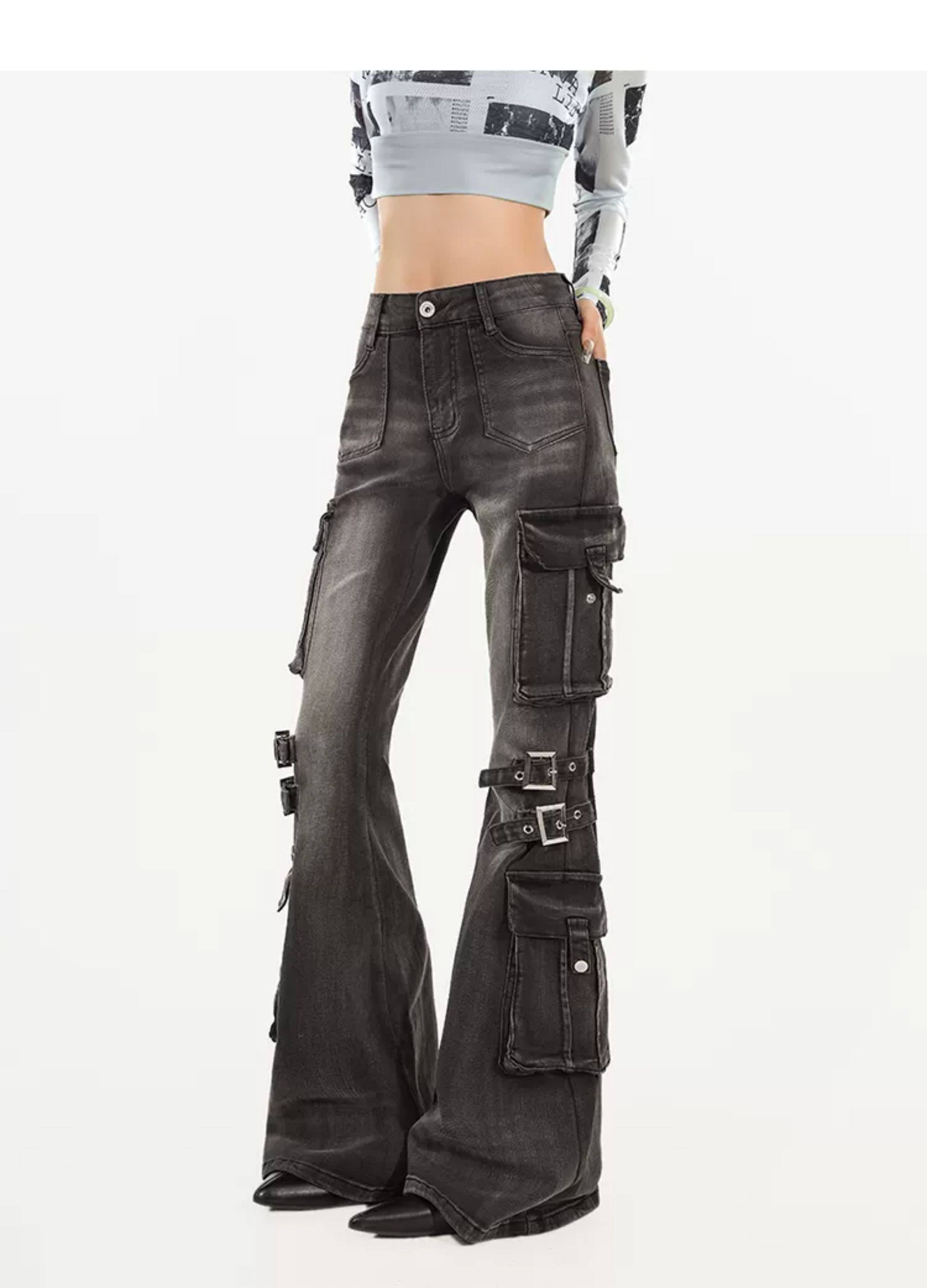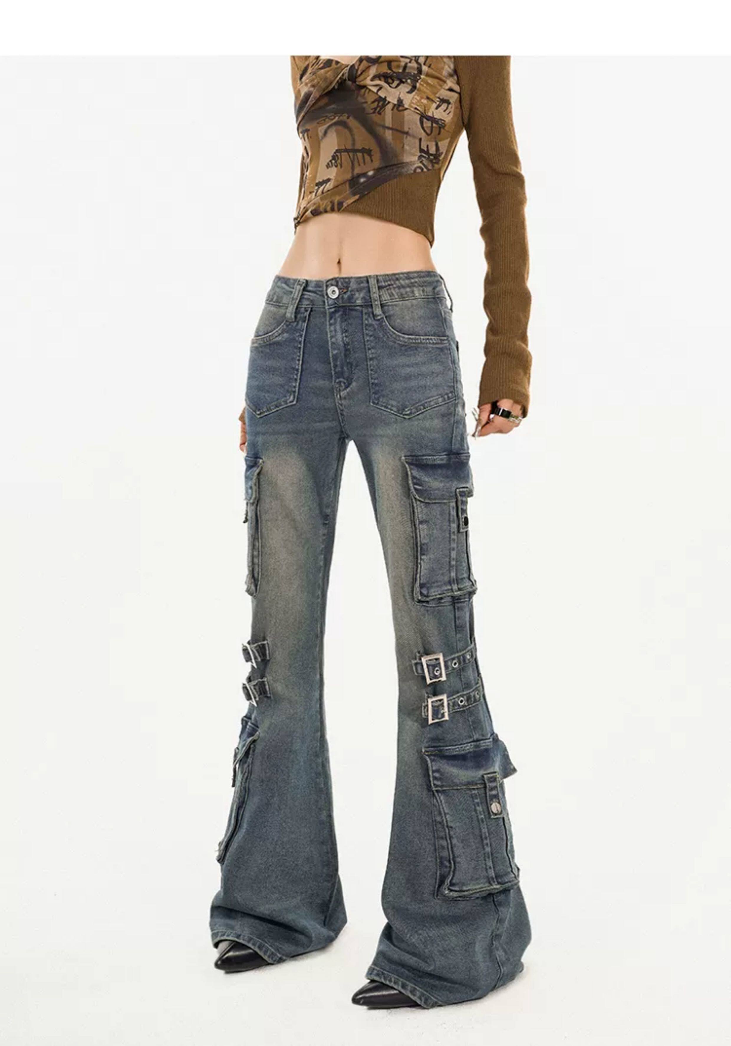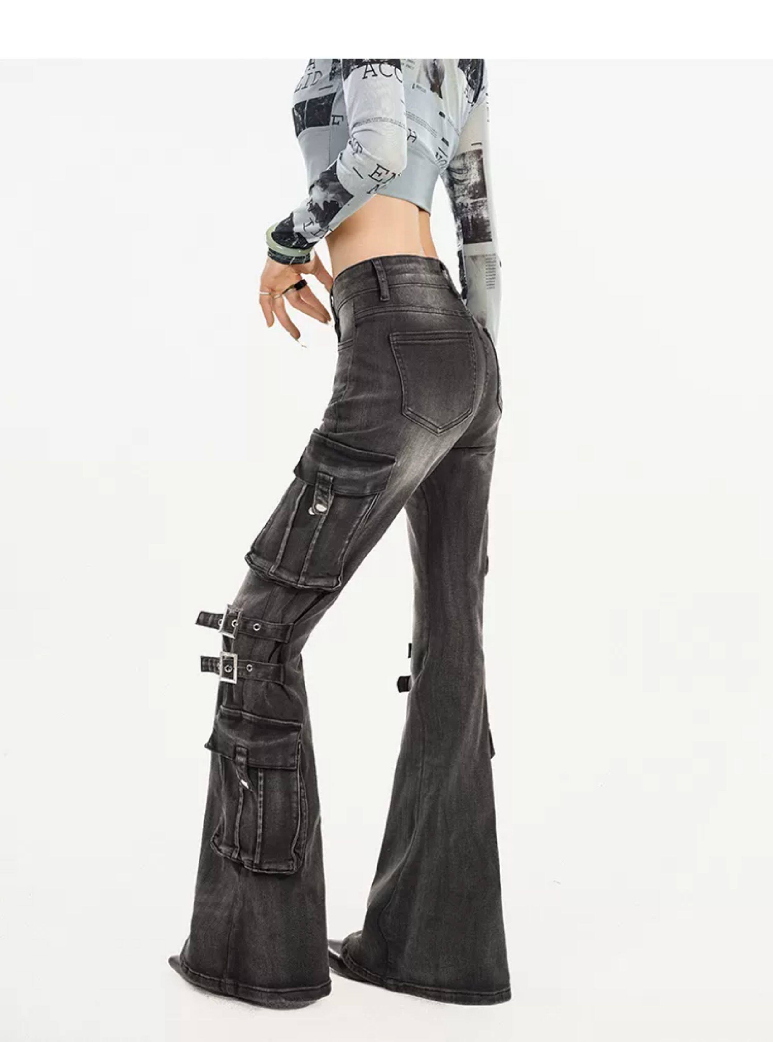 Utility Heavy Craft Slimming Flare Cargo Denim Jeans NA8632