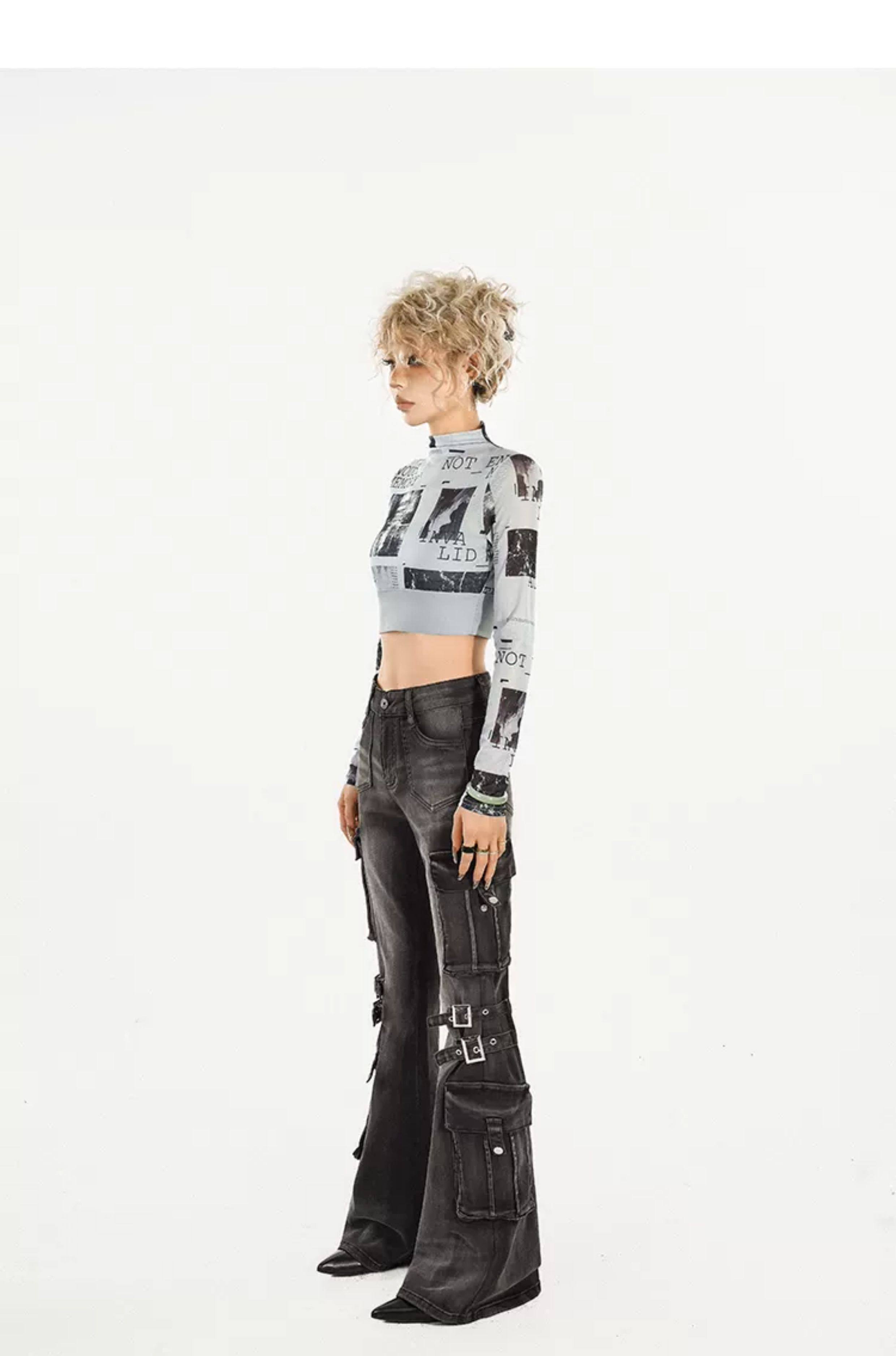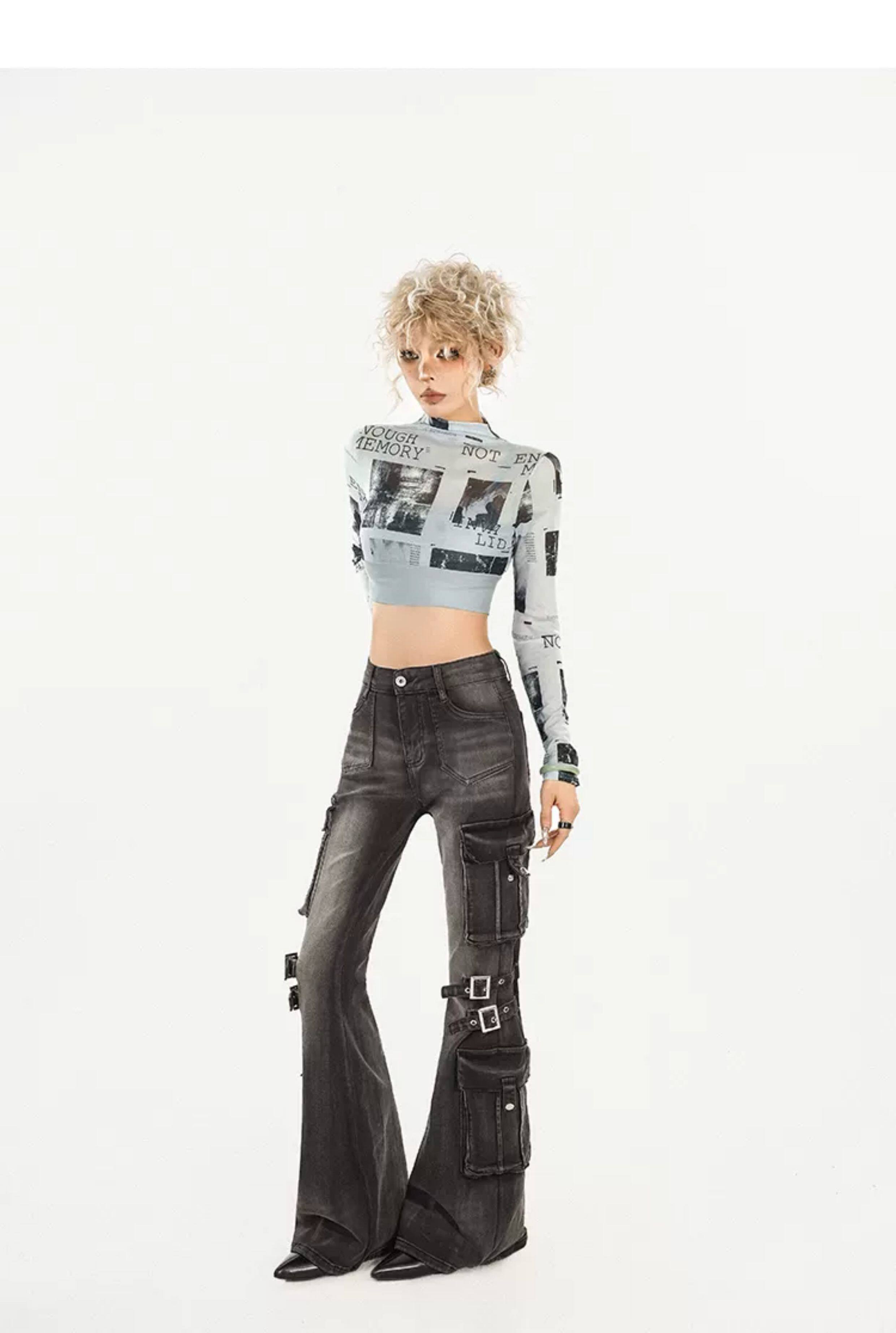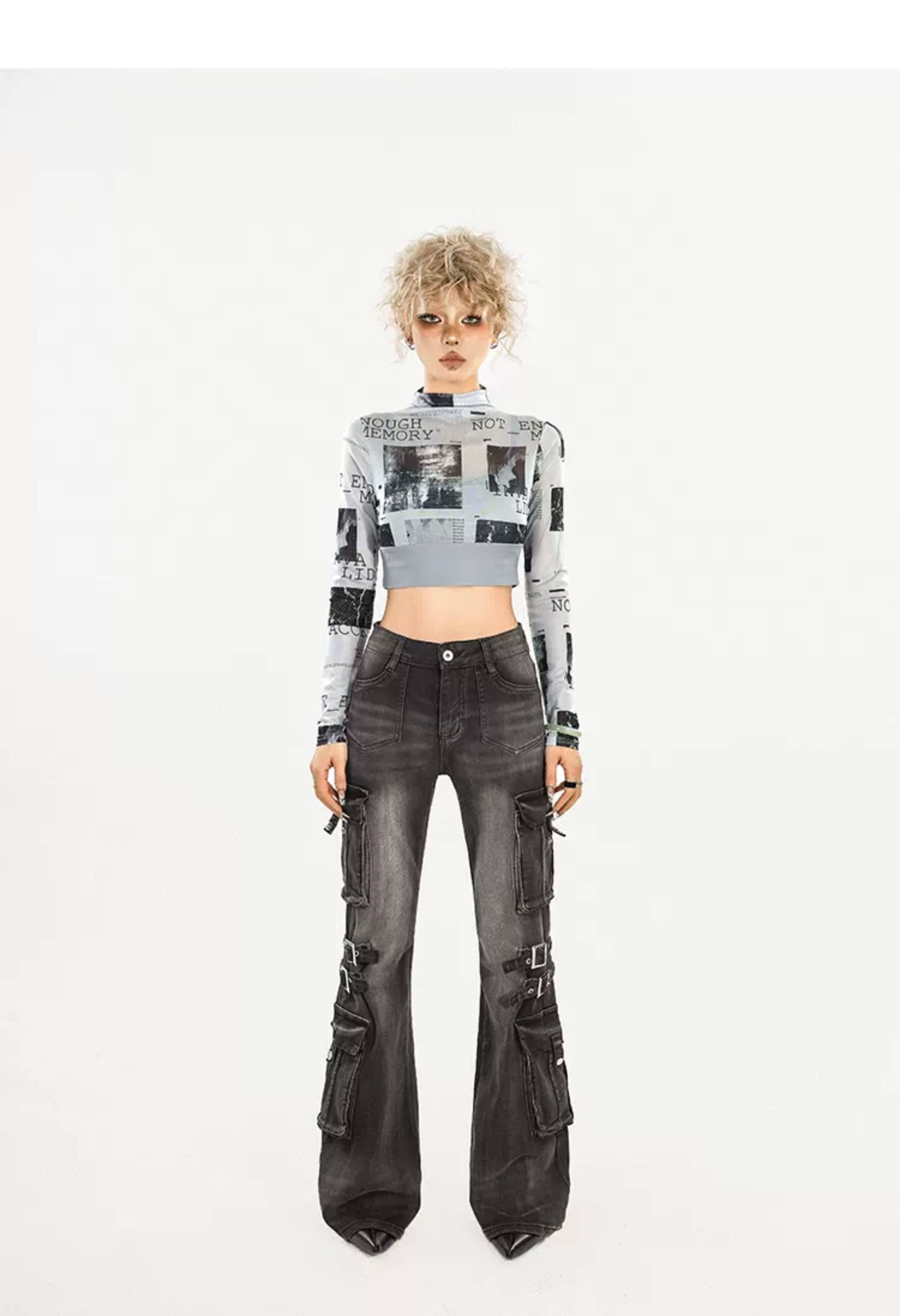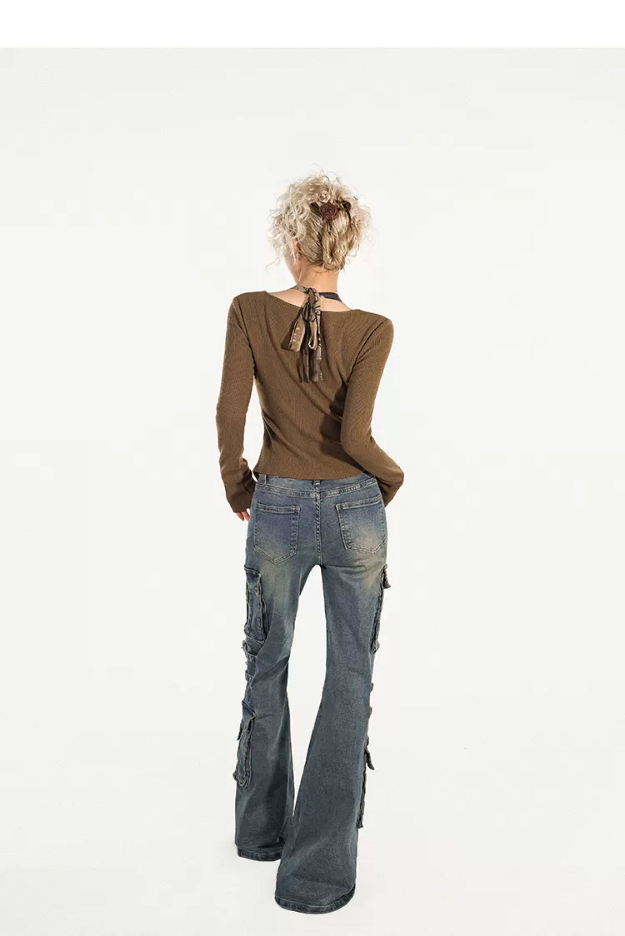 Utility Heavy Craft Slimming Flare Cargo Denim Jeans NA8632