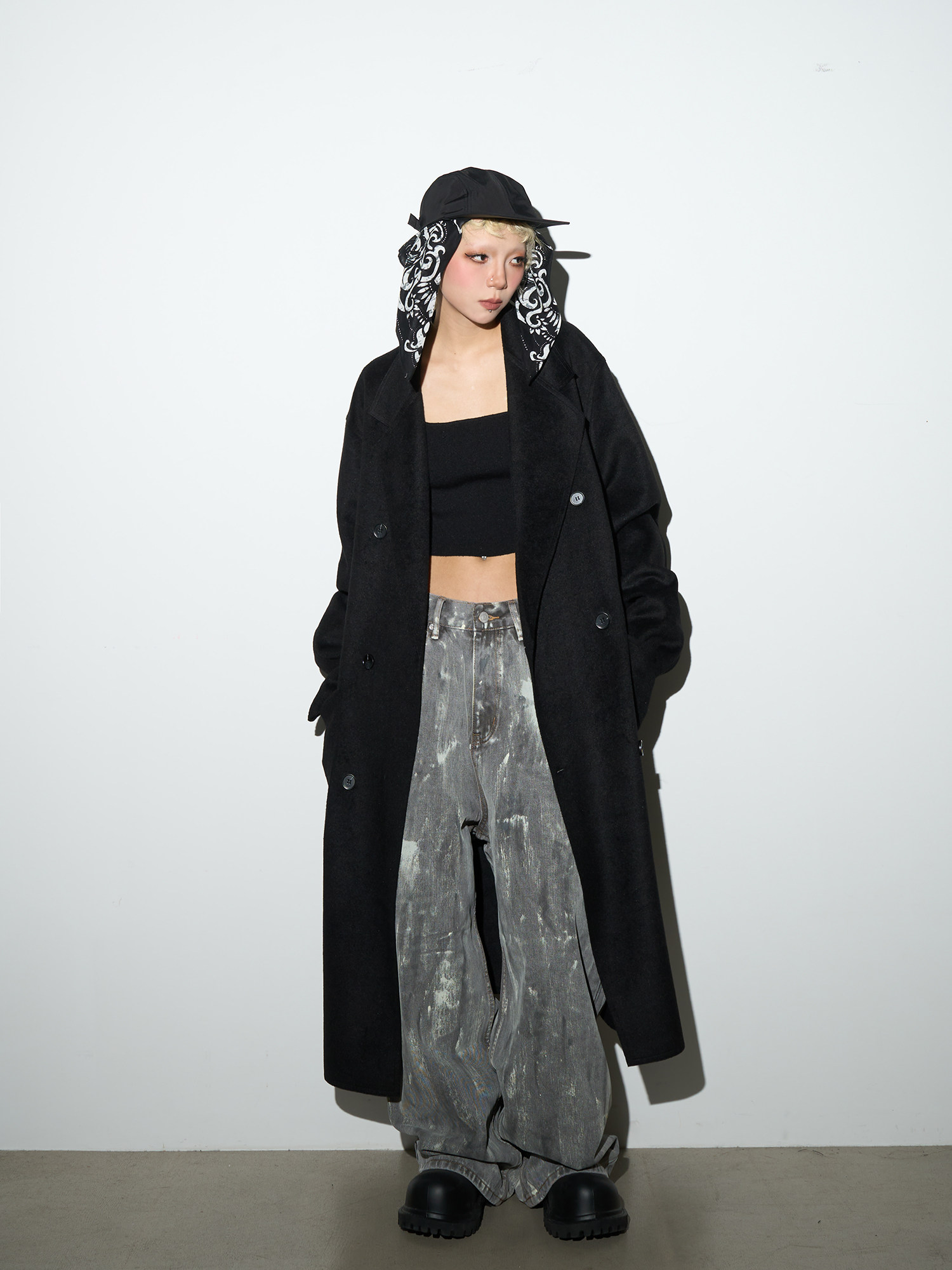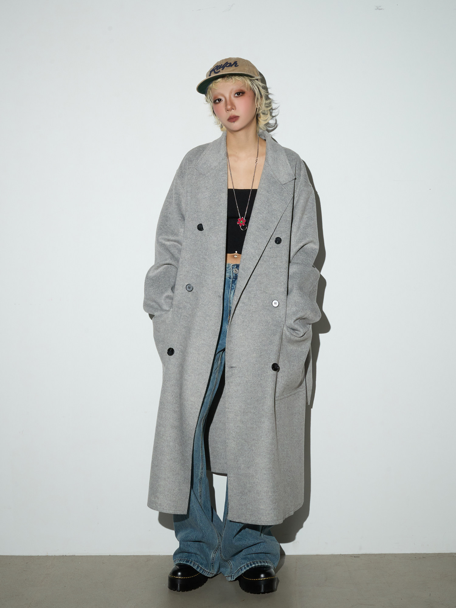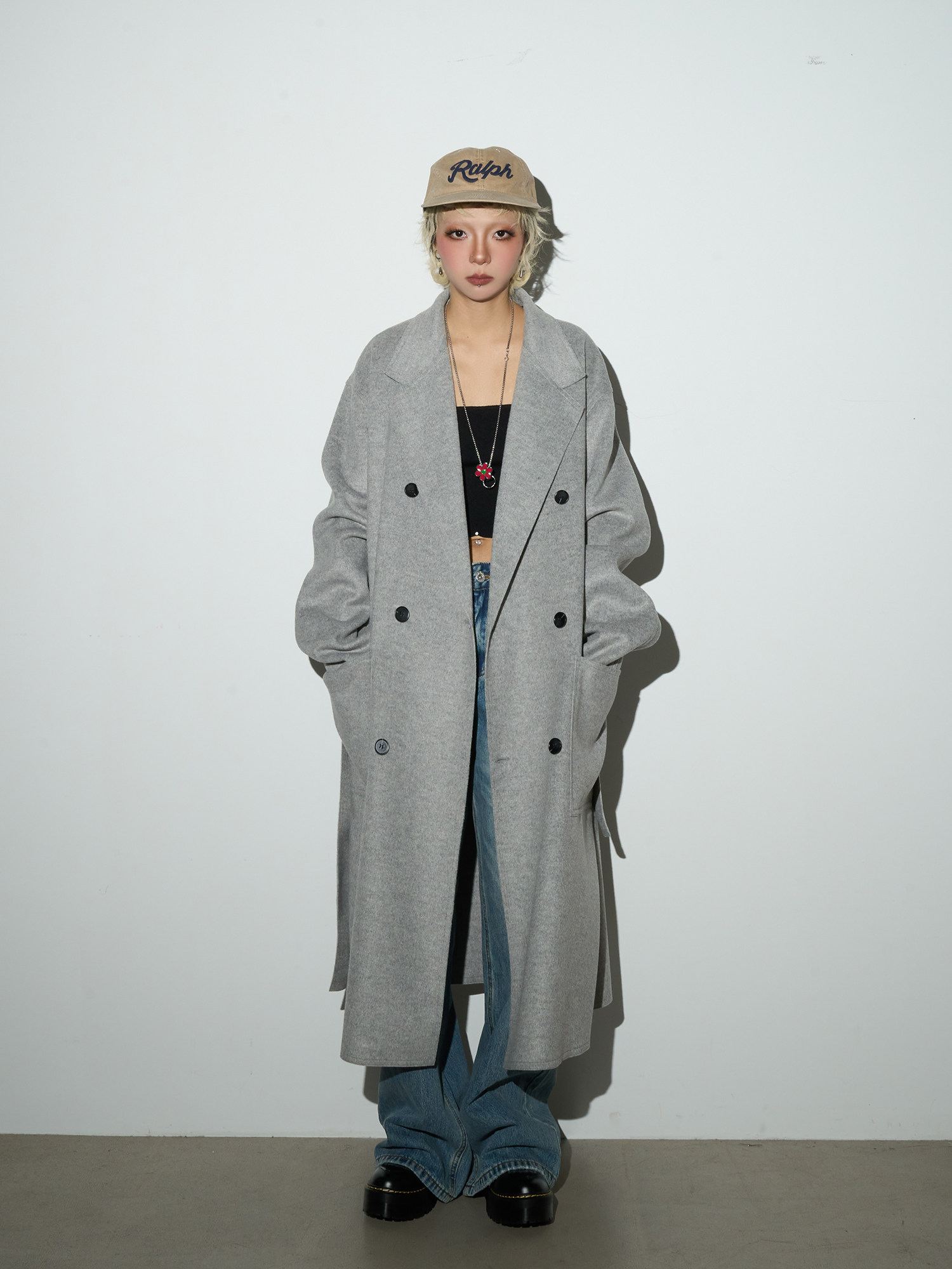 Double Breasted Belted Long Length Coat NA9182