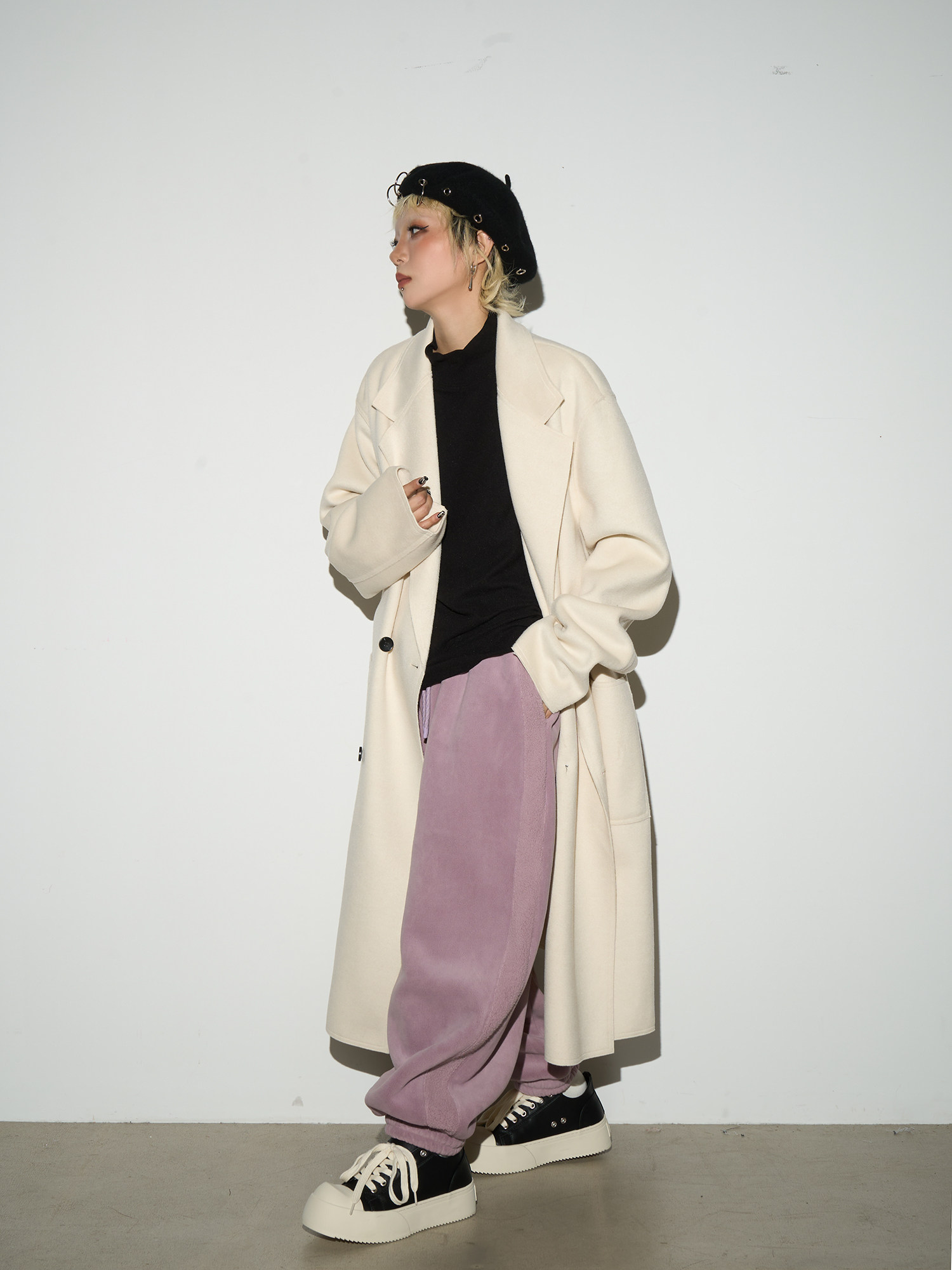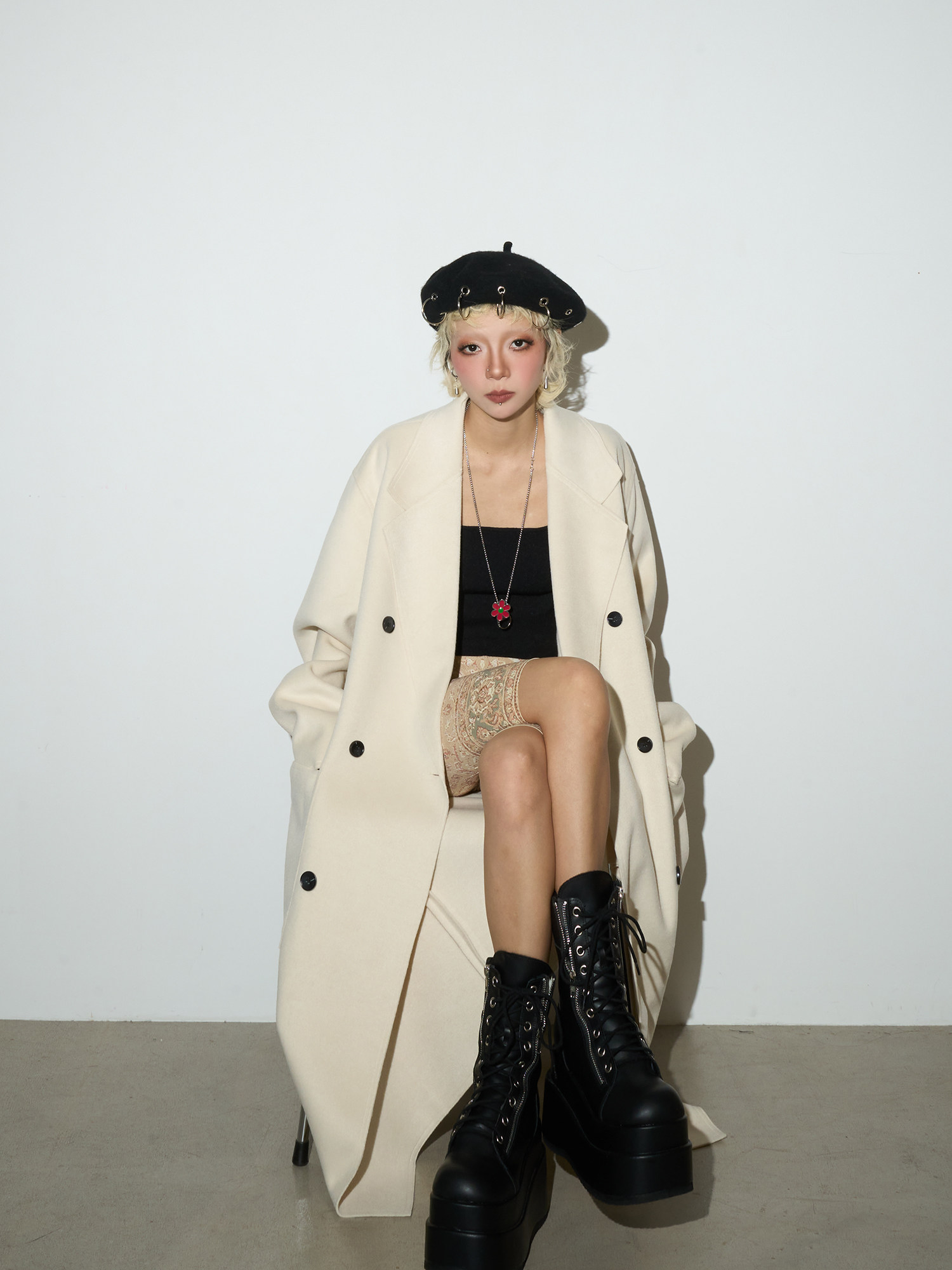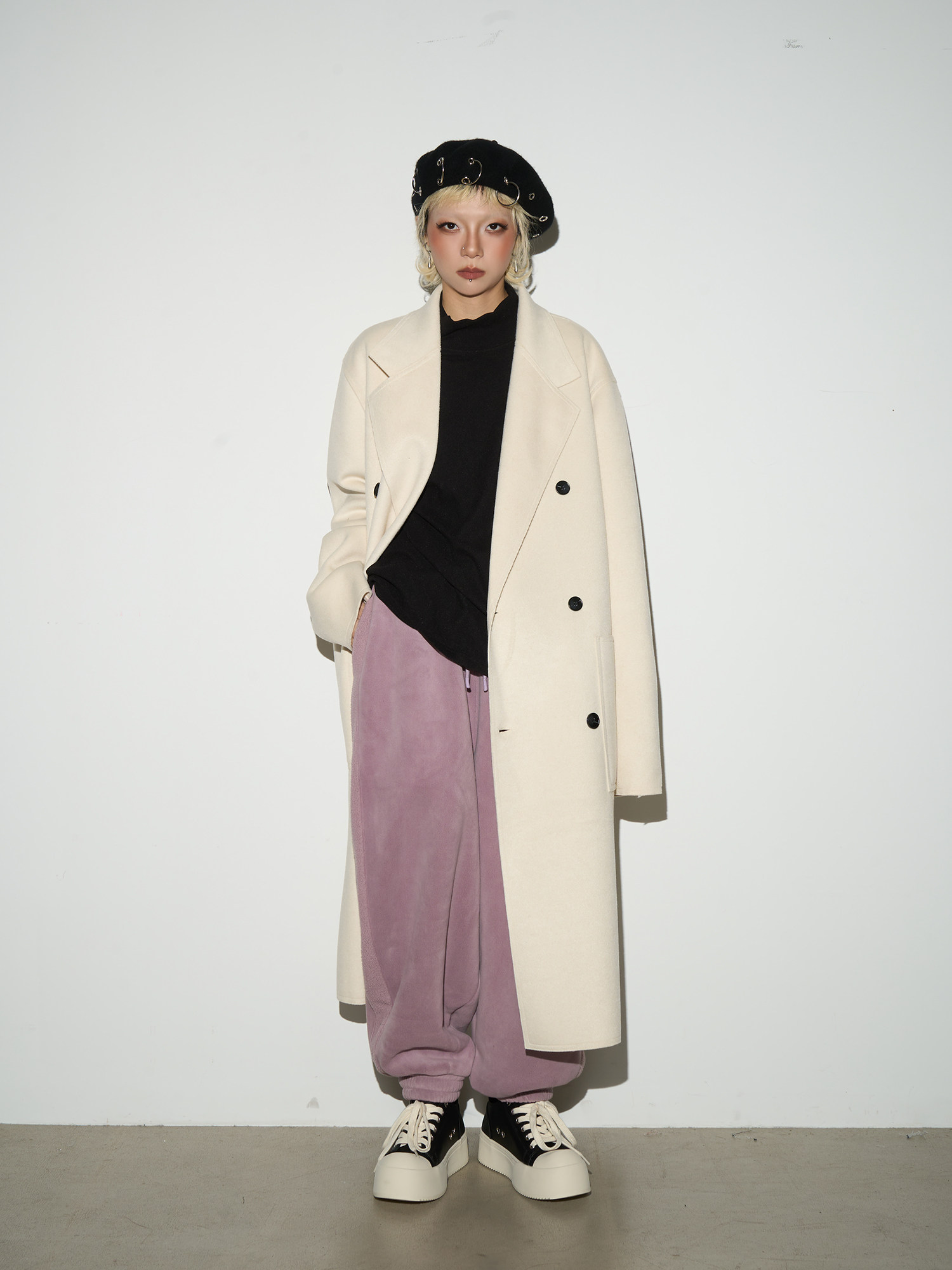 Double Breasted Belted Long Length Coat NA9182