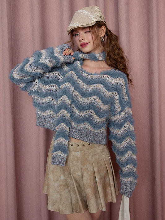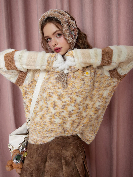 Striped Patchwork Detachable-Hood Knit Sweater NA6881