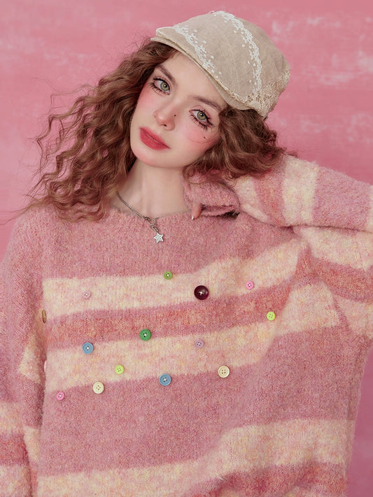 3D Embellishments Stripe Textured Knit Sweater NA6860