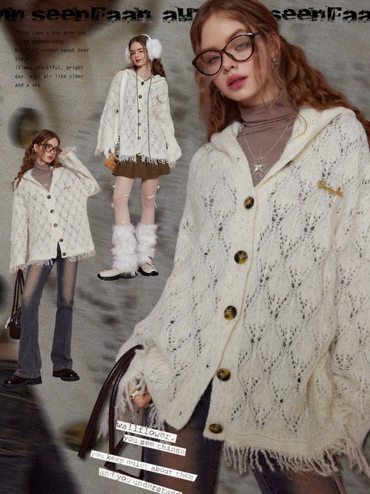 Fringe Hem Twist Texture Knit Long Sleeve Cardigan NA6858