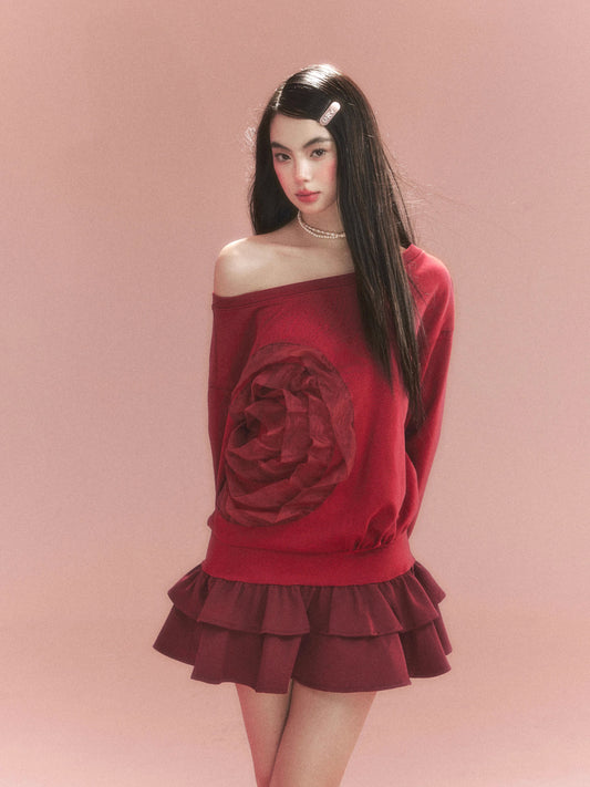 Flower Ruffle Sweatshirt Mix Dress NA5811