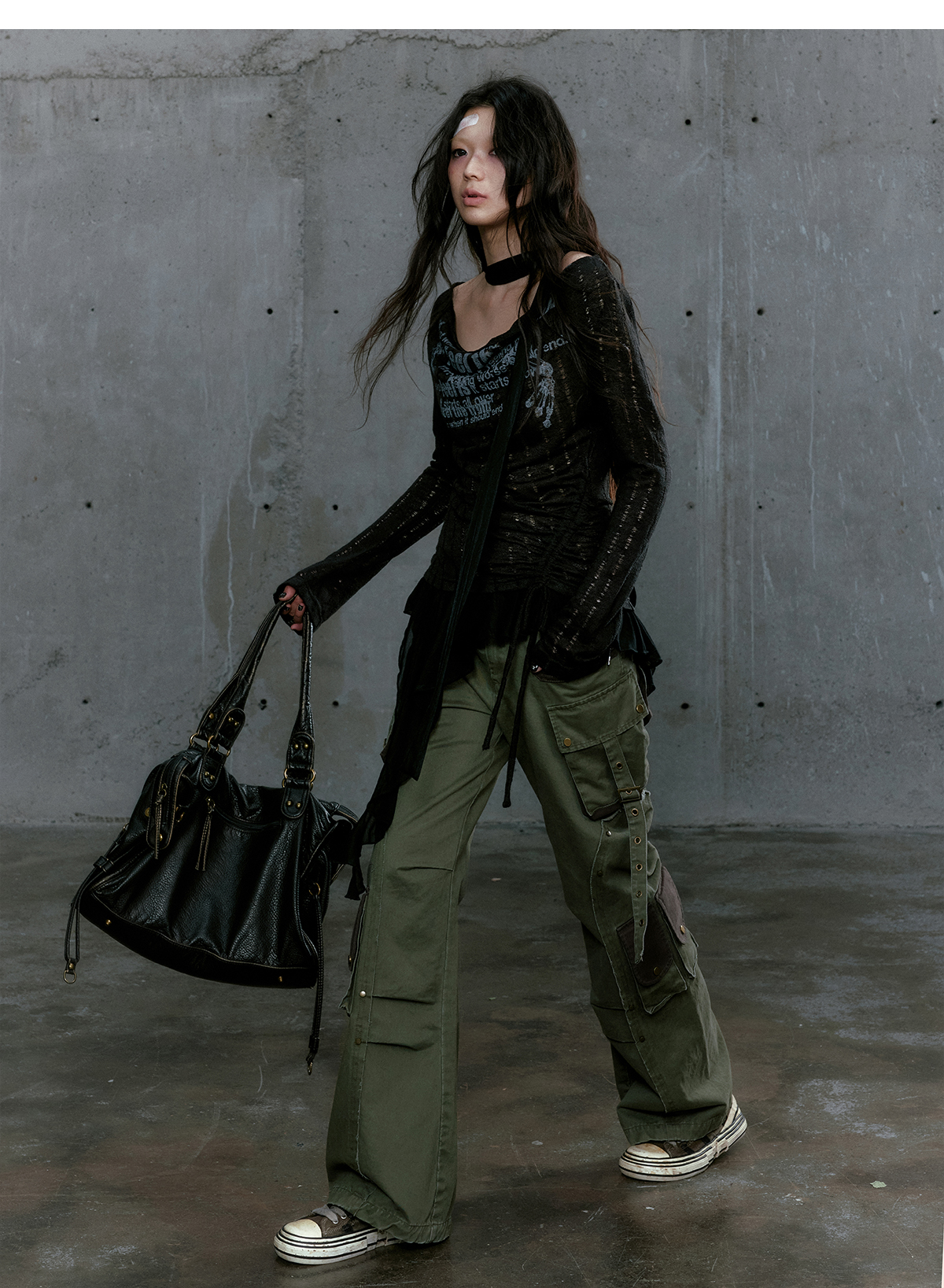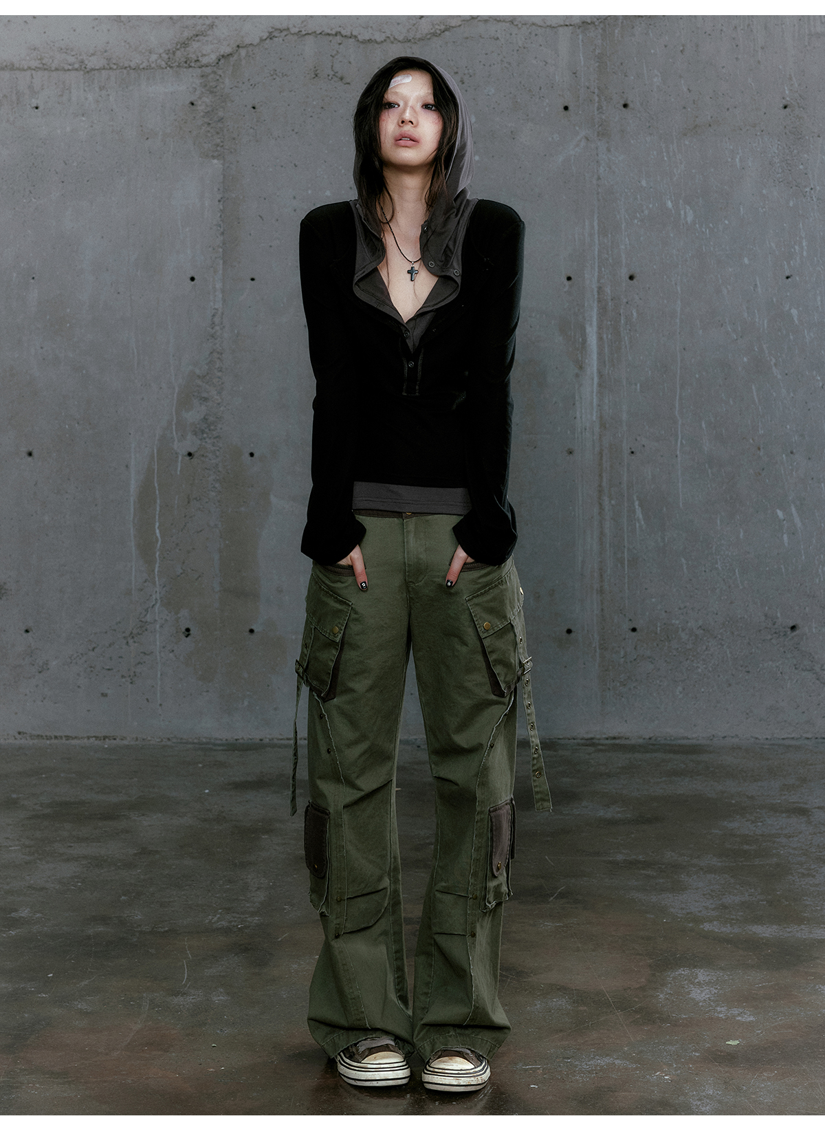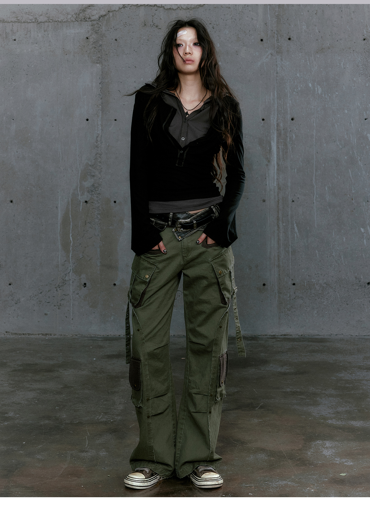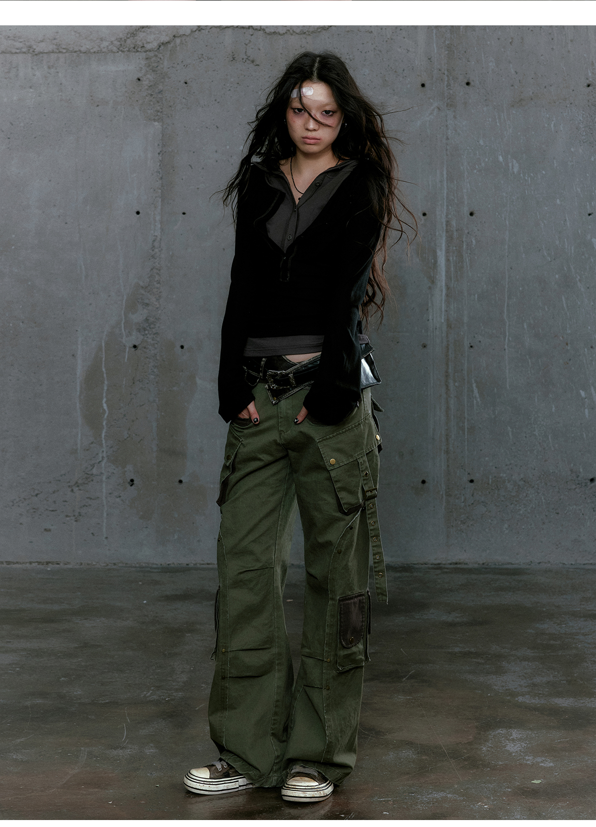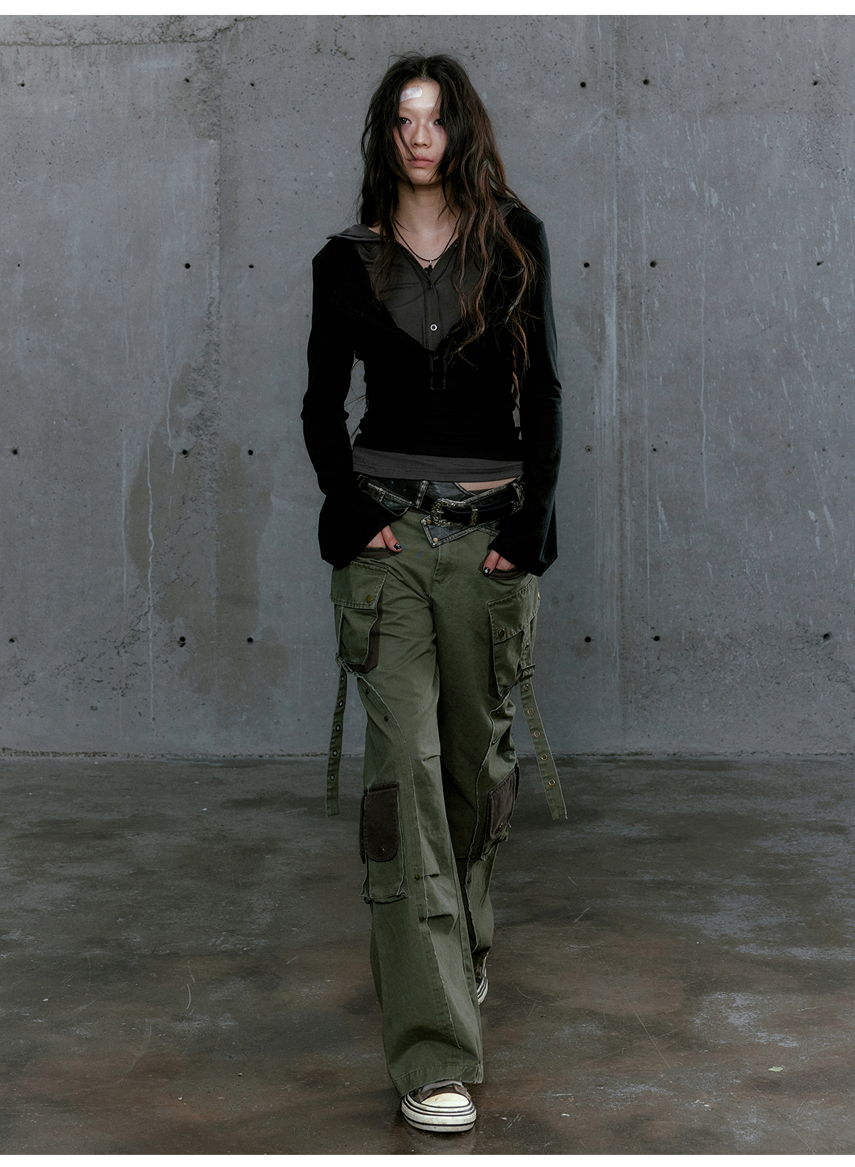 Multi Pocket Low Waist Straight Leg Cargo Pants NA6036