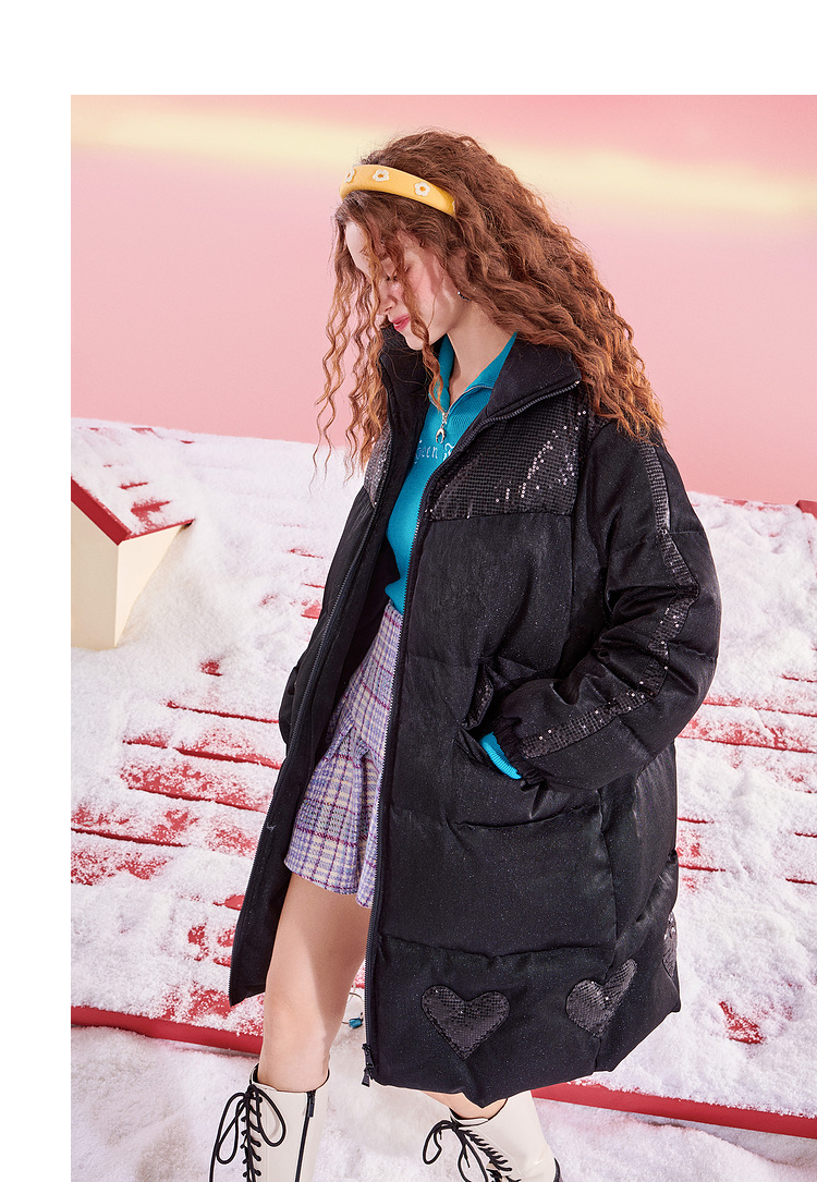 Sequin Patchwork Long White Duck Down Coat NA6747