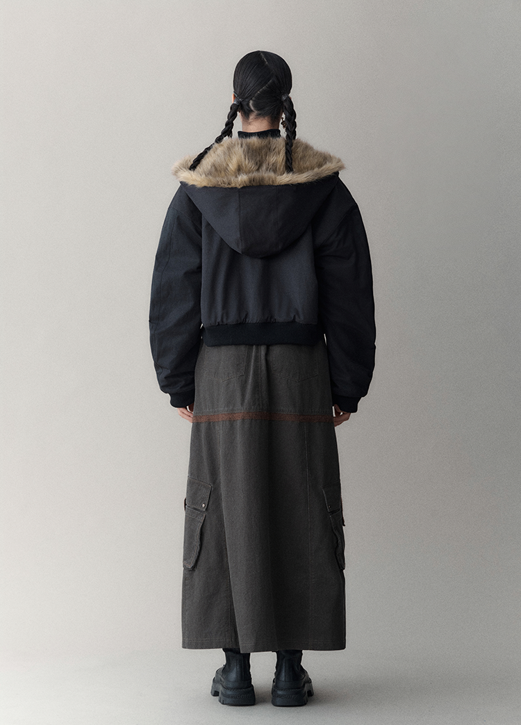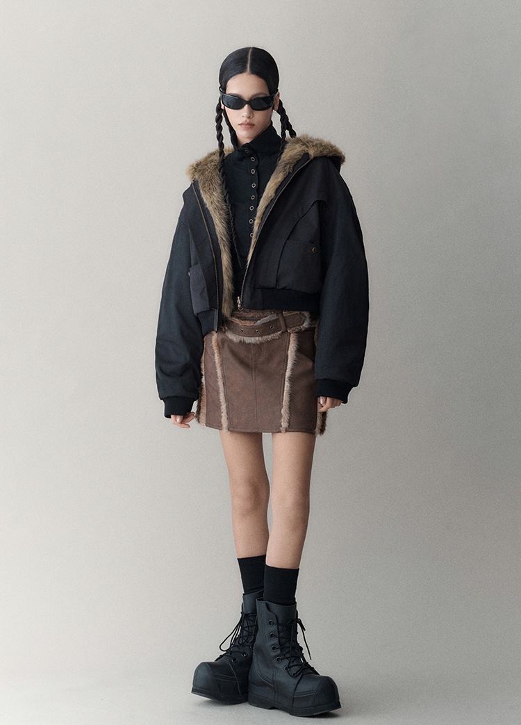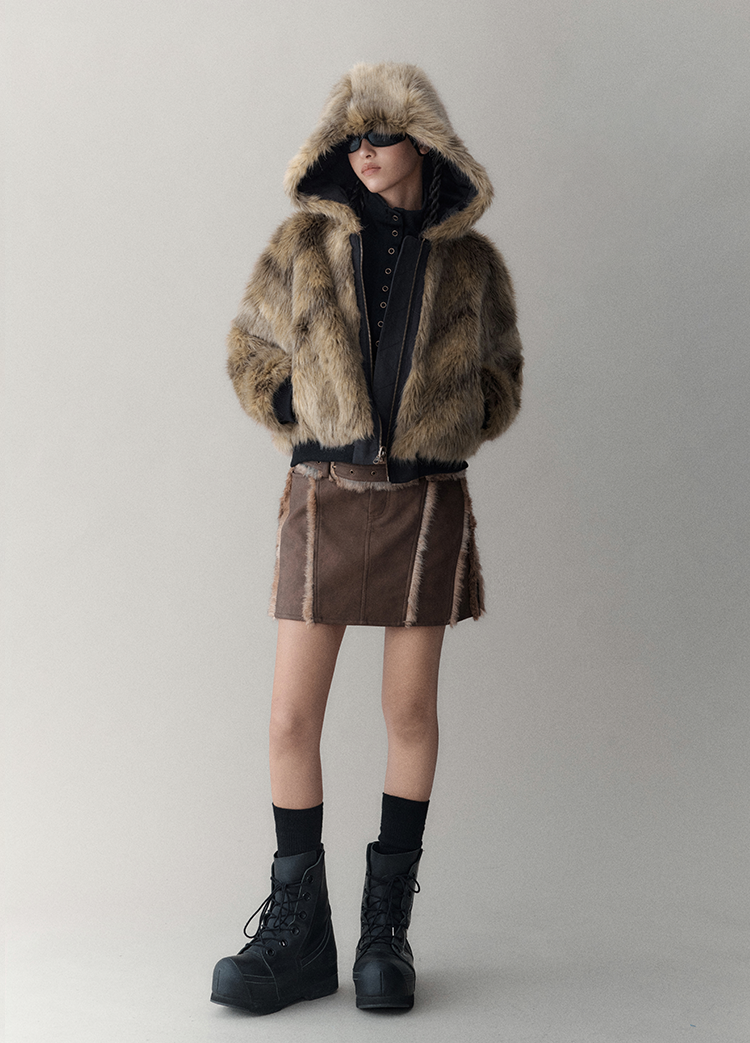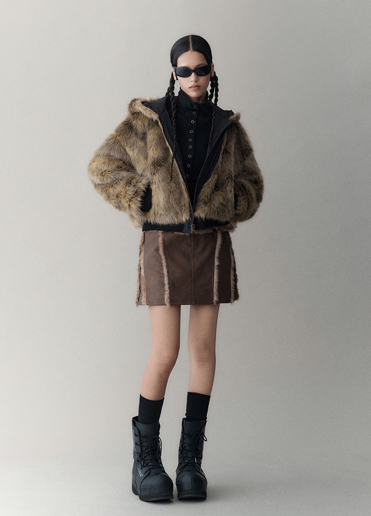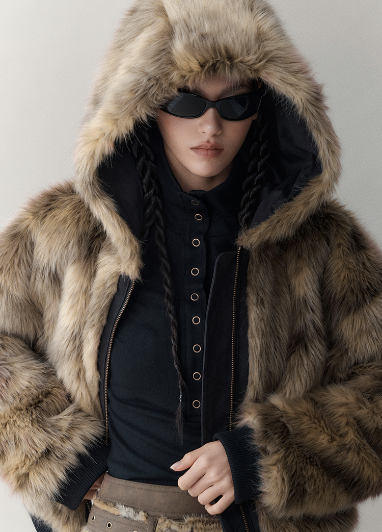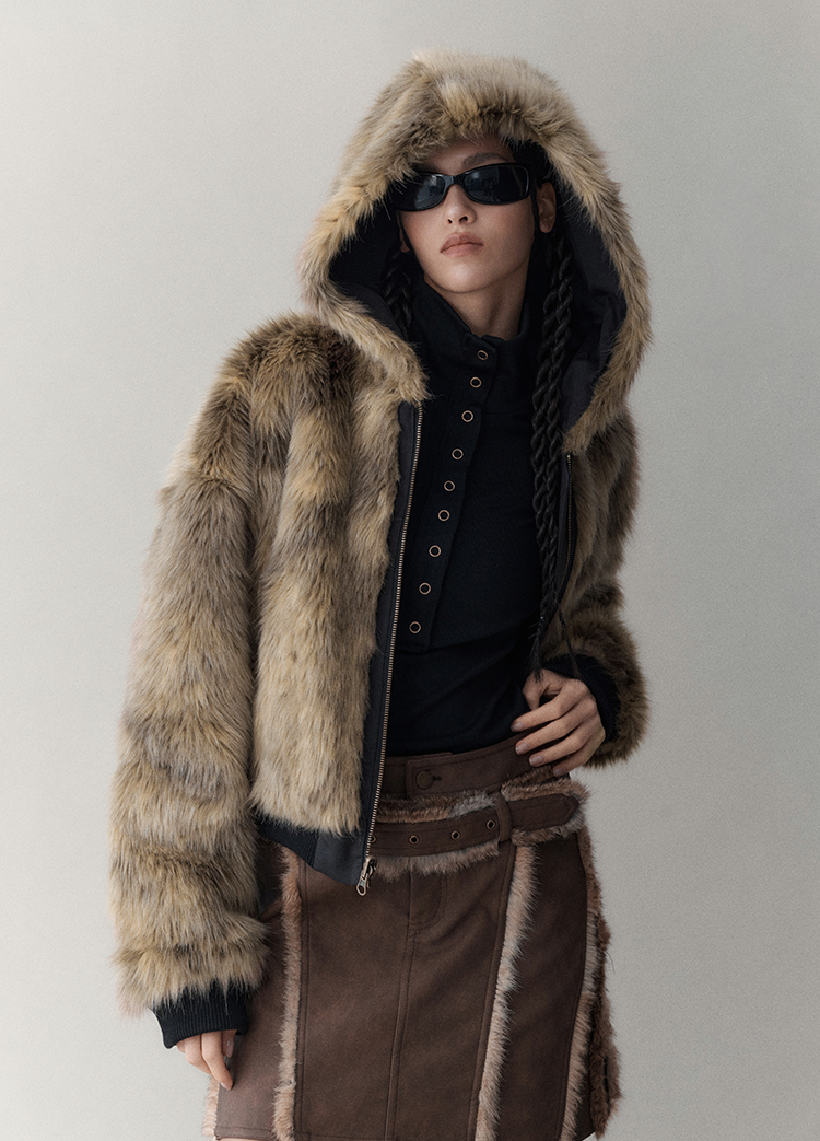 Reversible Fake Fur Short Hooded Jacket NA7890