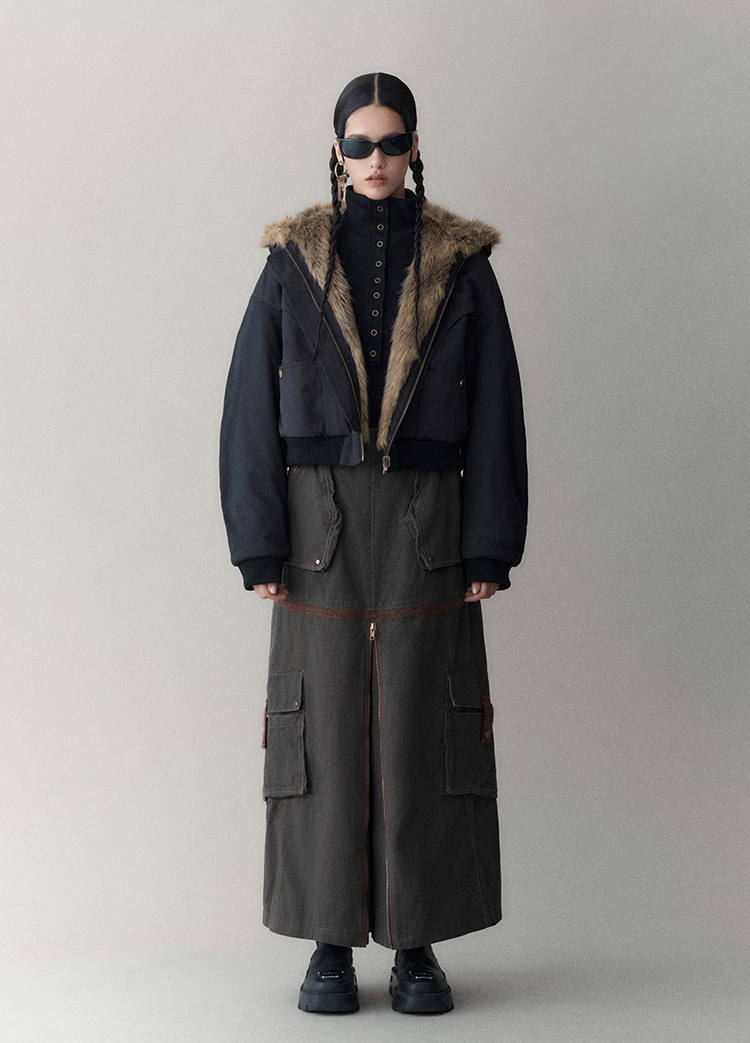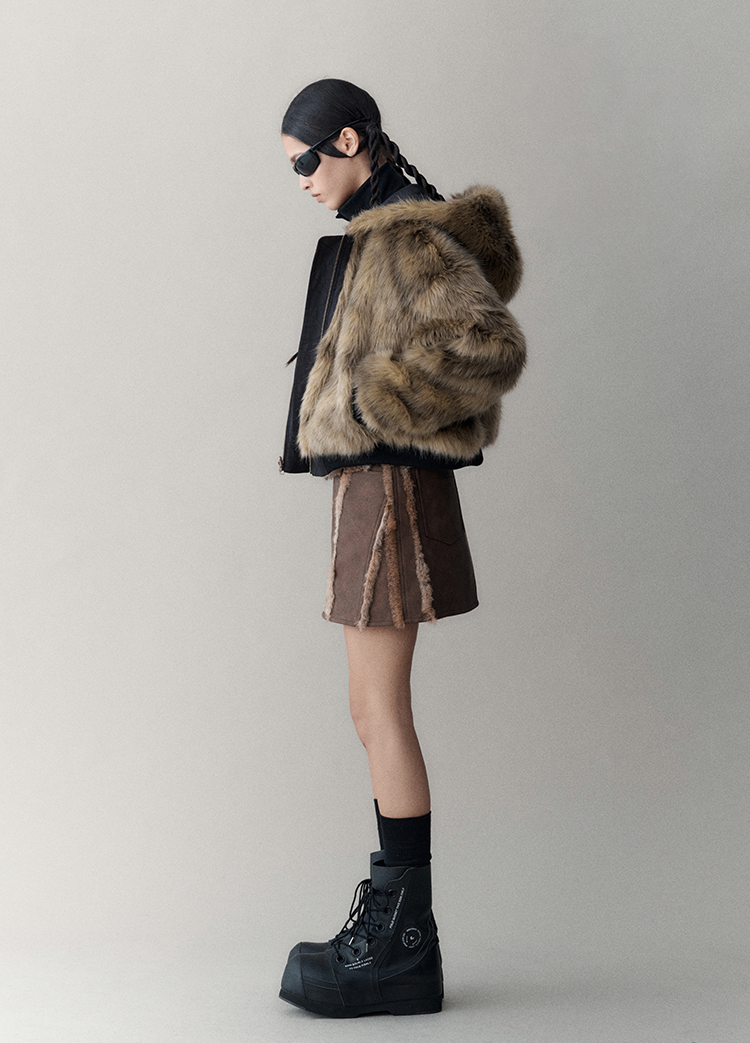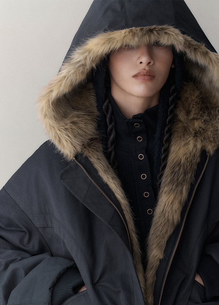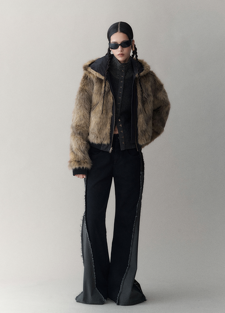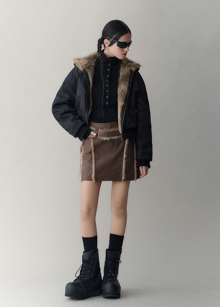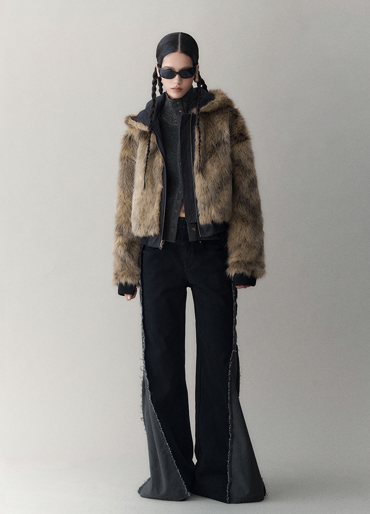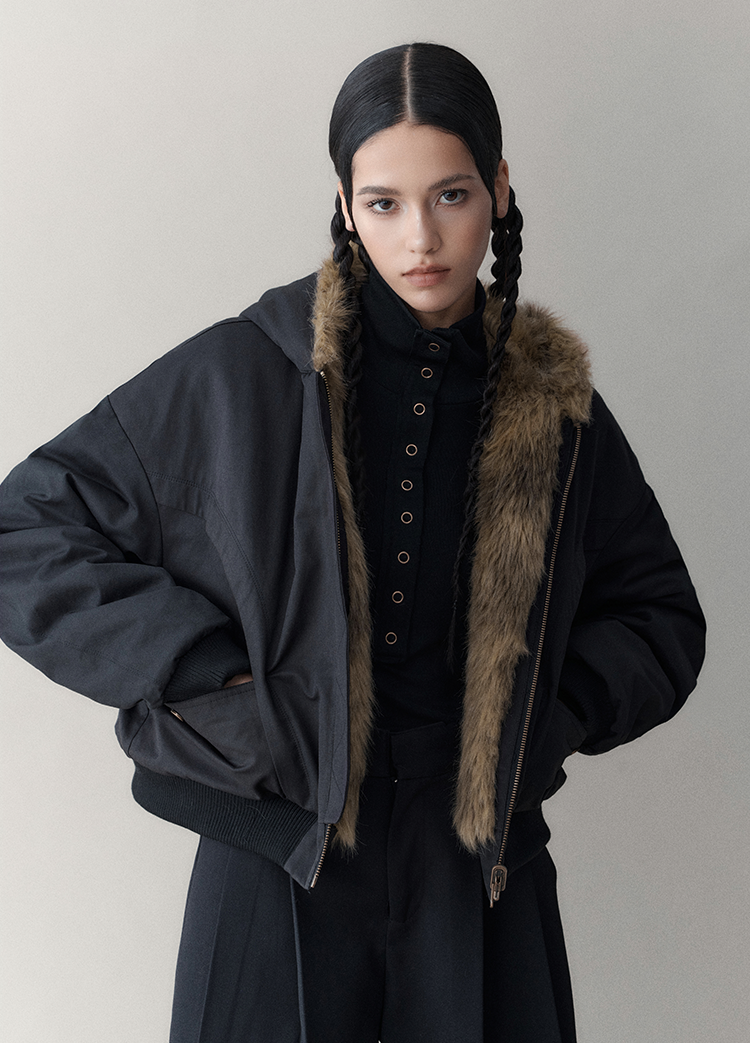 Reversible Fake Fur Short Hooded Jacket NA7890