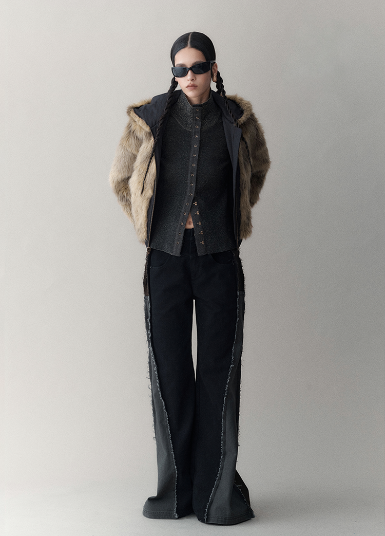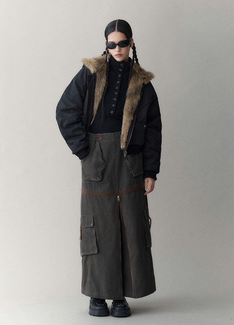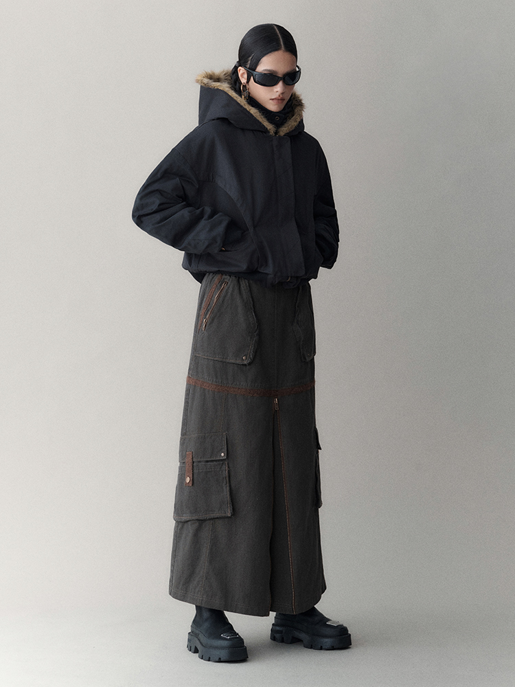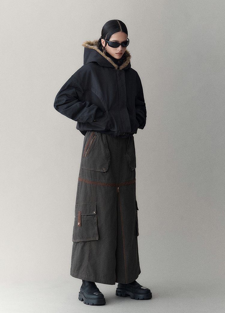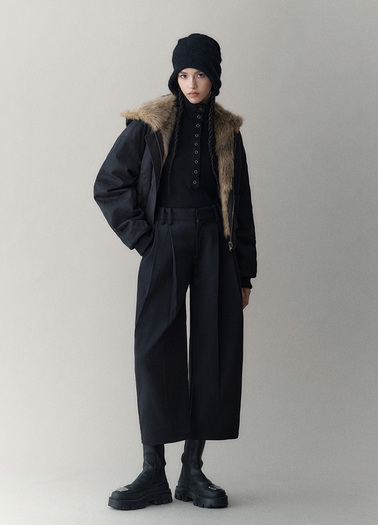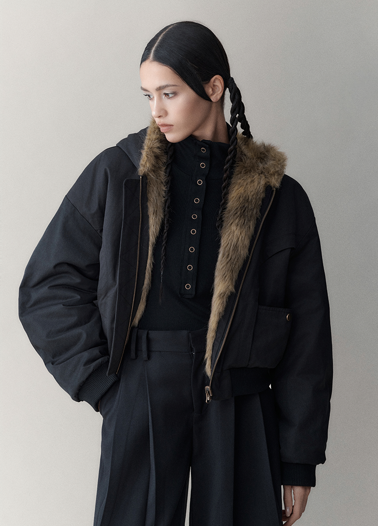 Reversible Fake Fur Short Hooded Jacket NA7890