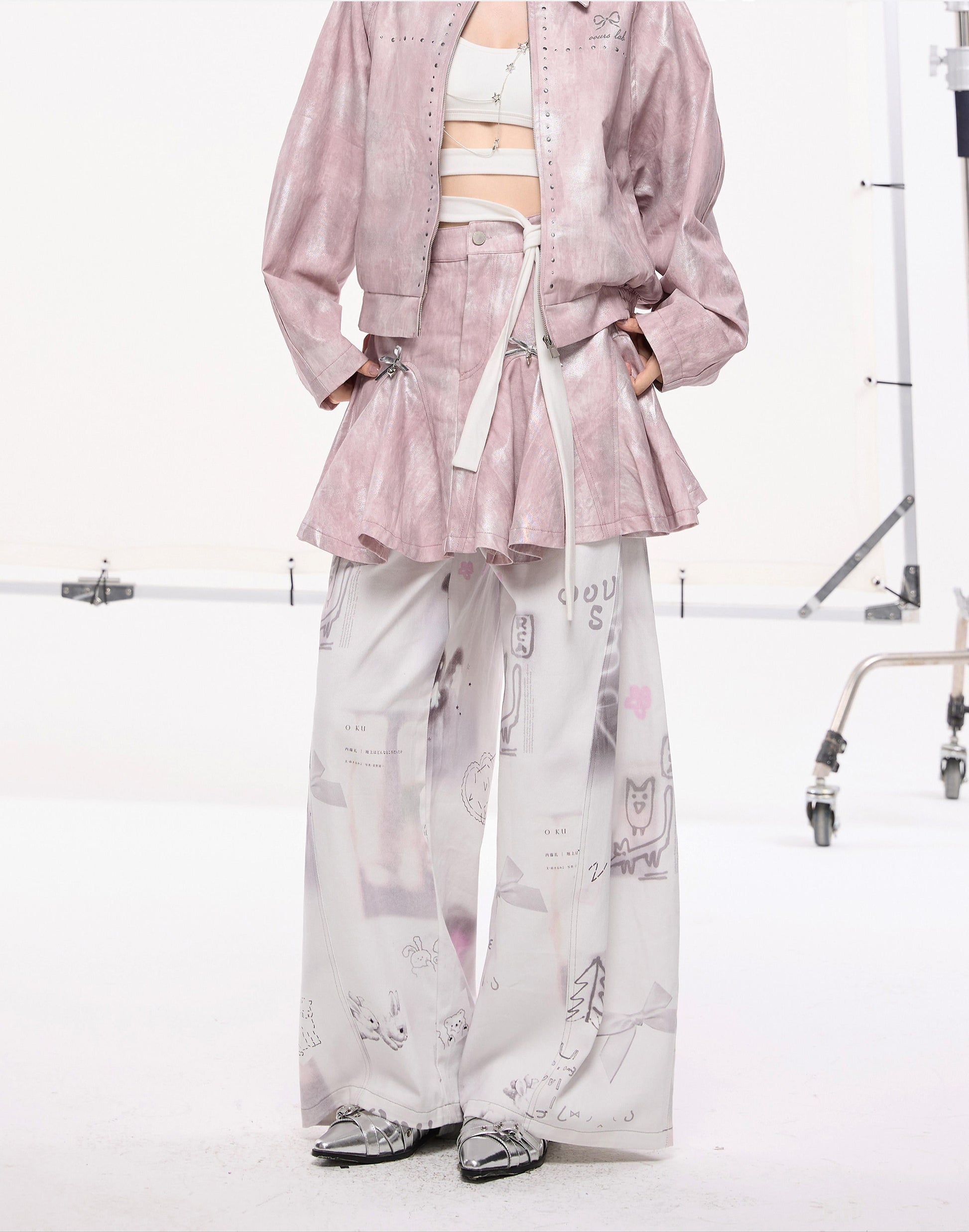 Graphic Wide-Leg Lantern Pants & Skirt NA8209