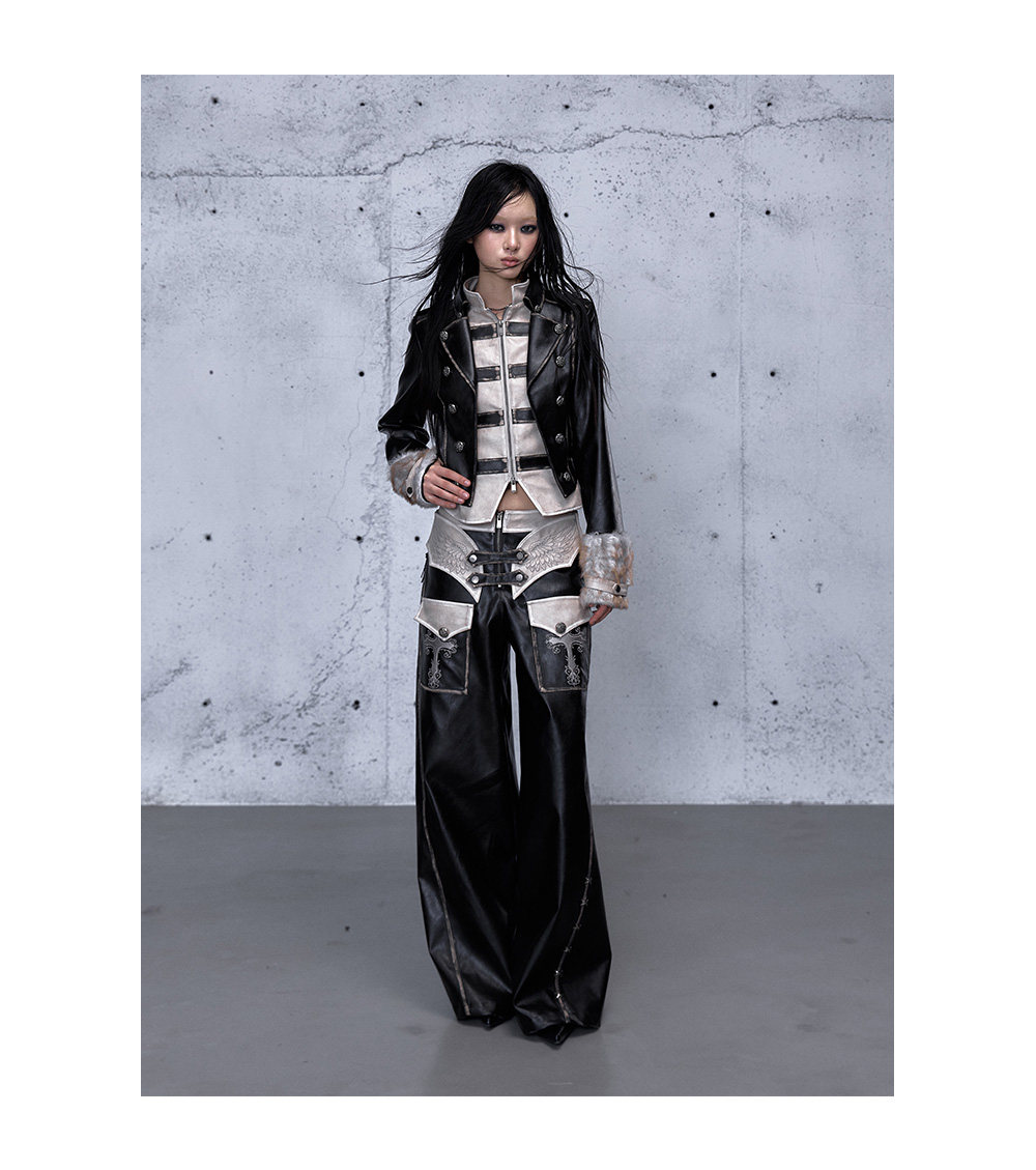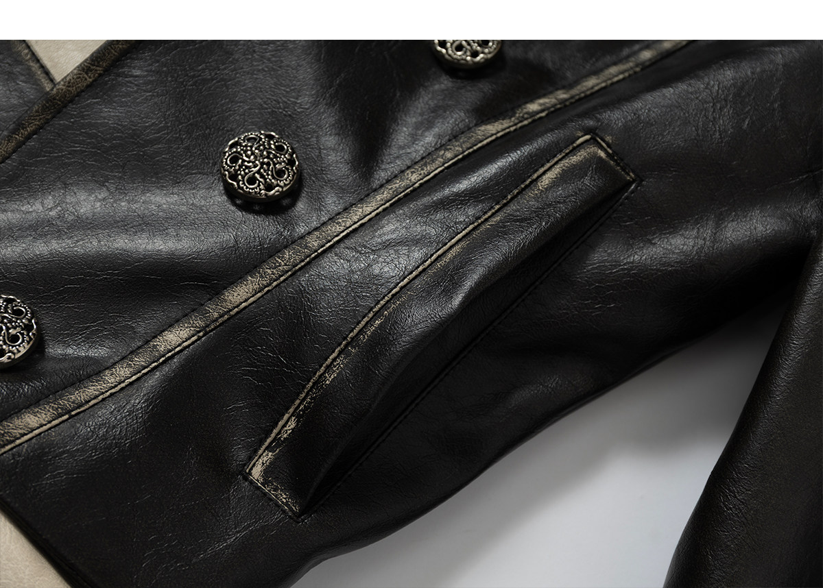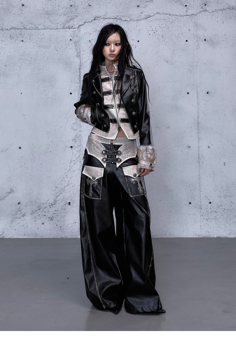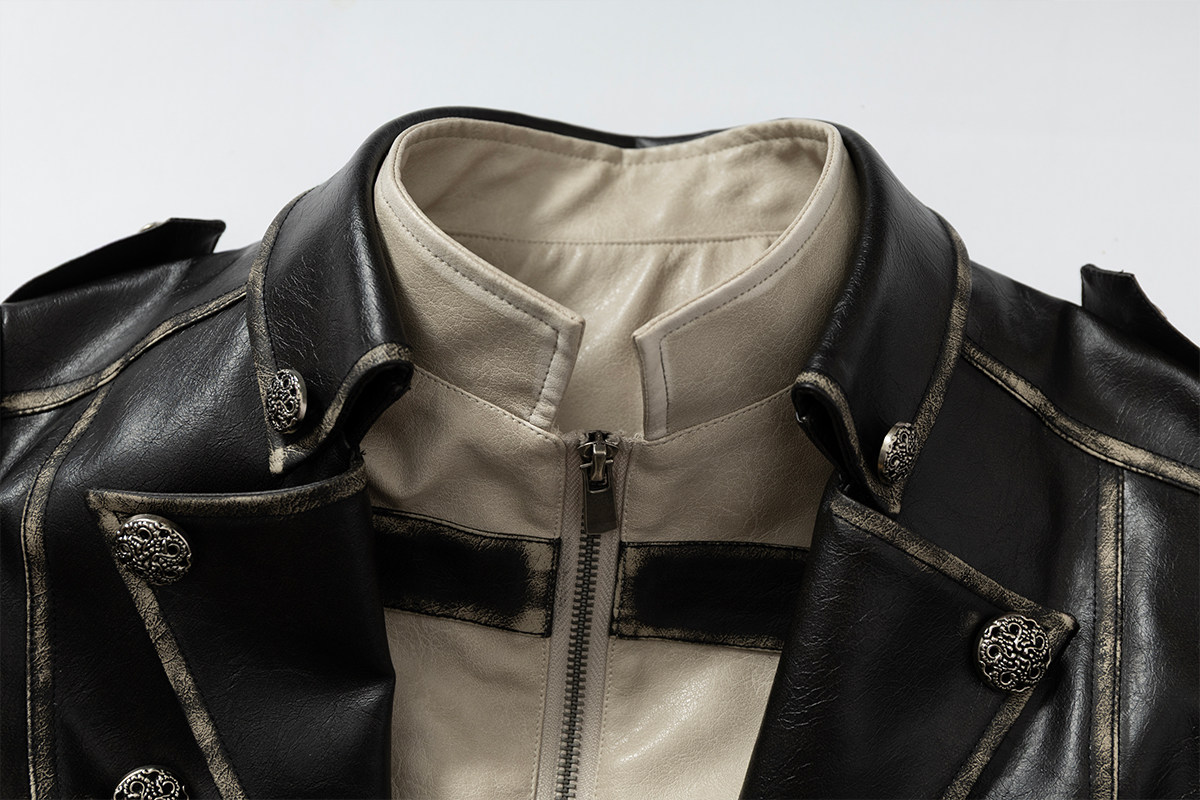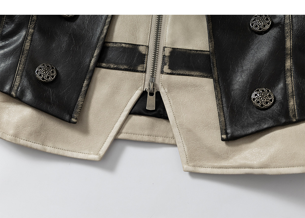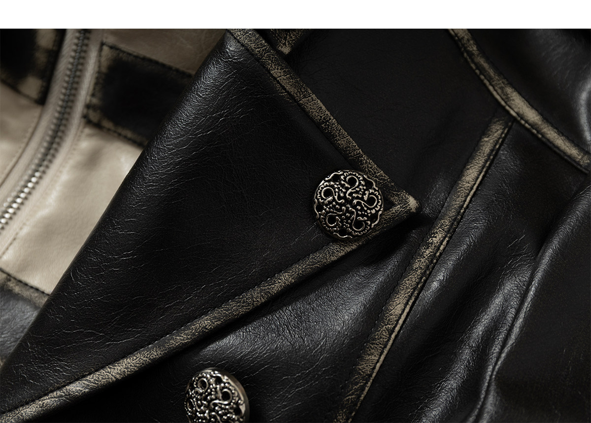 Standing-Collar Belt Detail Fake Fur Cuff PU Leather Jacket NA8980