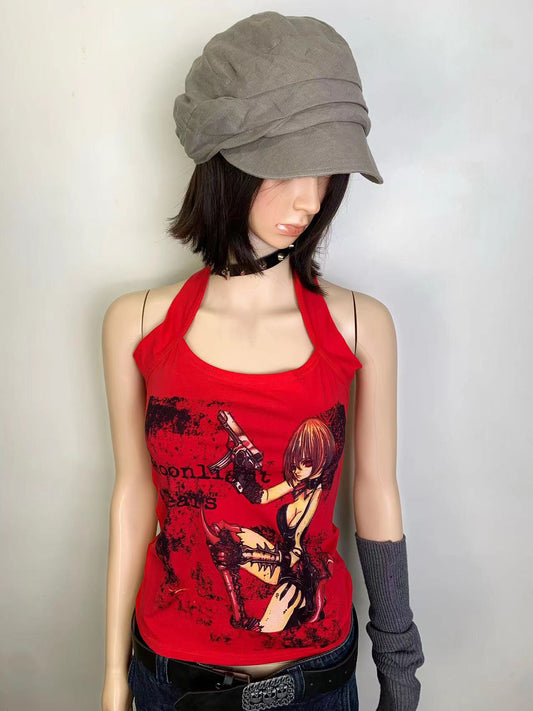 Angel Wolf Print Y2K Style Lace Camisole NA7615