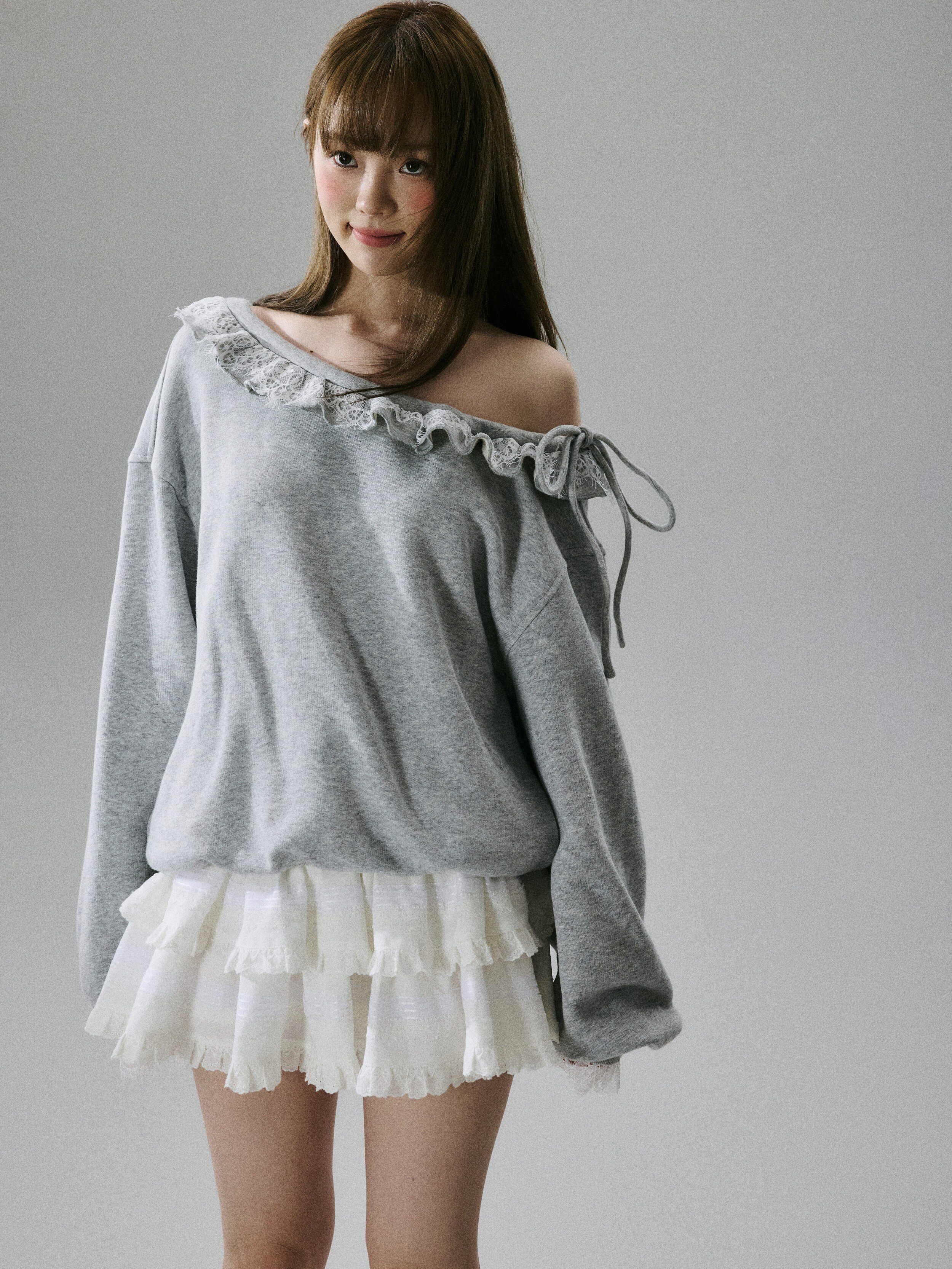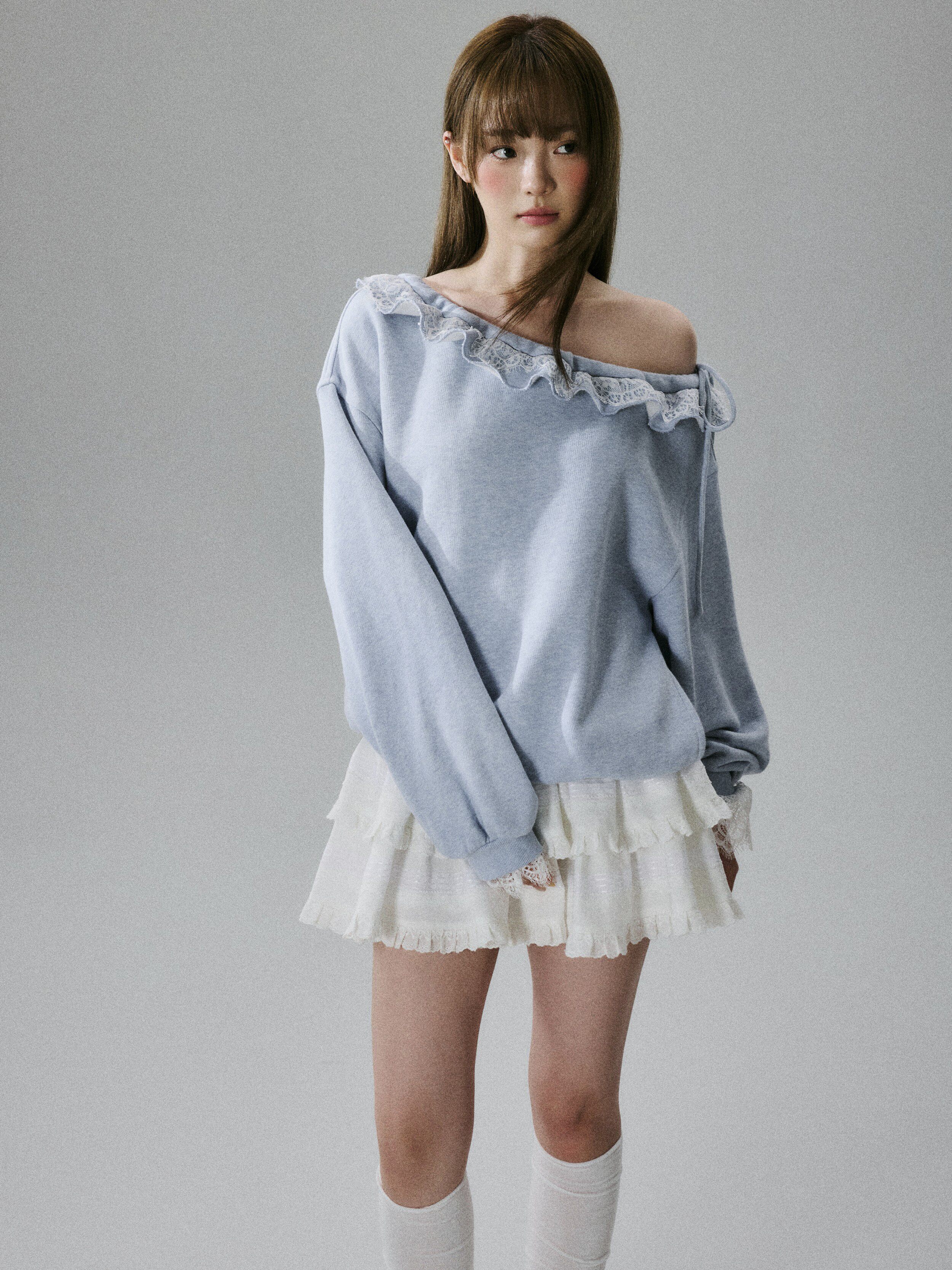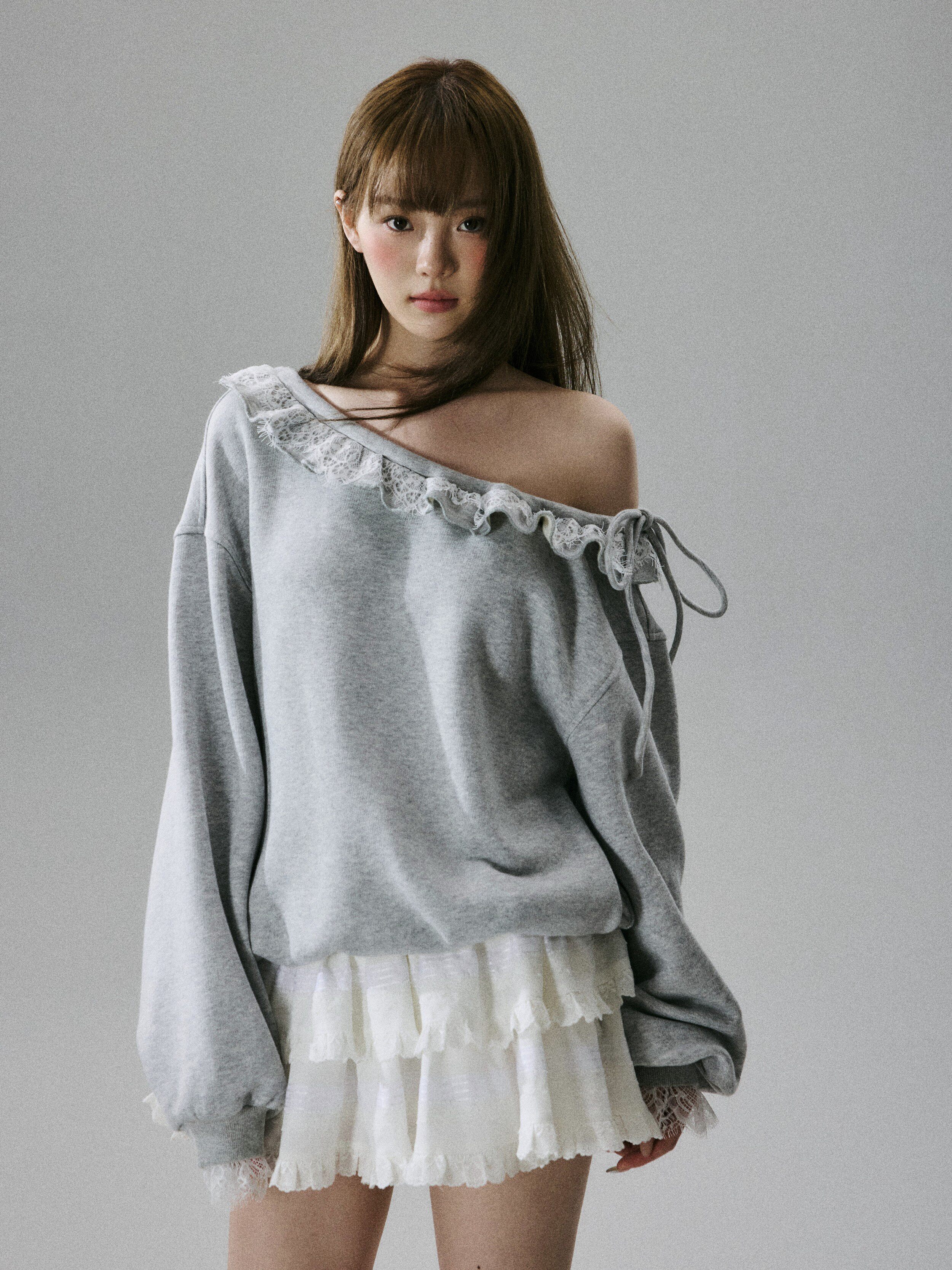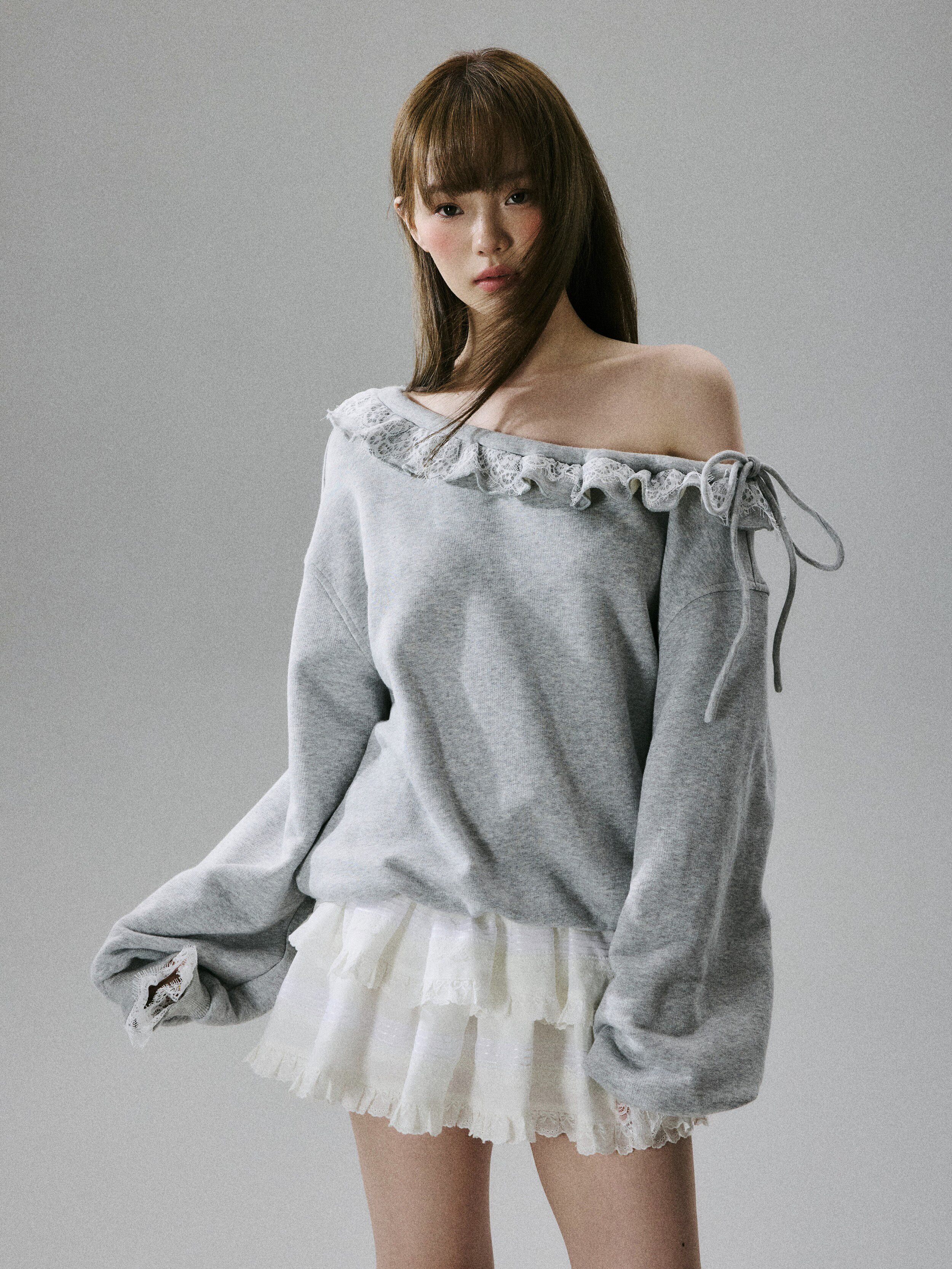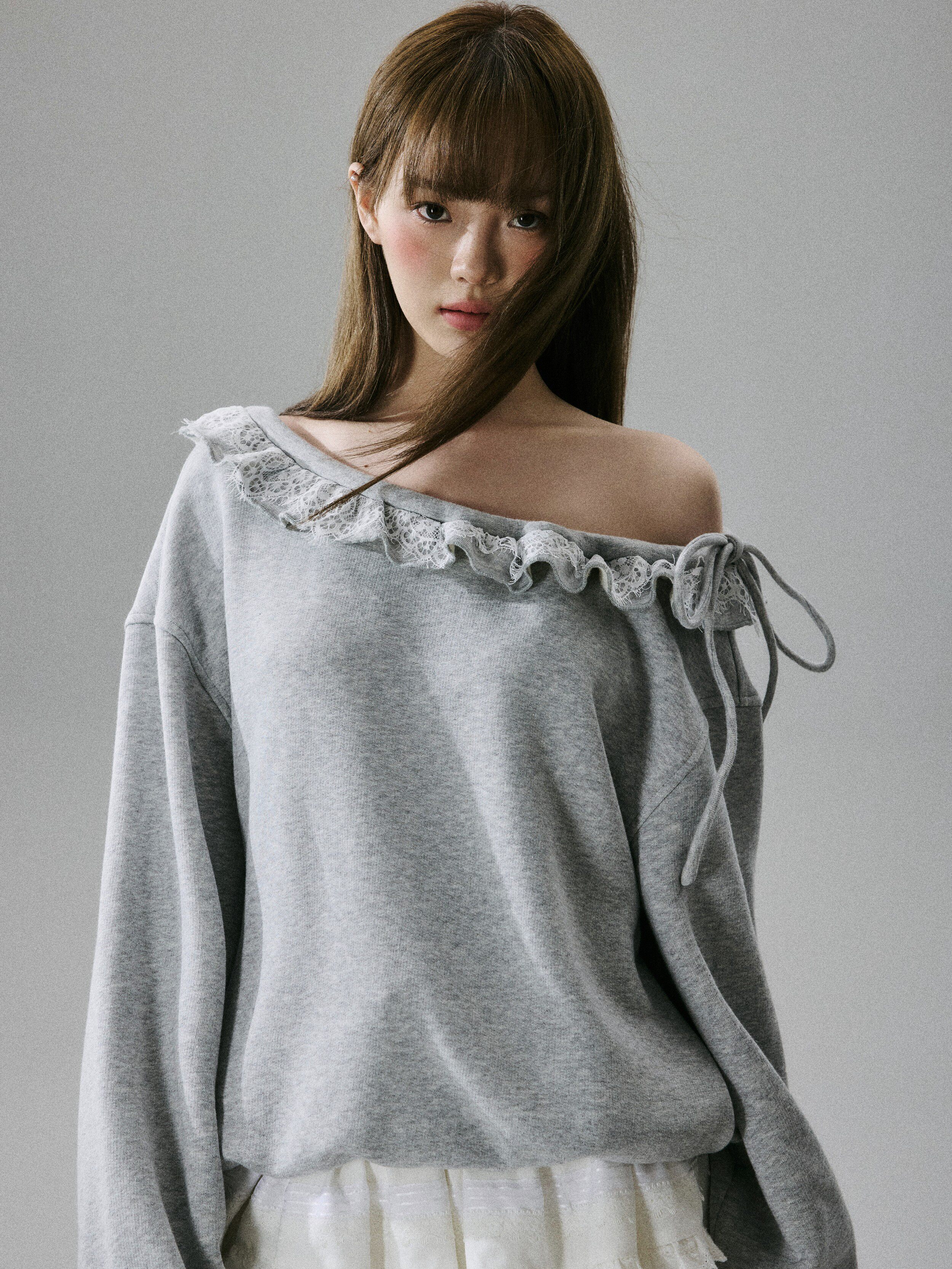 Off-Shoulder Lace Trim Sweatshirt NA8849