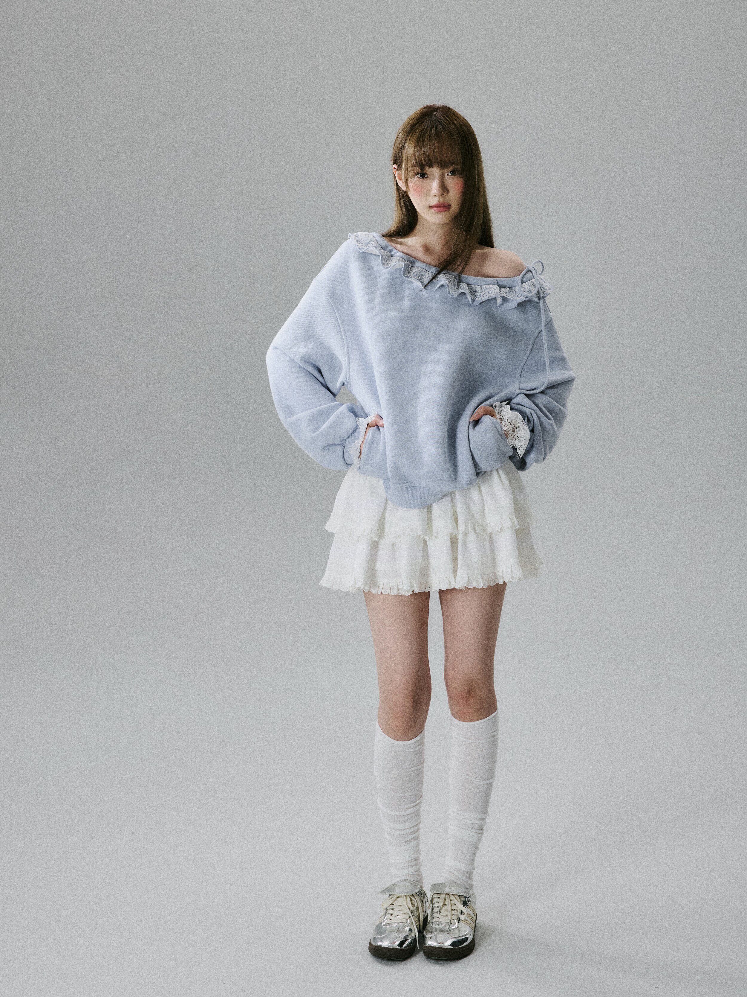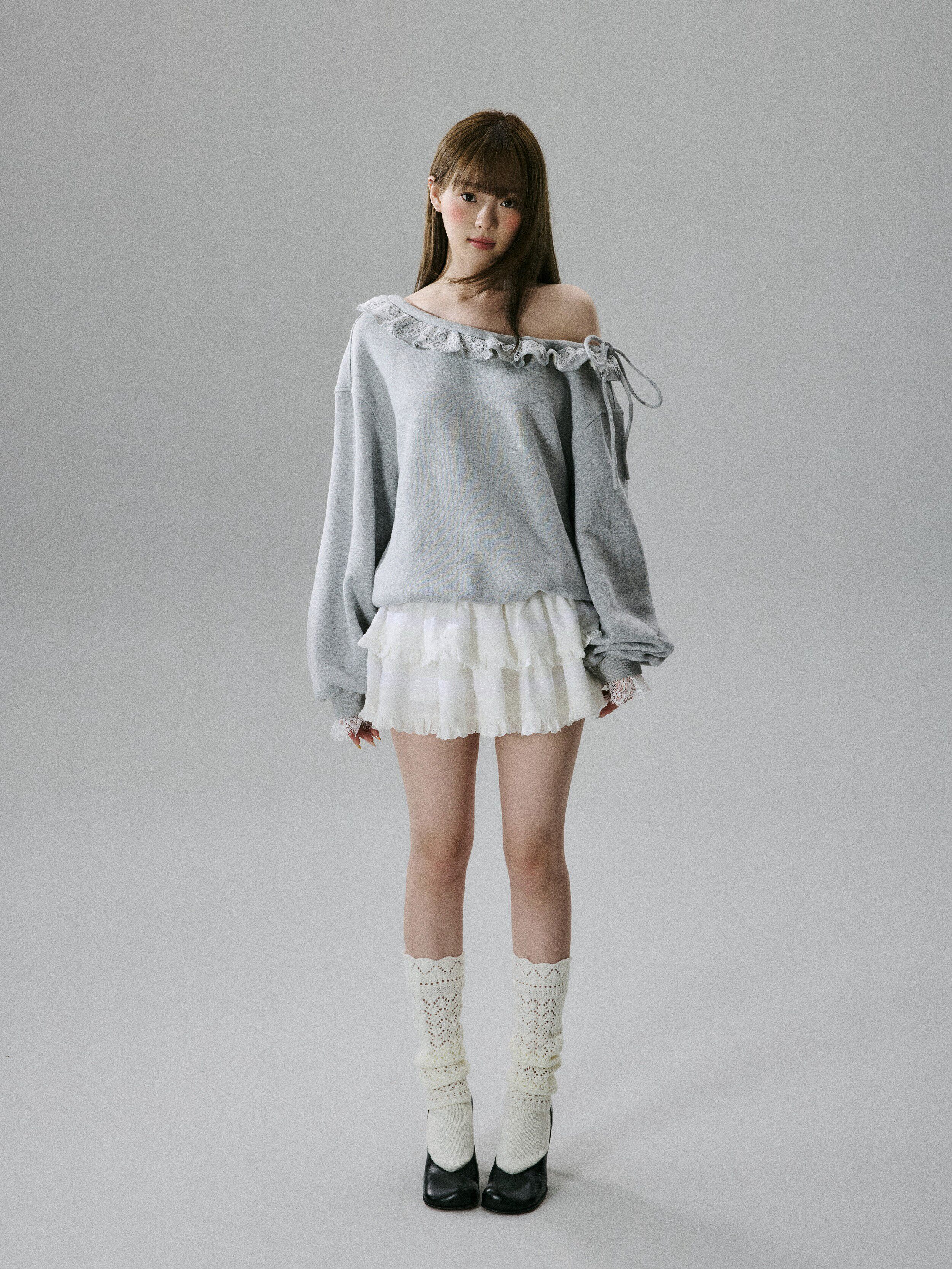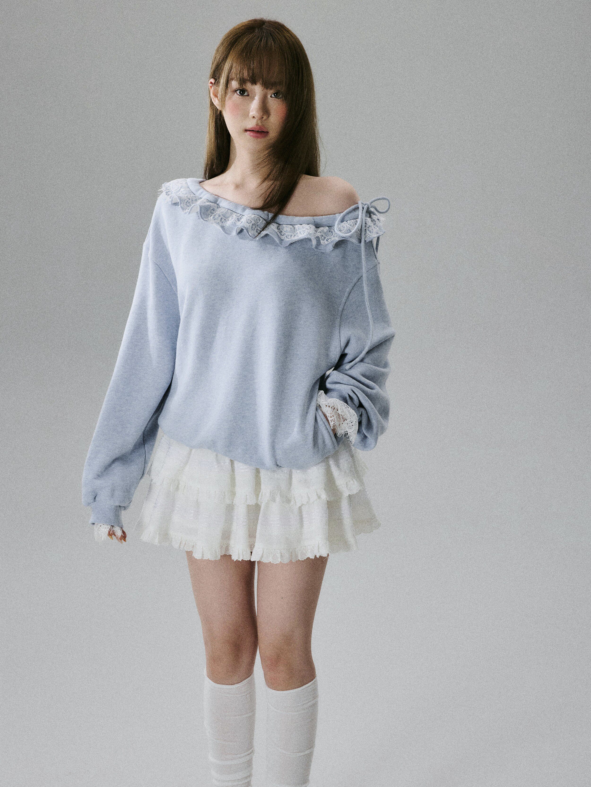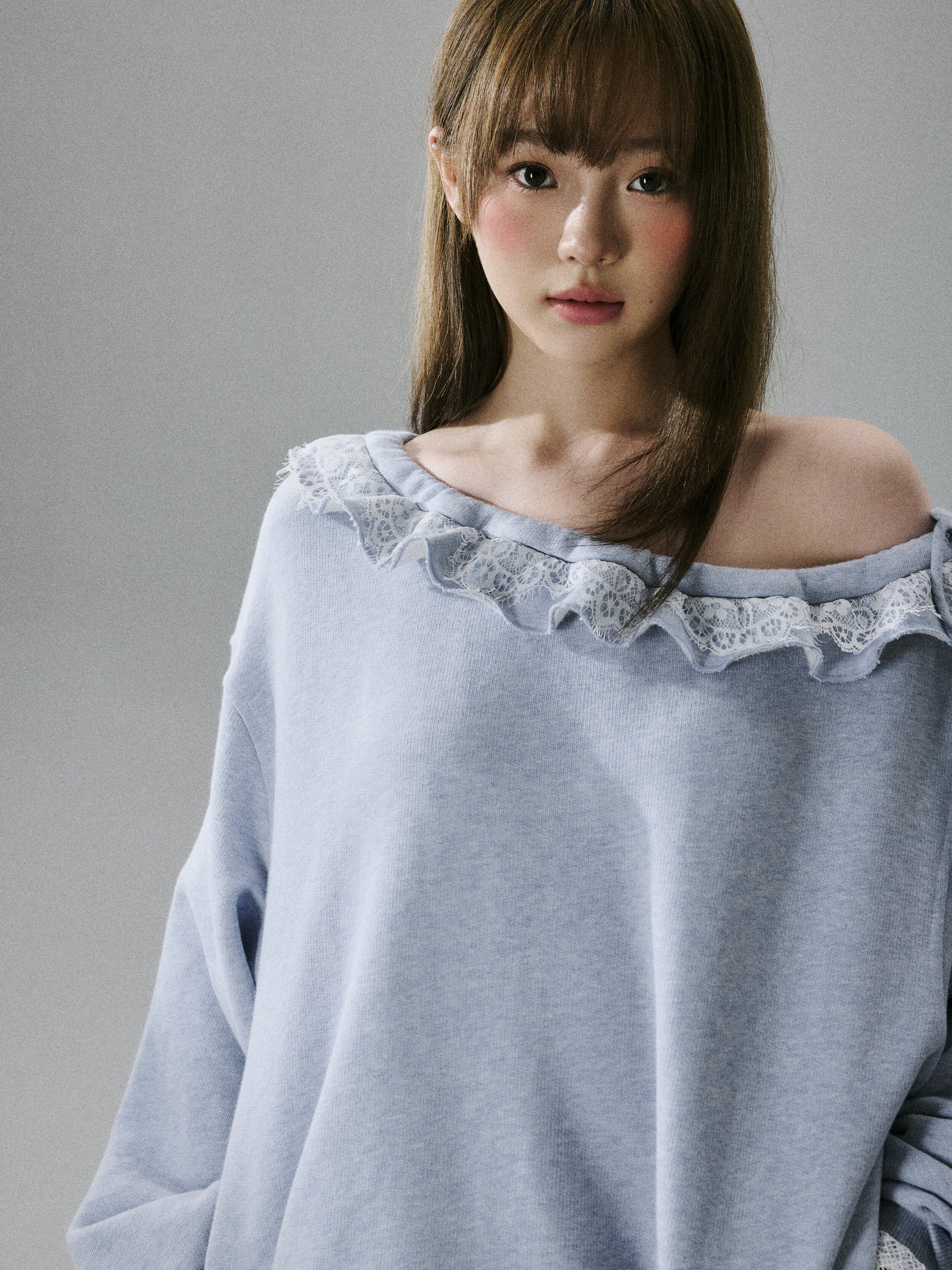 Off-Shoulder Lace Trim Sweatshirt NA8849