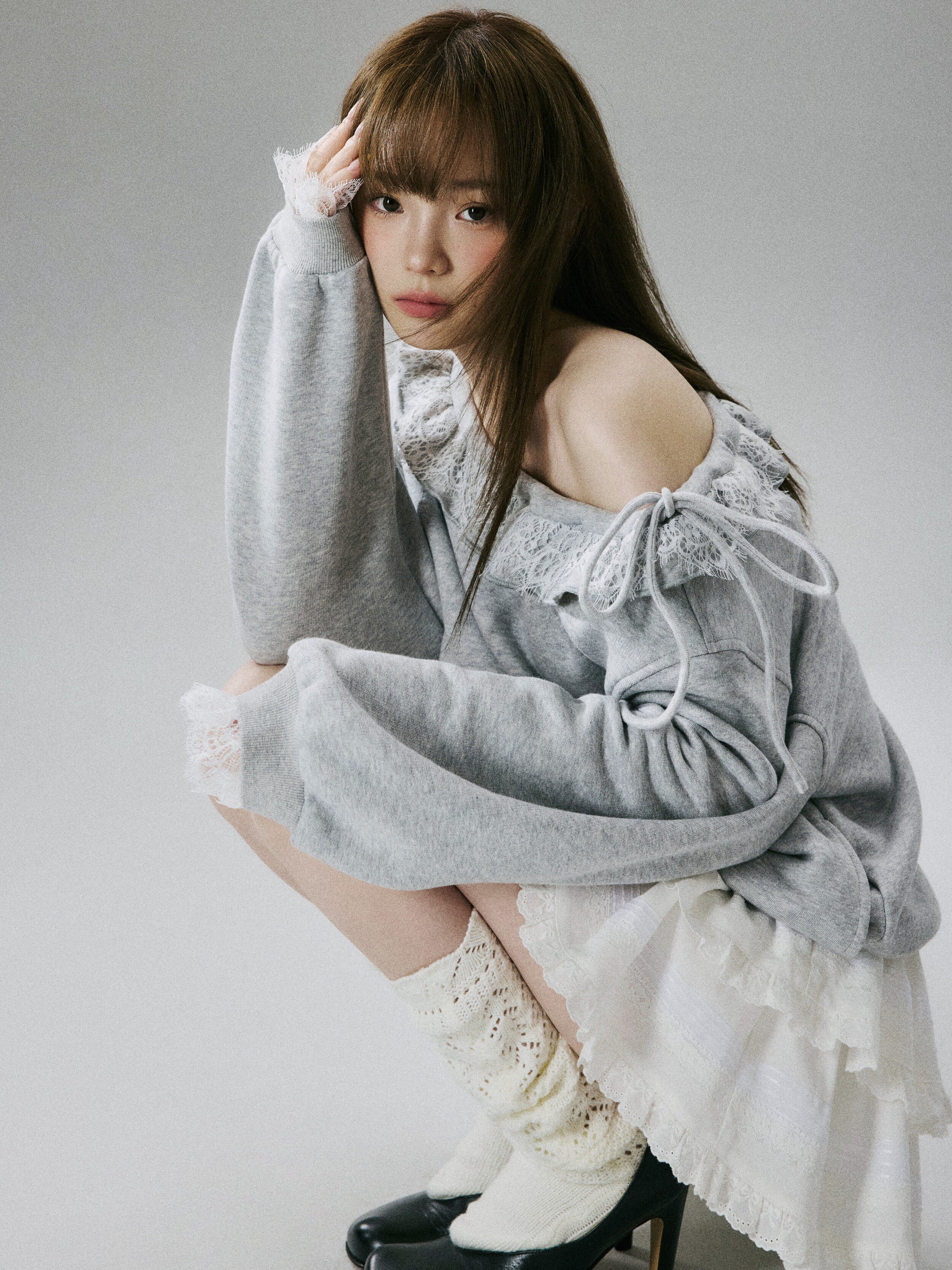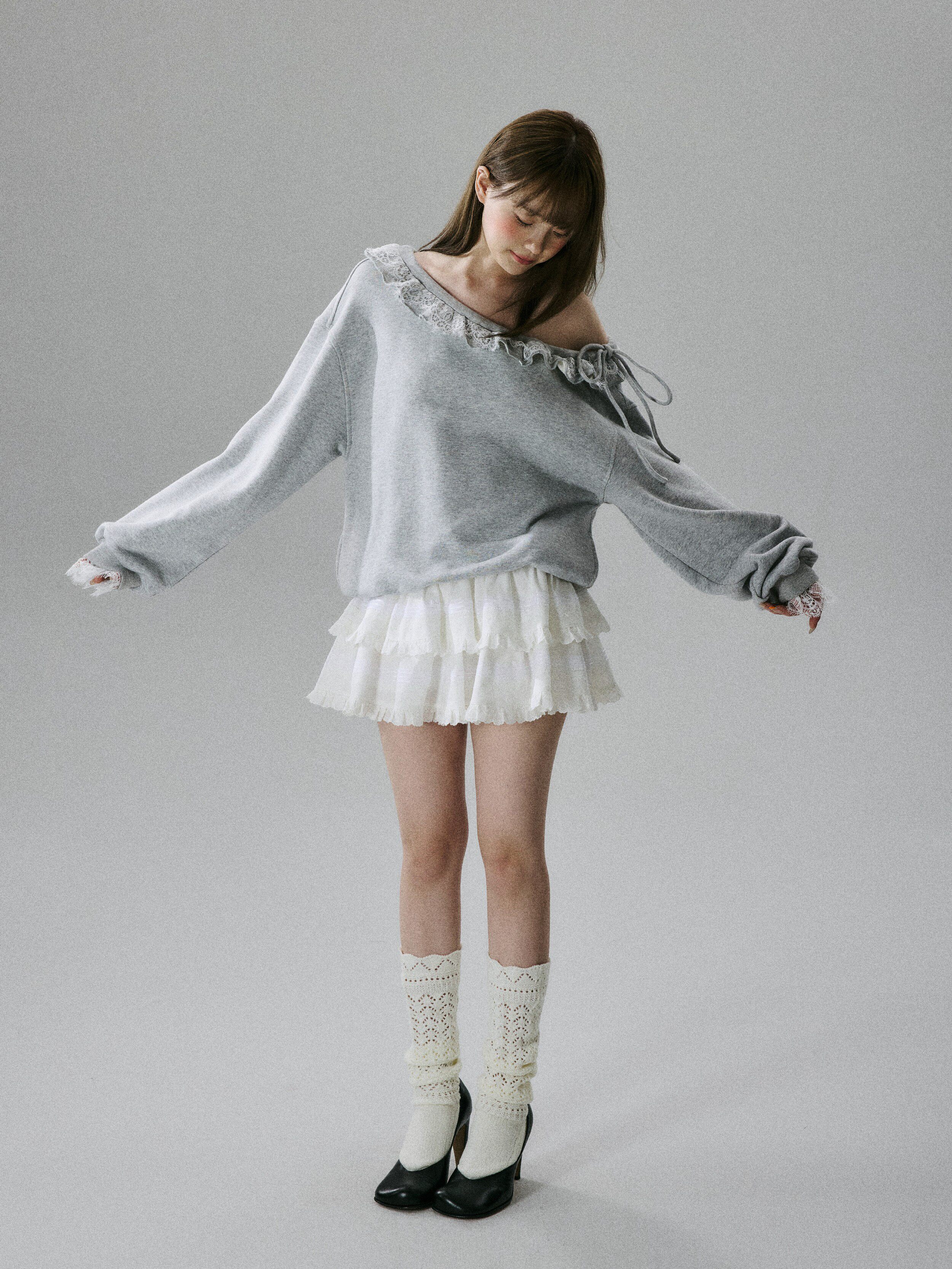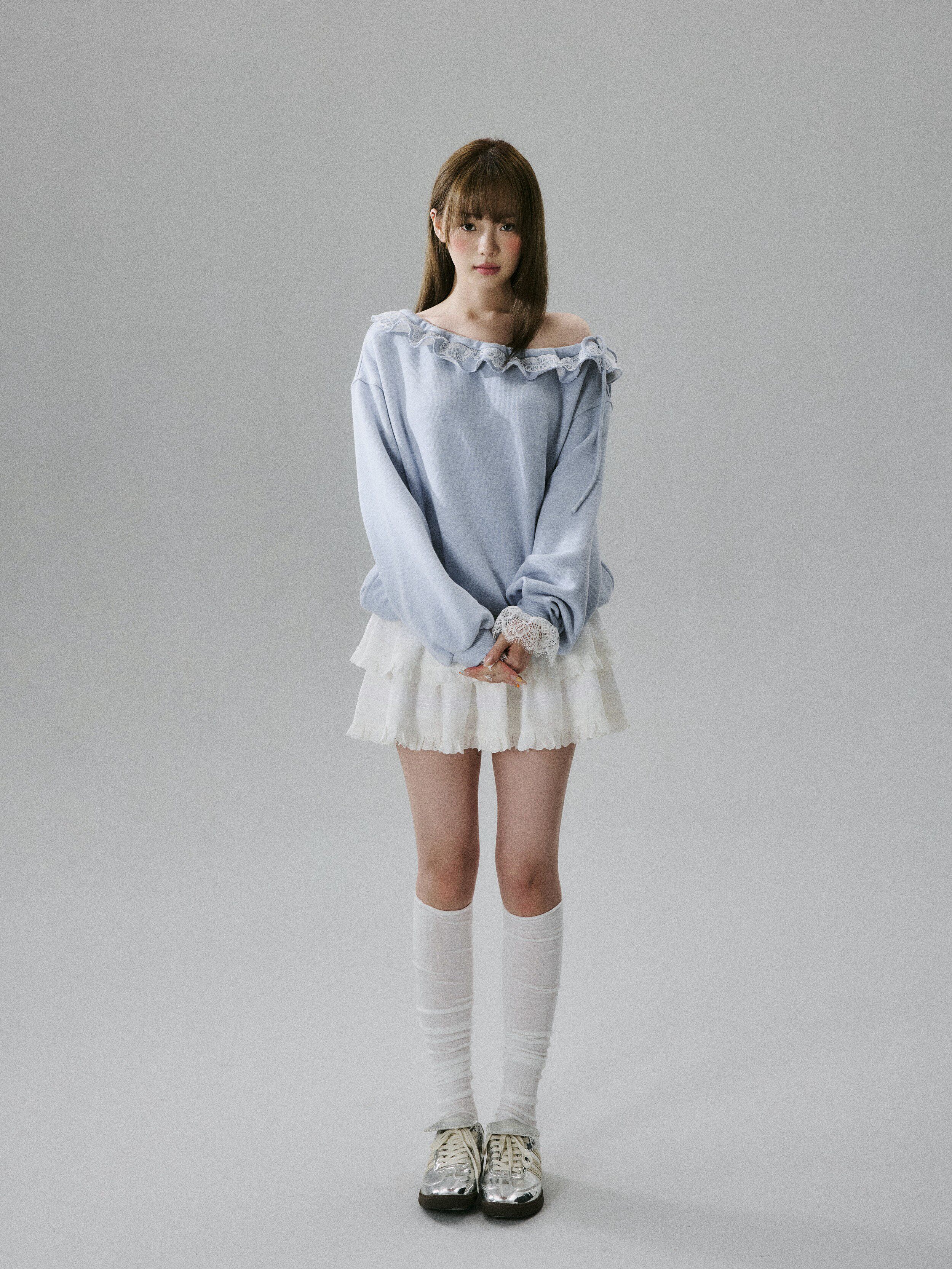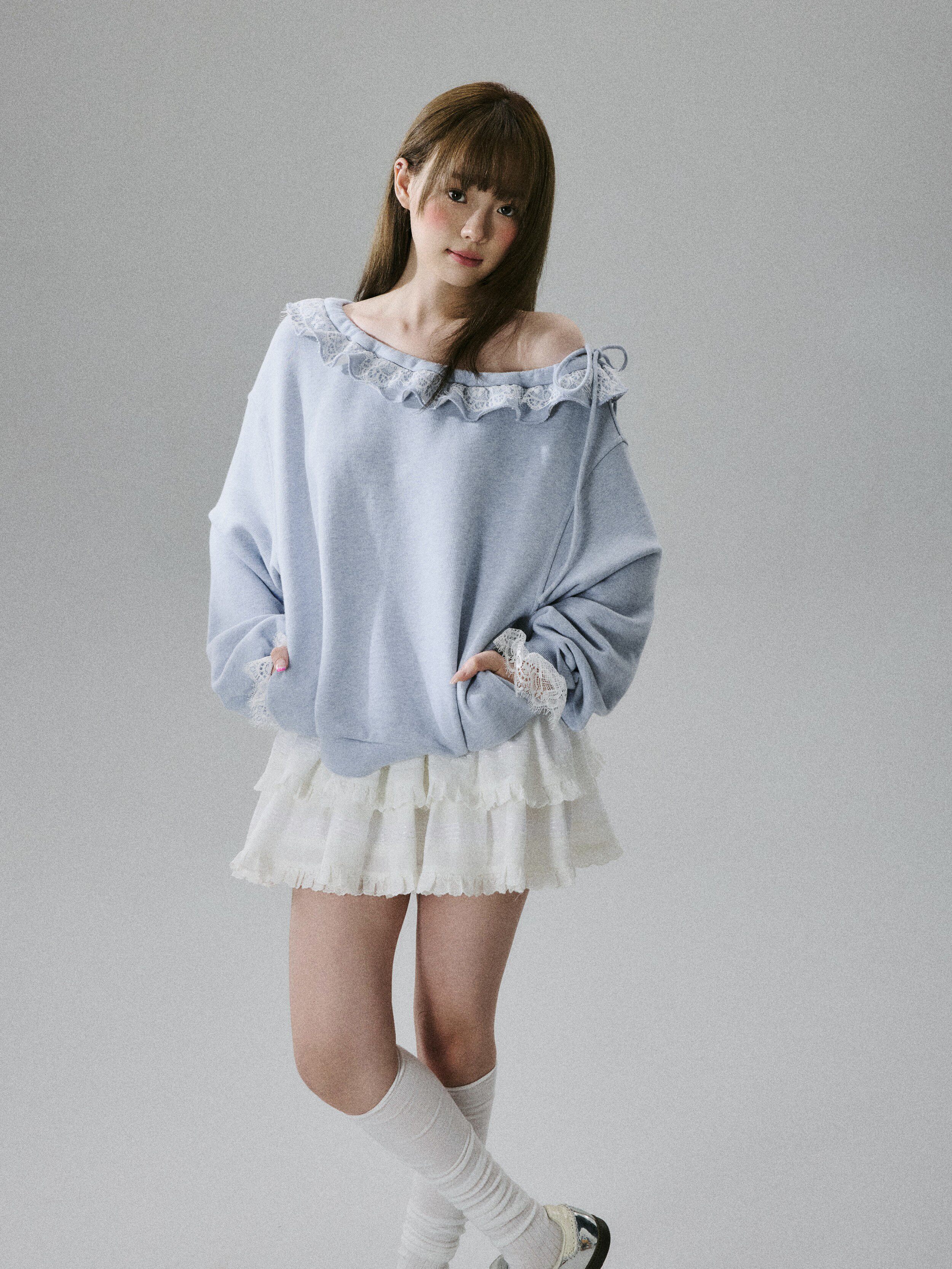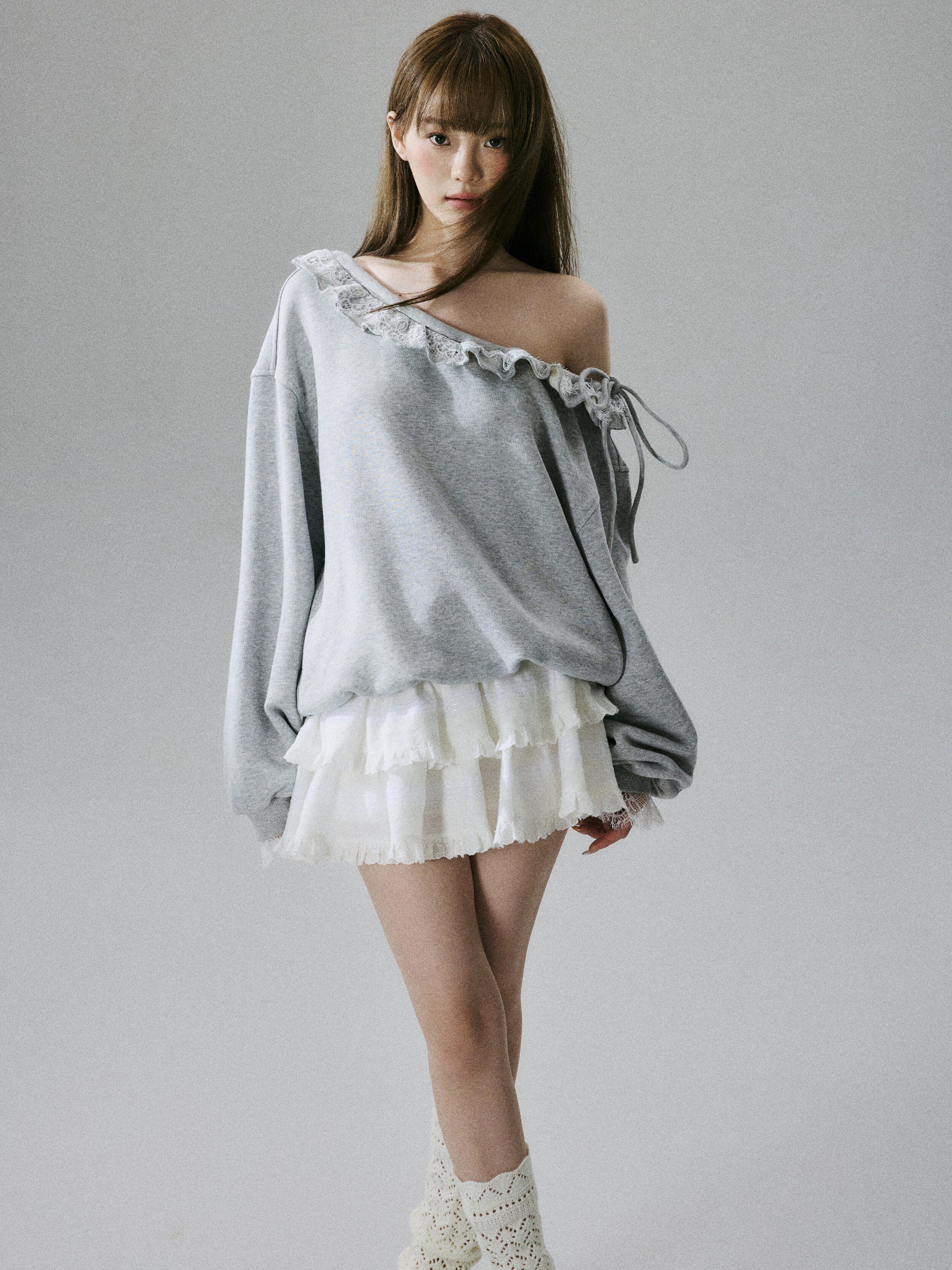 Off-Shoulder Lace Trim Sweatshirt NA8849