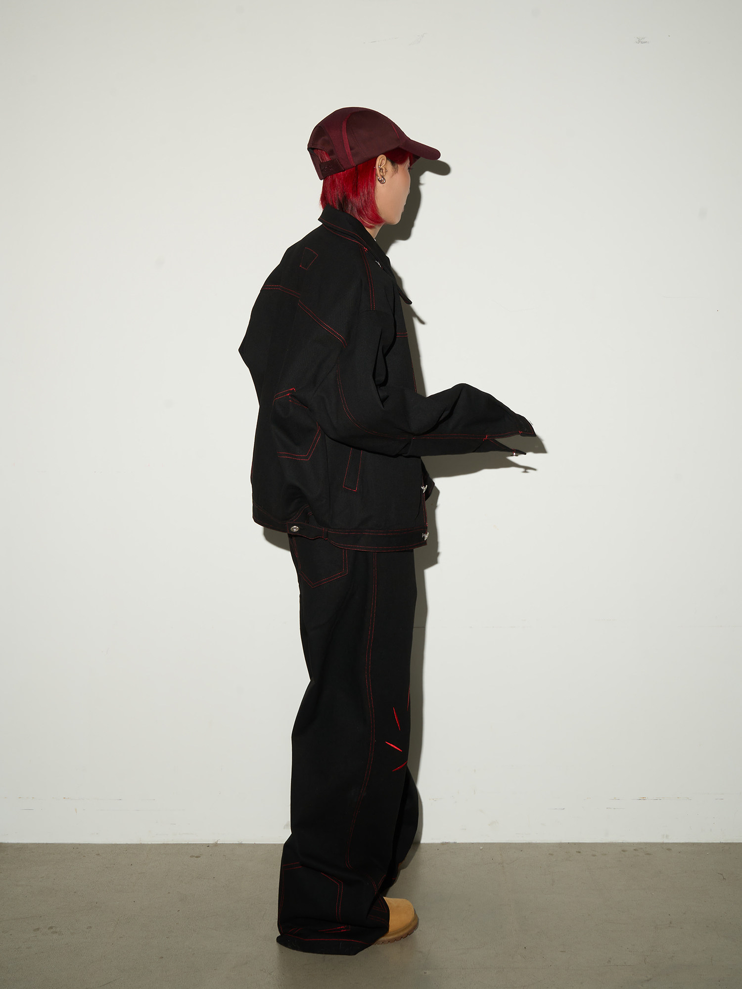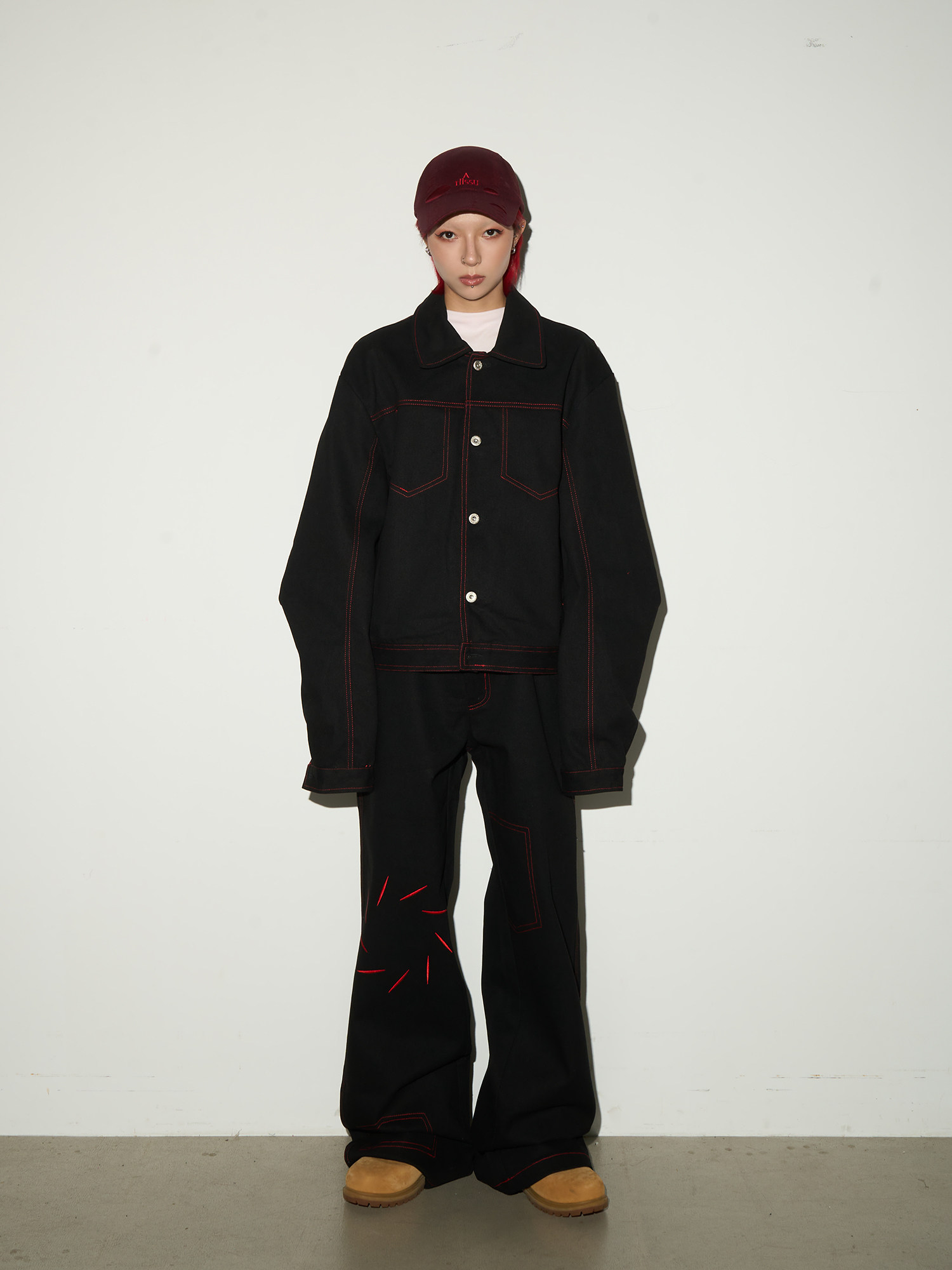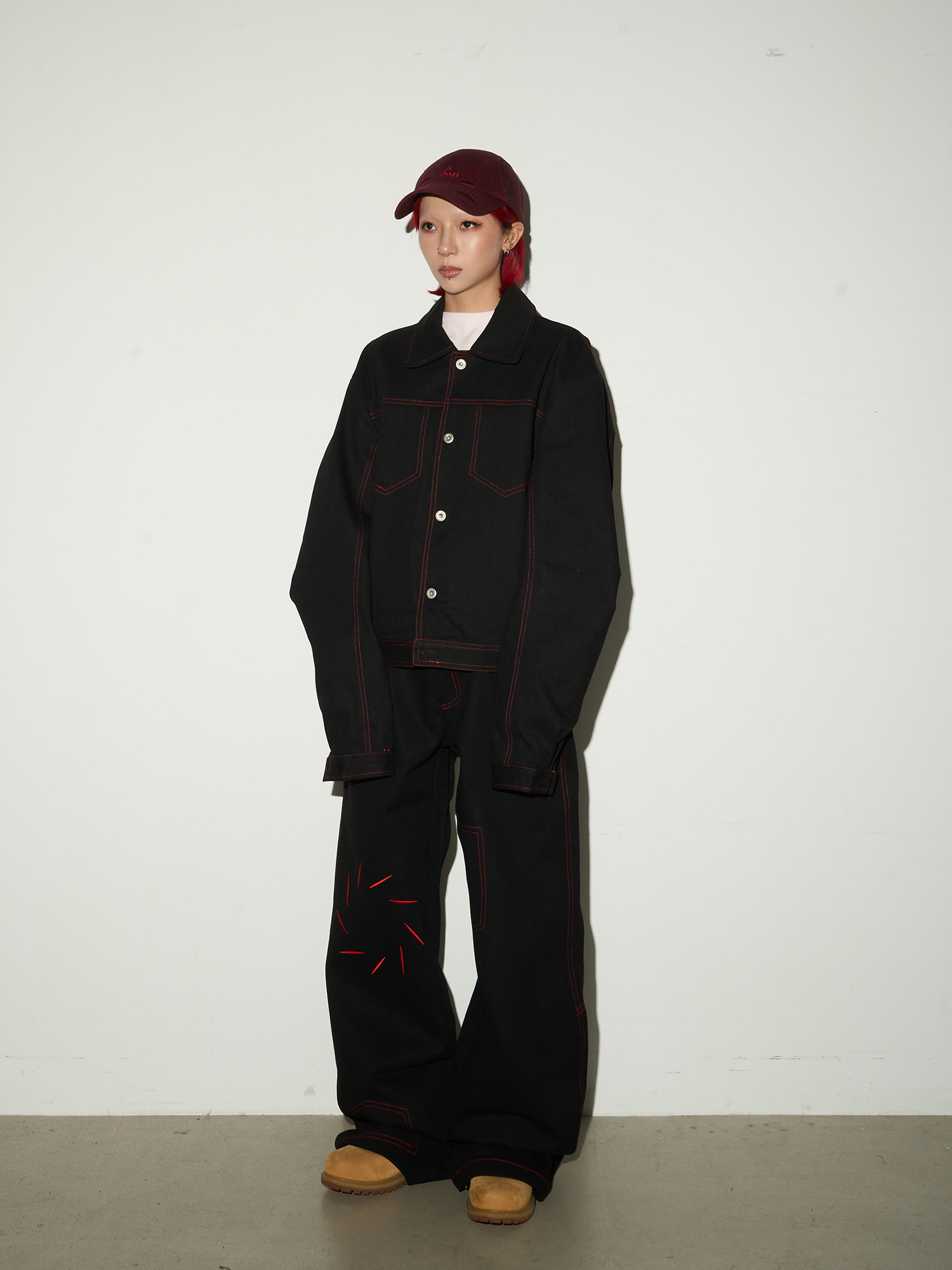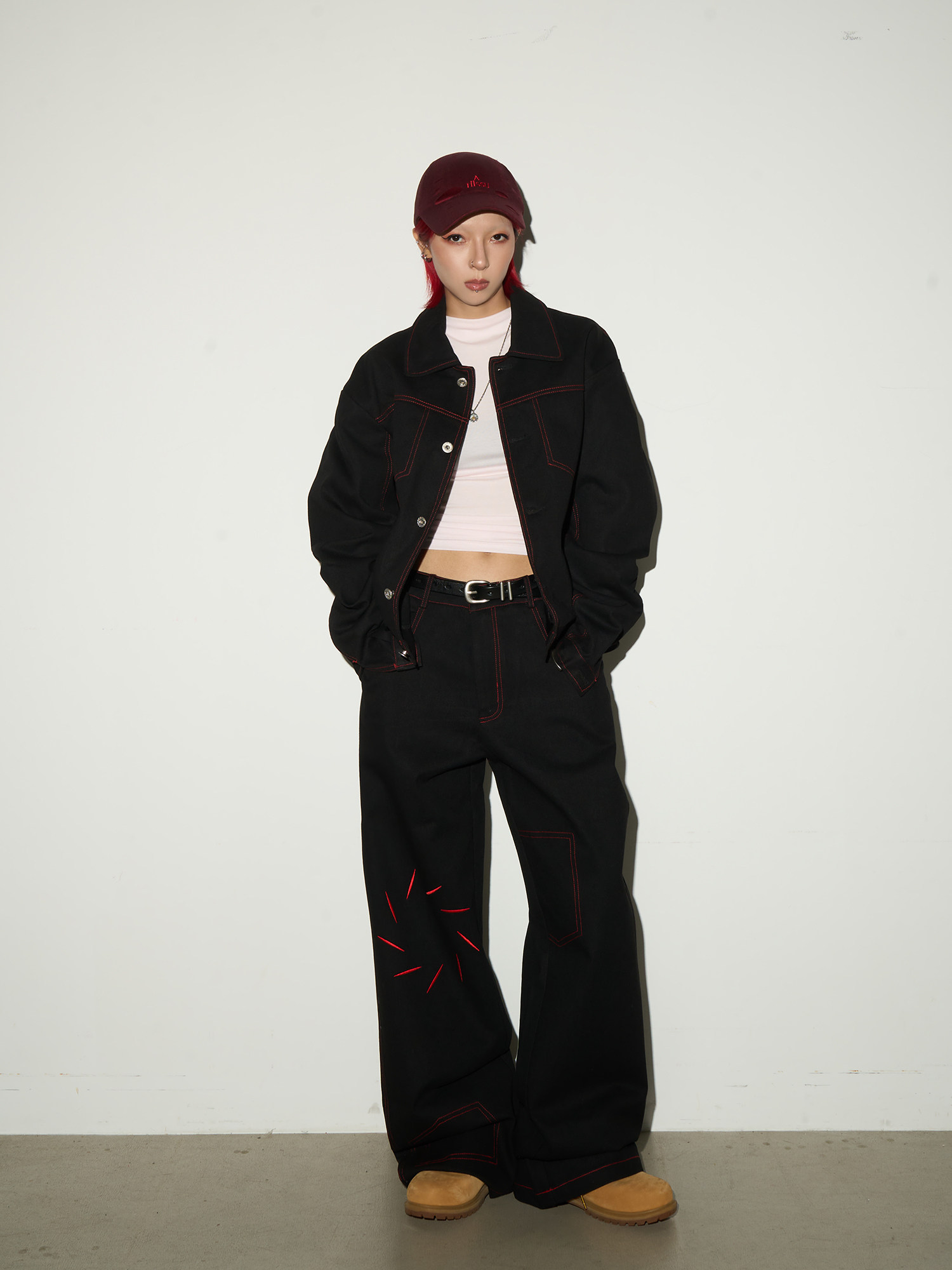 Contrast Stitch Denim Jacket & Wide Leg Denim Jeans Setup NA9034