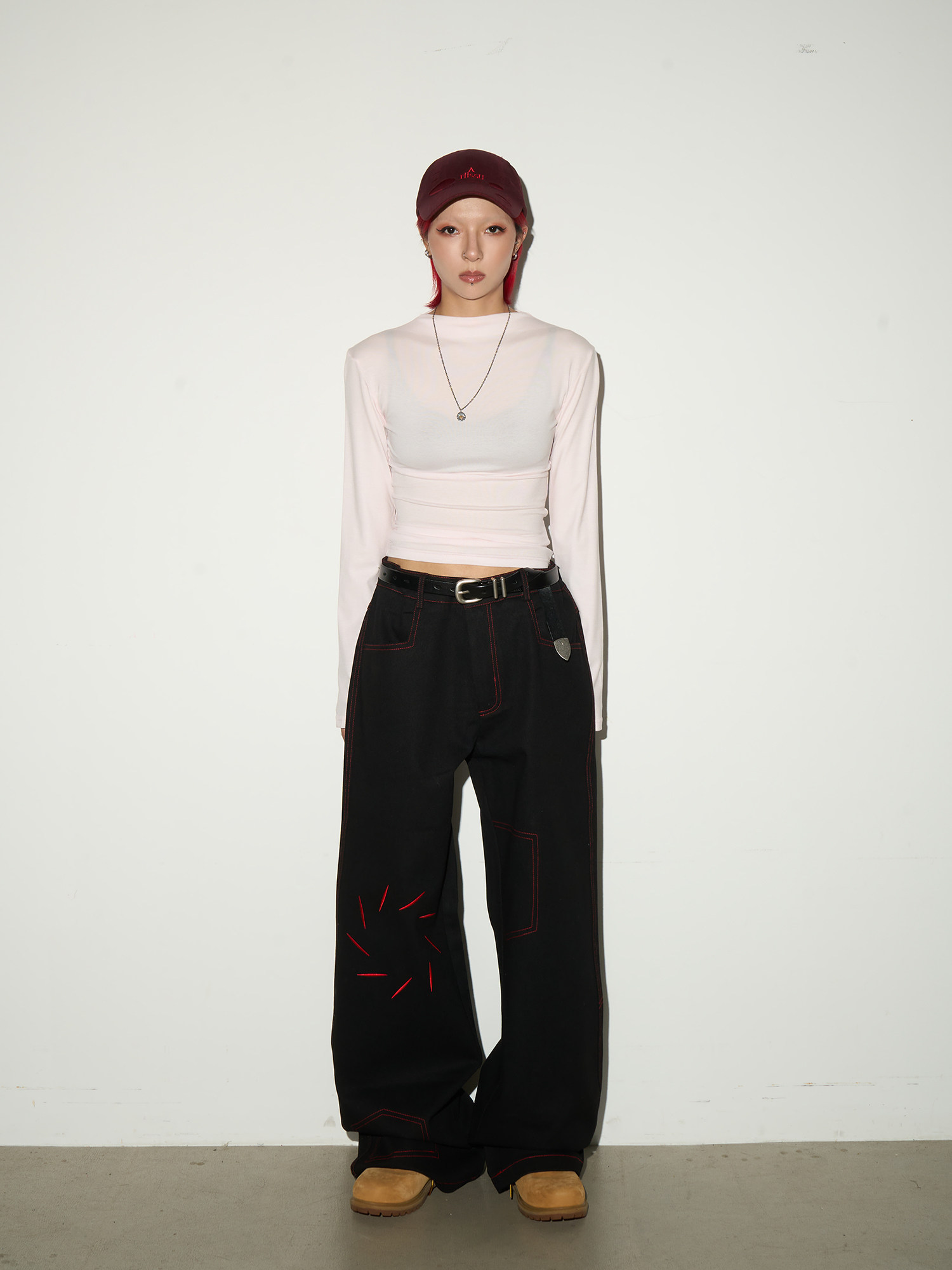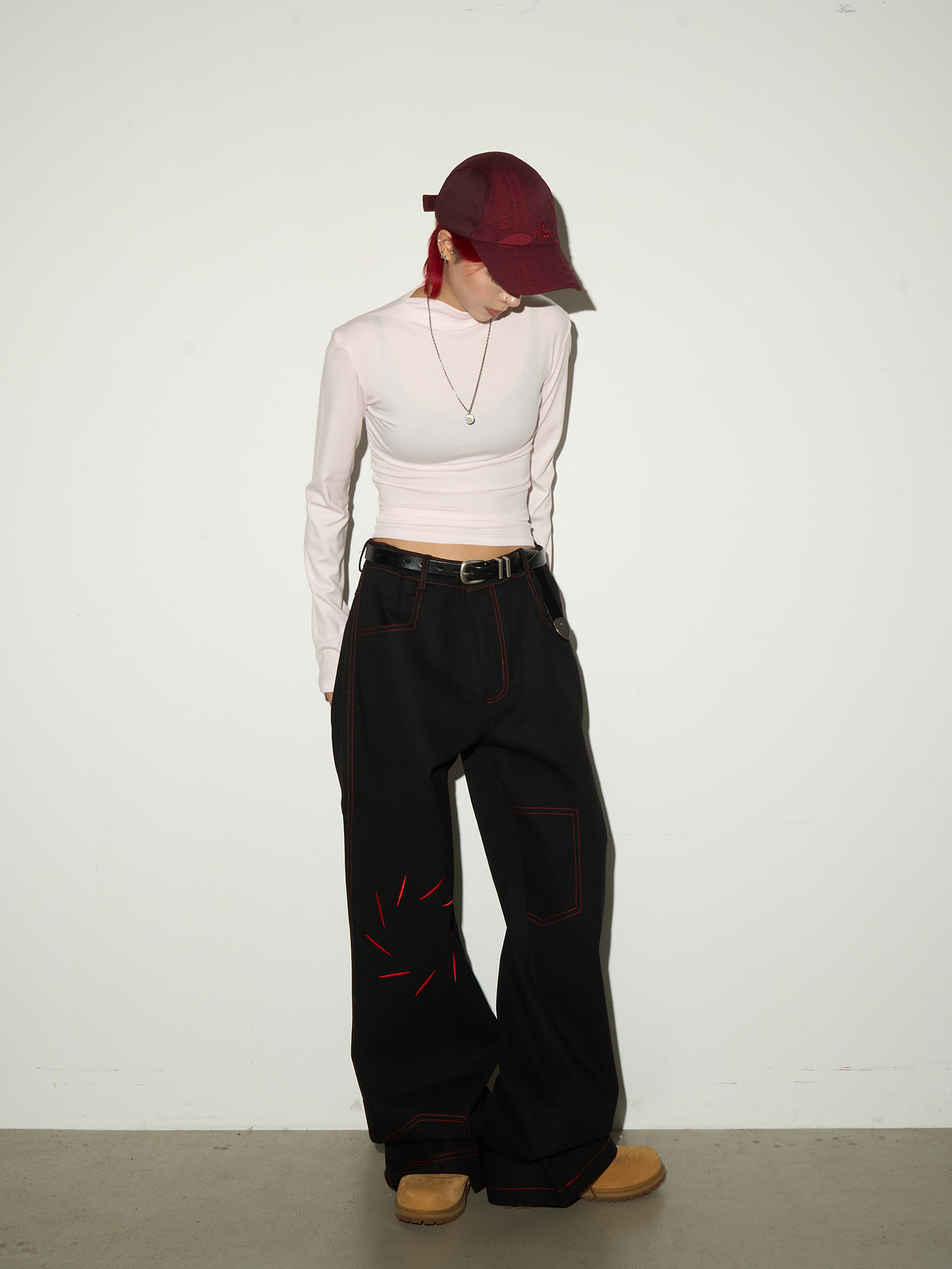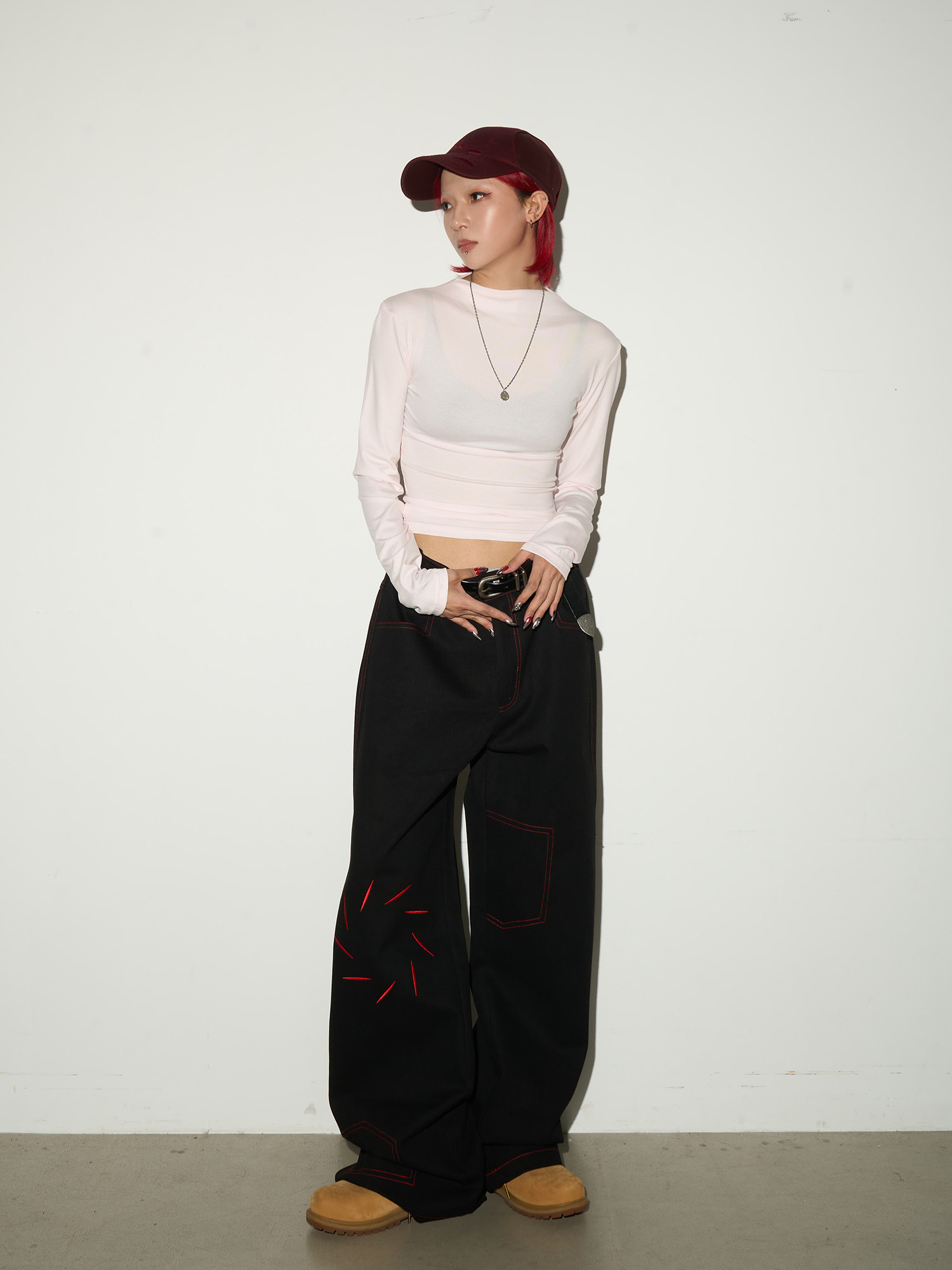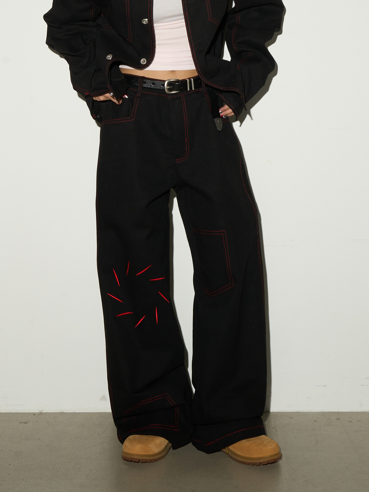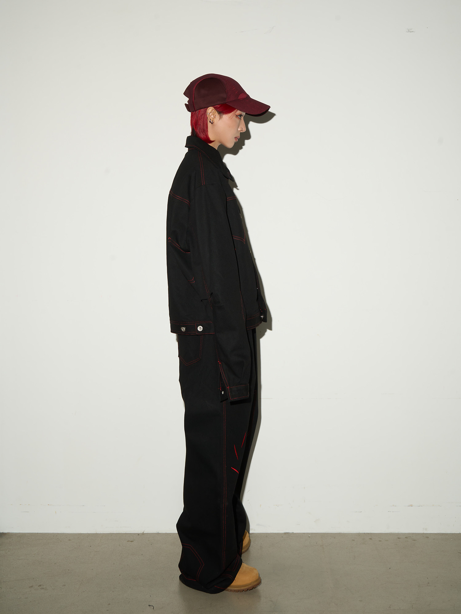 Contrast Stitch Denim Jacket & Wide Leg Denim Jeans Setup NA9034