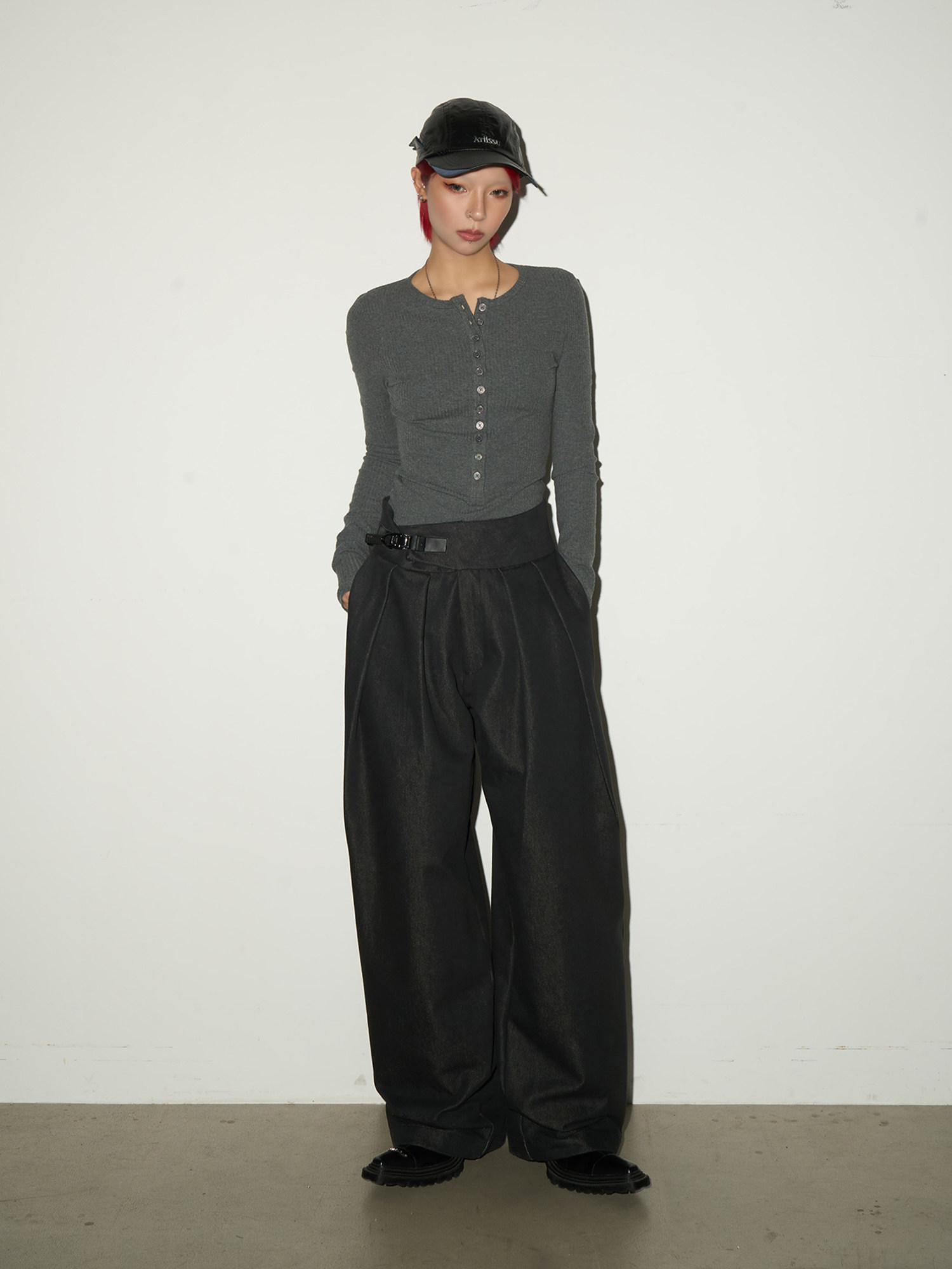 Buckle Design Wide Leg Trousers NA9050