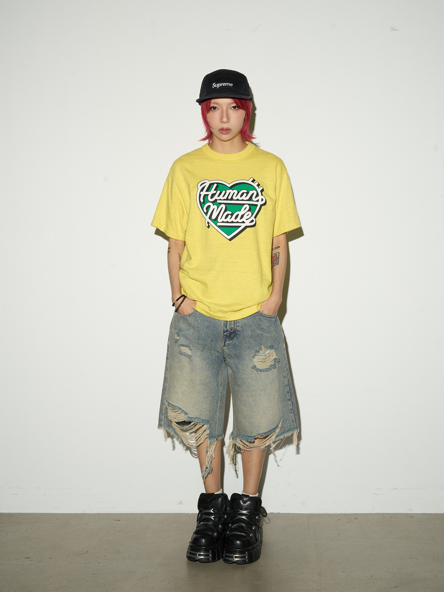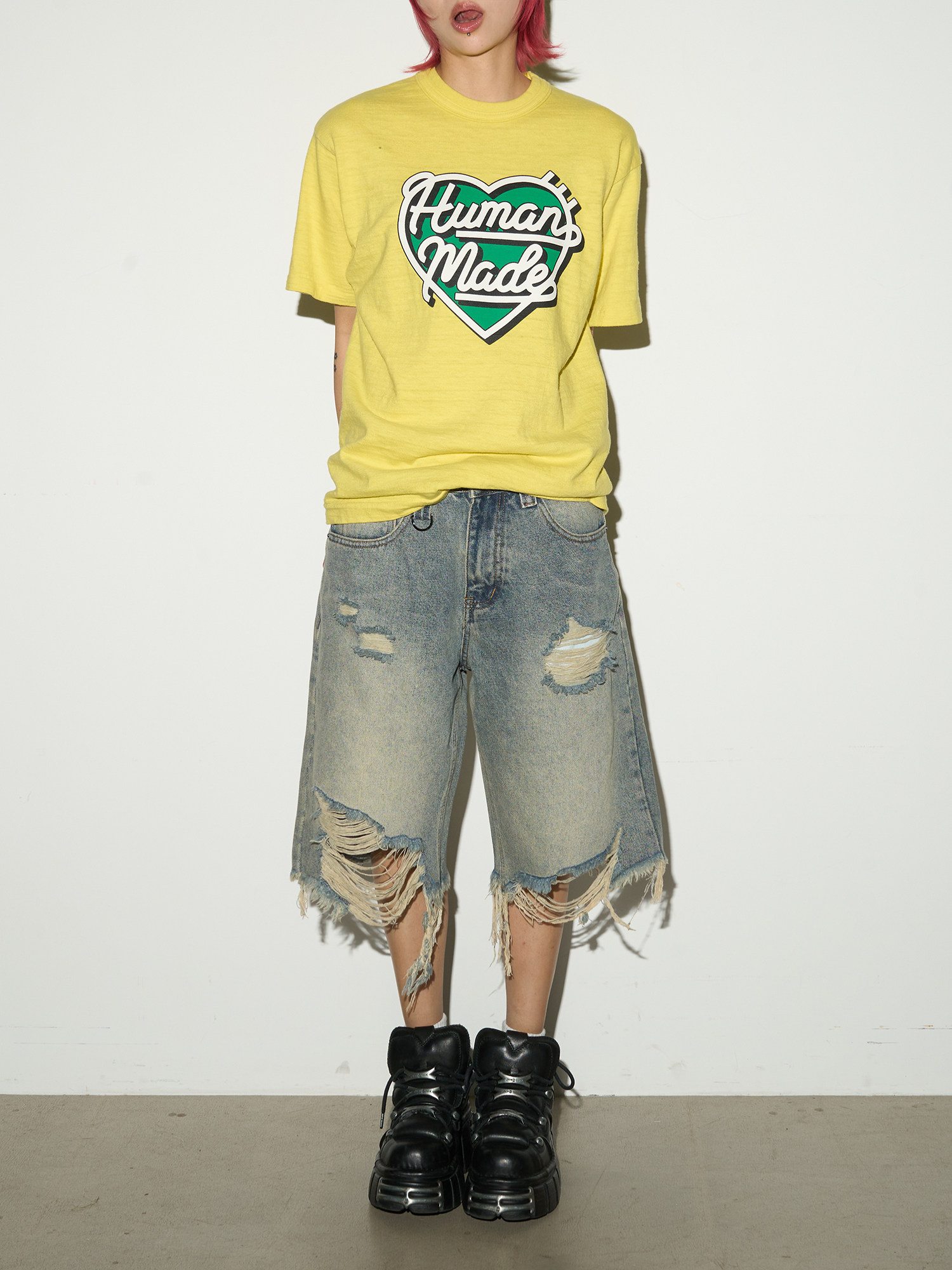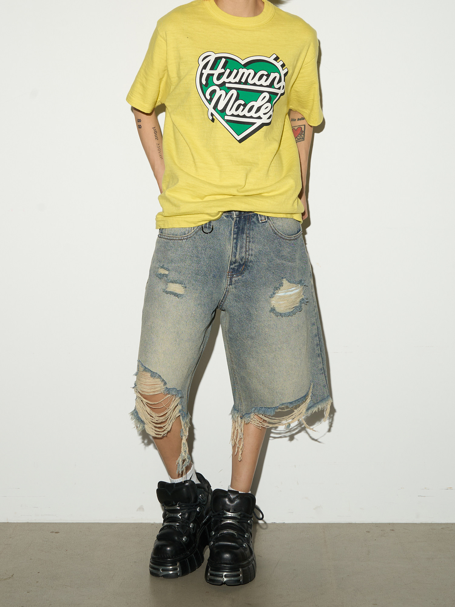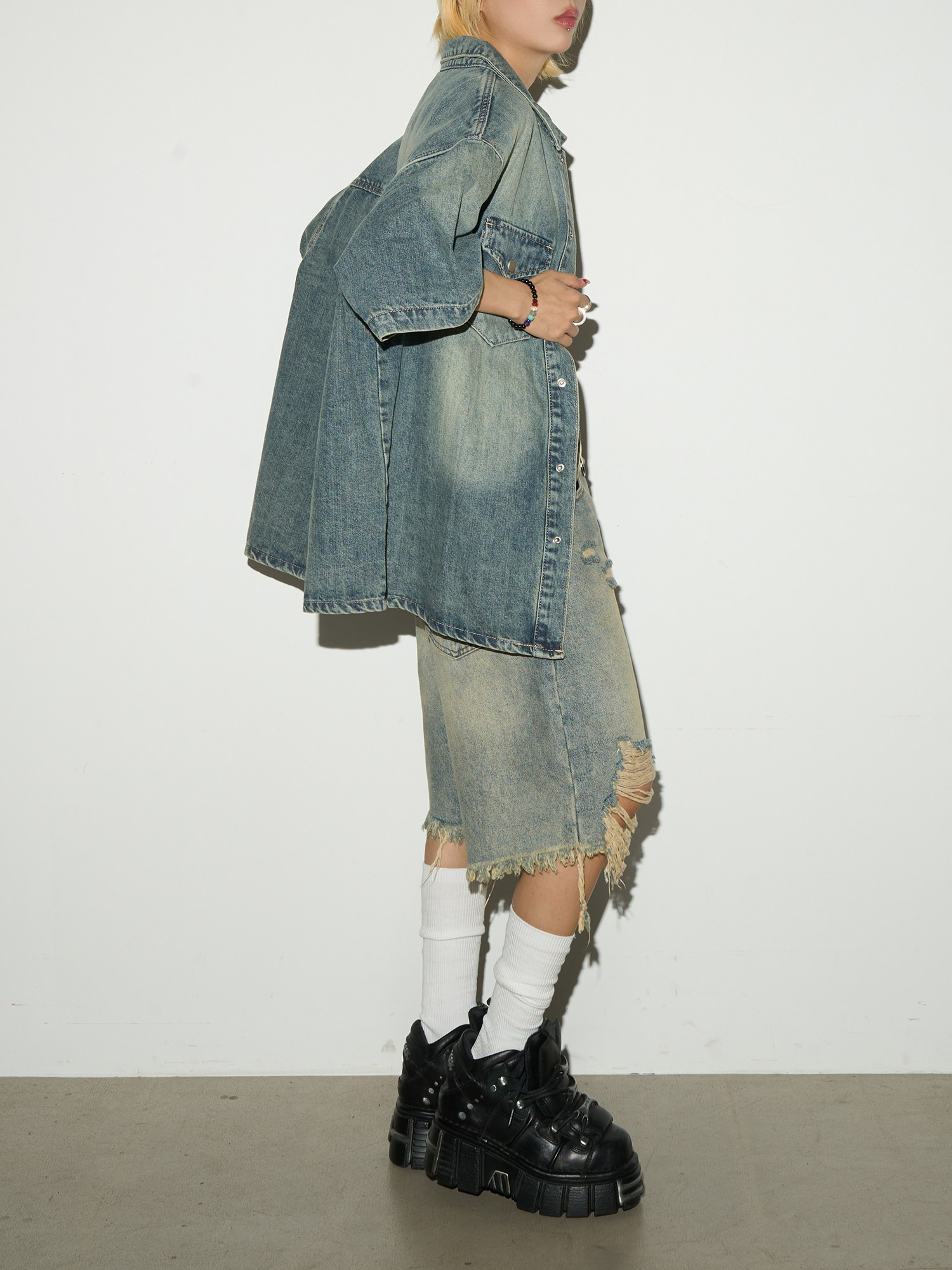 Damage Washed Frayed Hem Half Denim Jeans NA9113