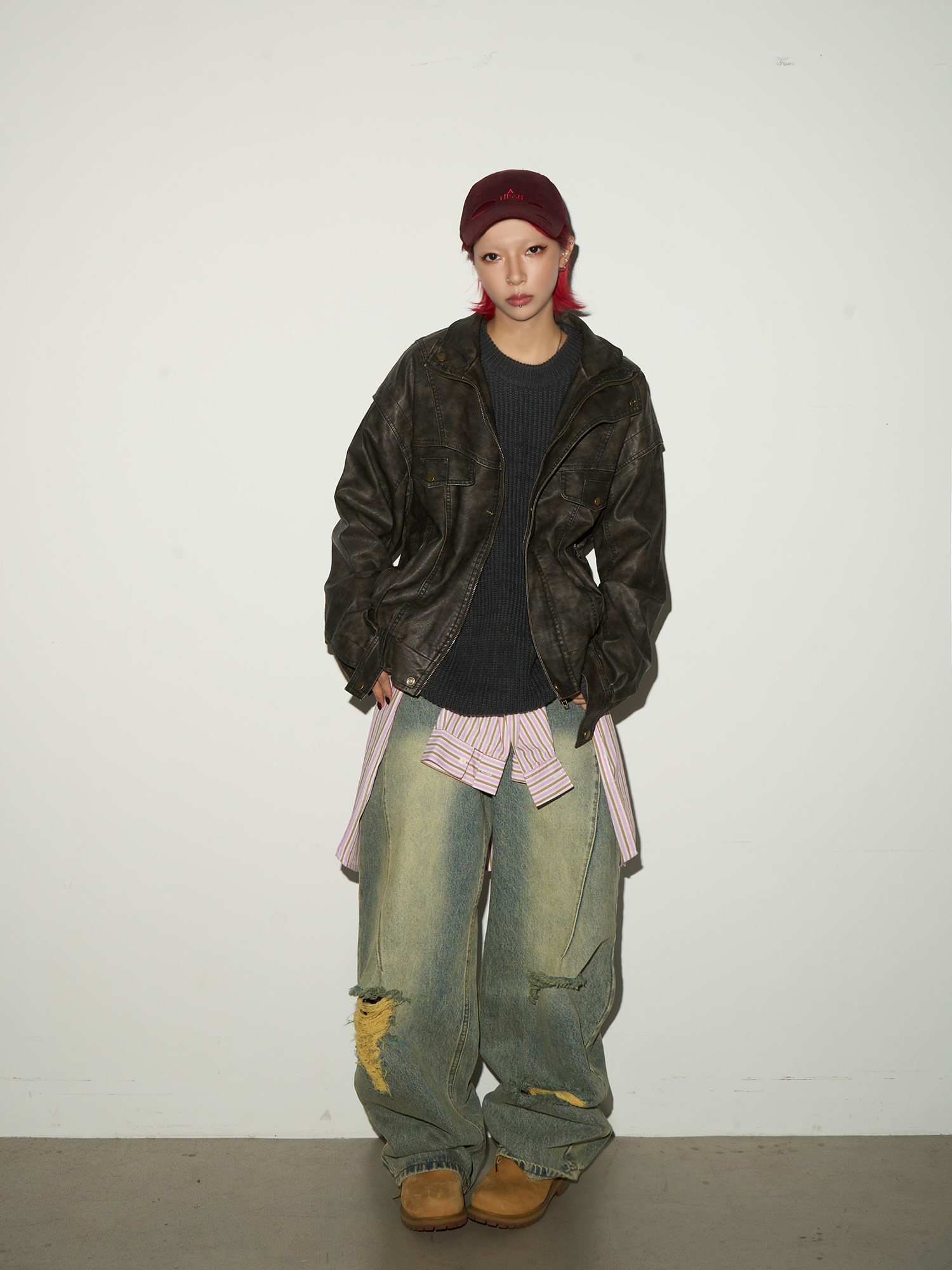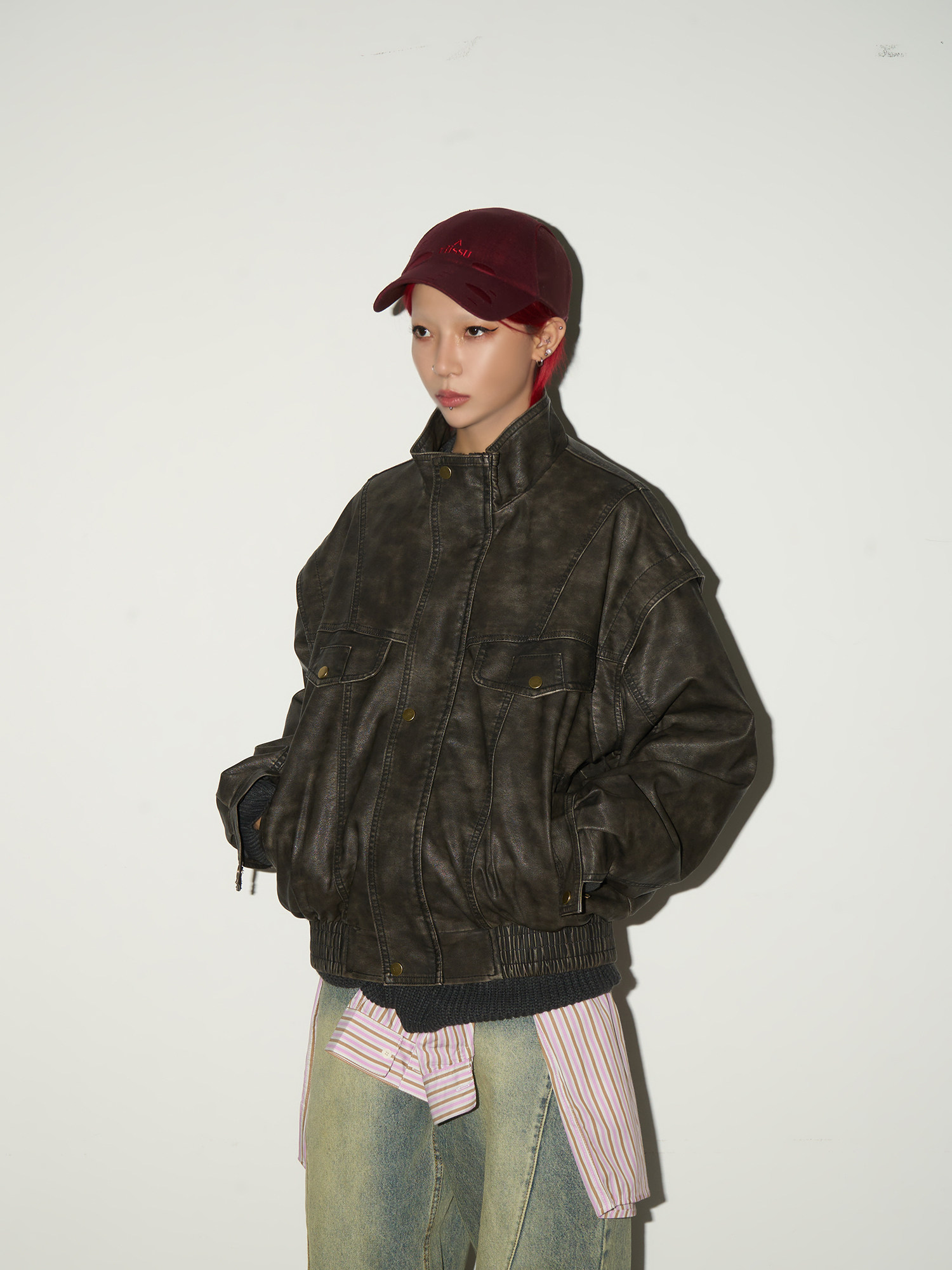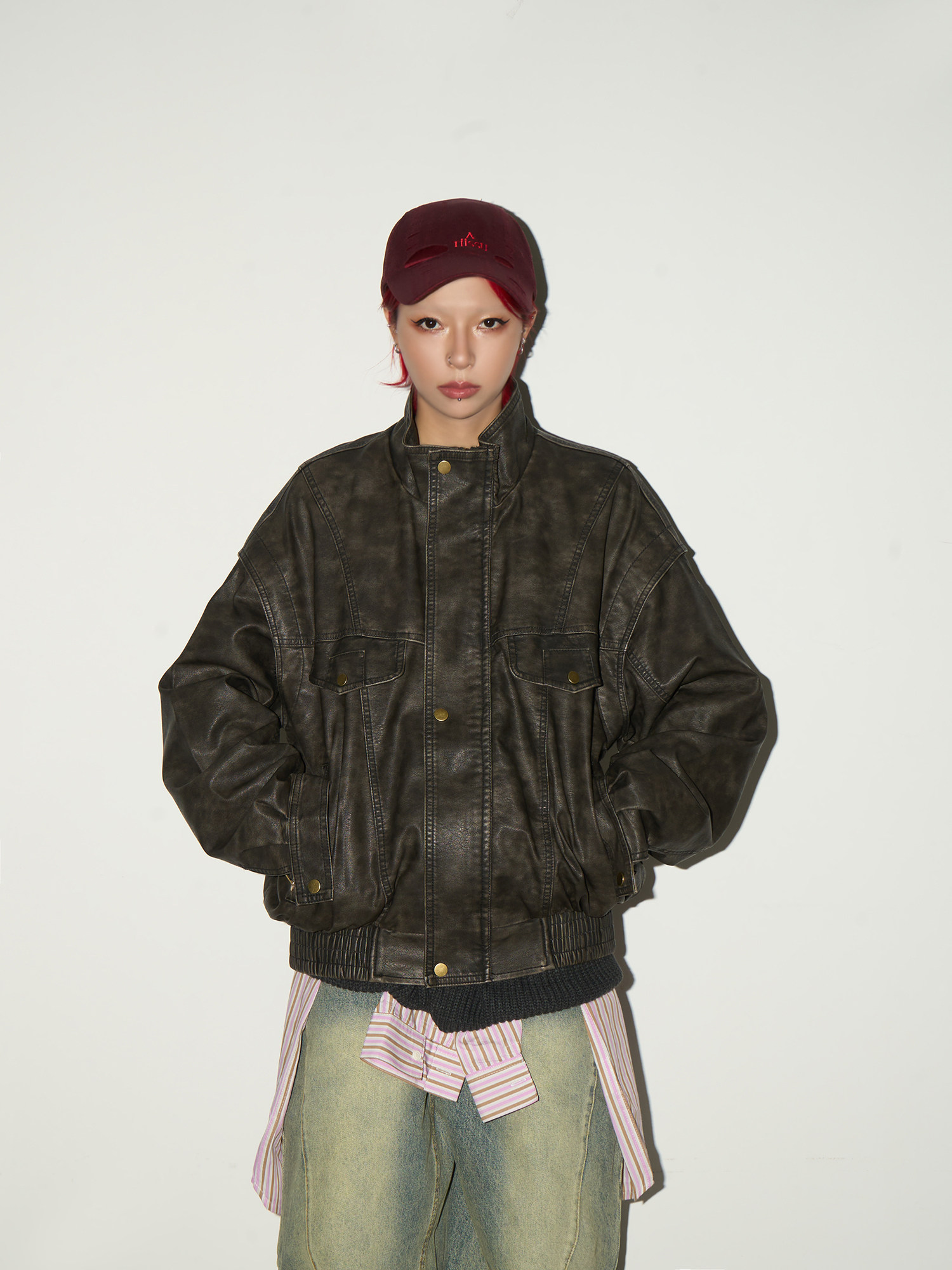 PU Leather Stand Collar Oversize Jacket NA9179