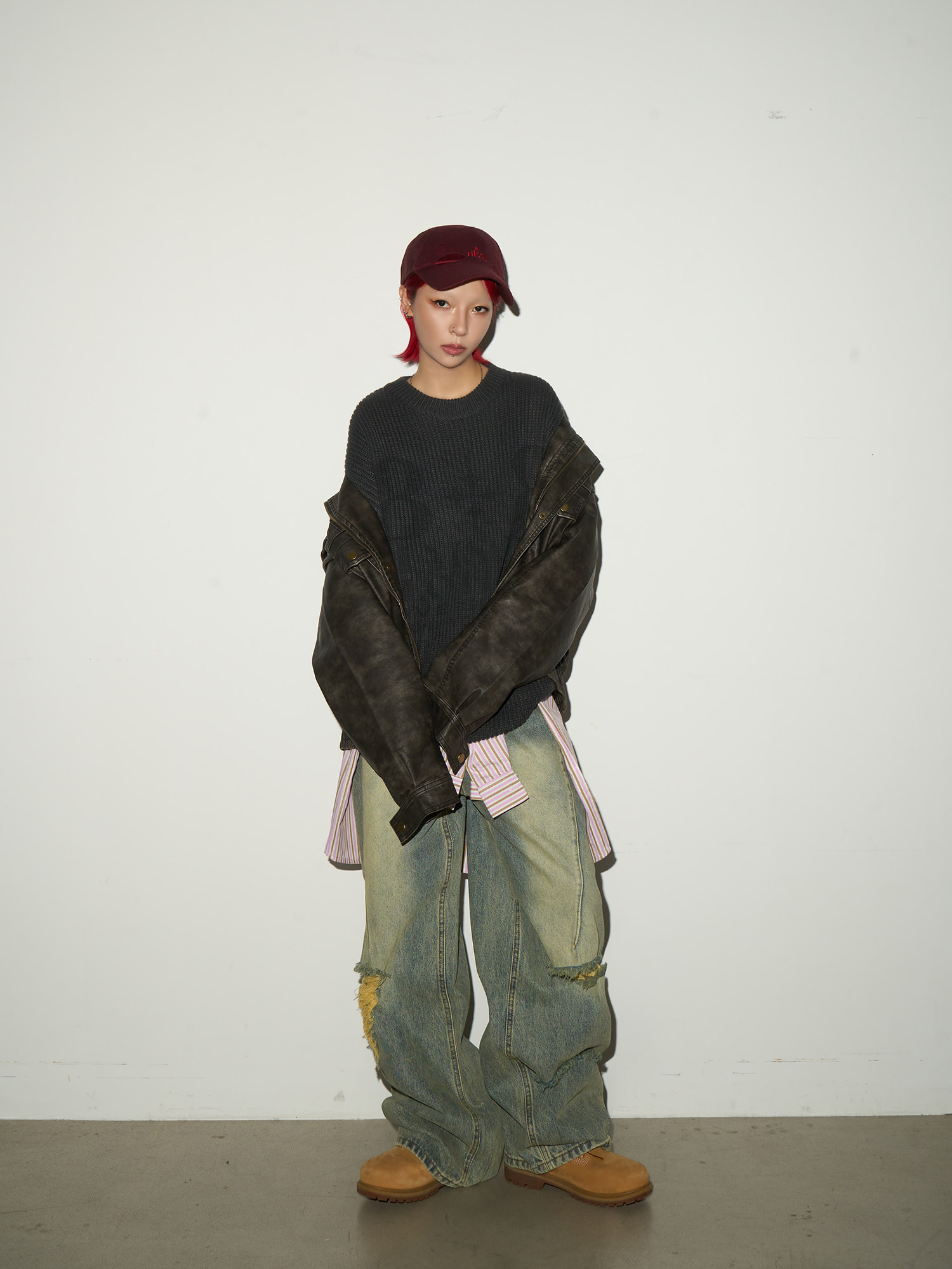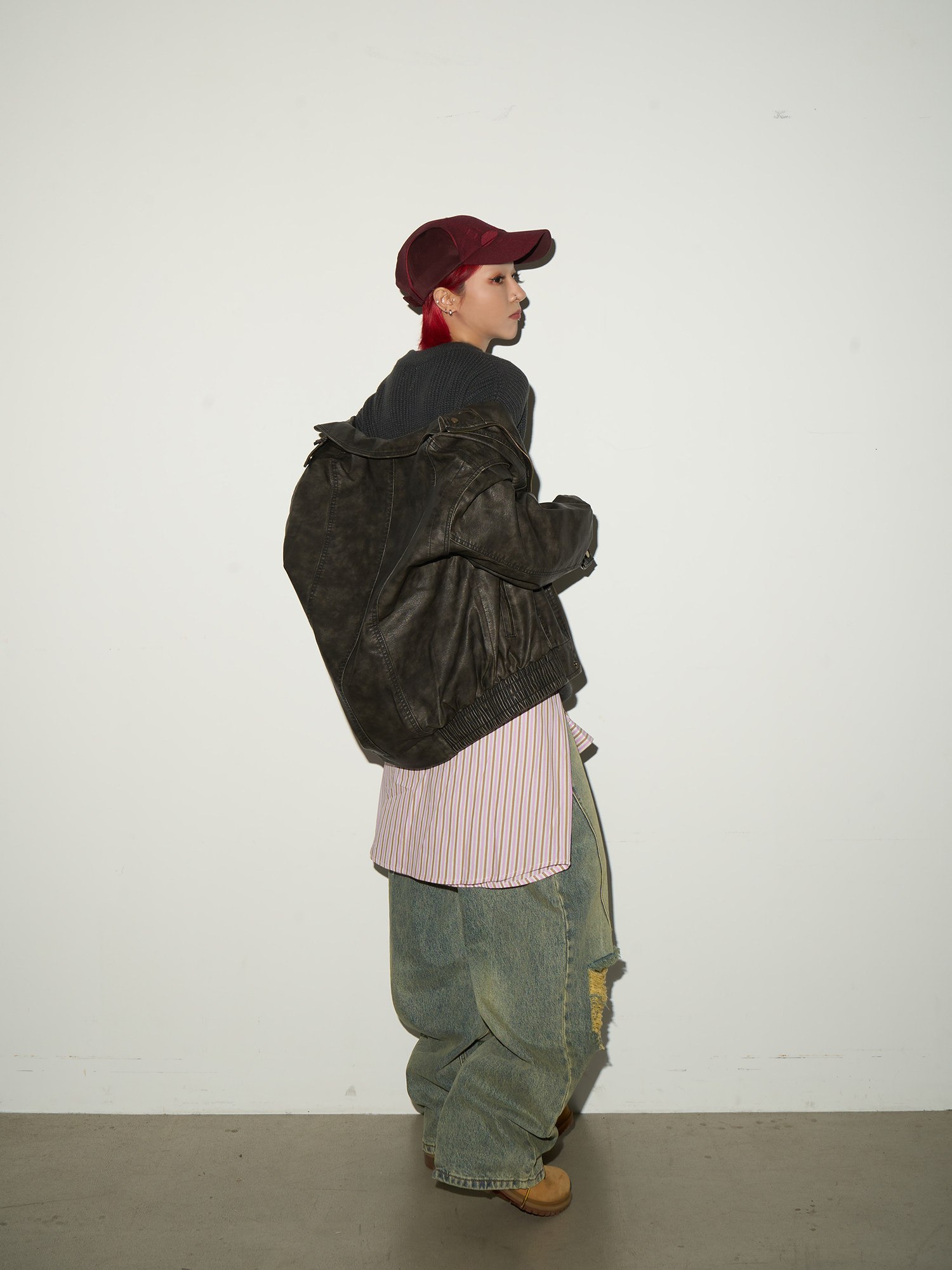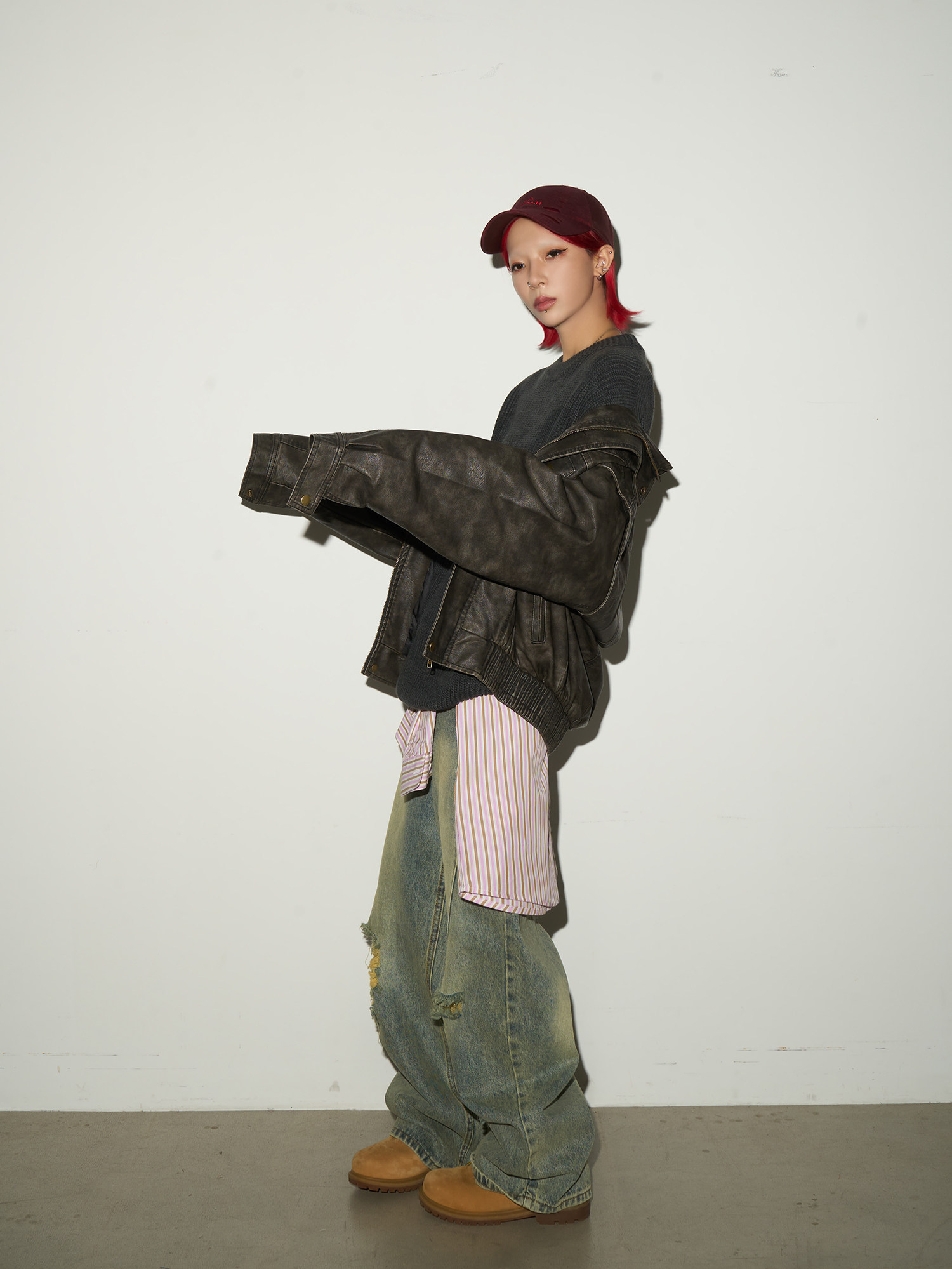 PU Leather Stand Collar Oversize Jacket NA9179