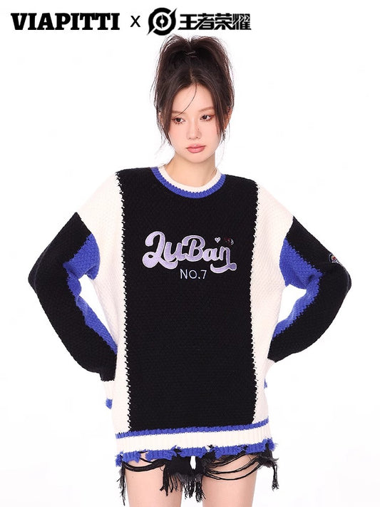 Contrast Color Embroidery Knit Sweater NA4786