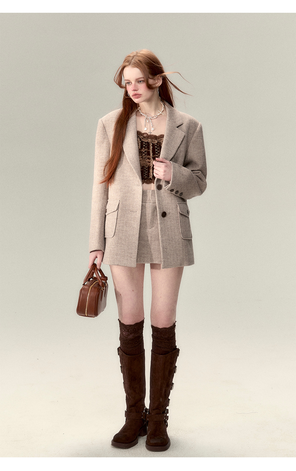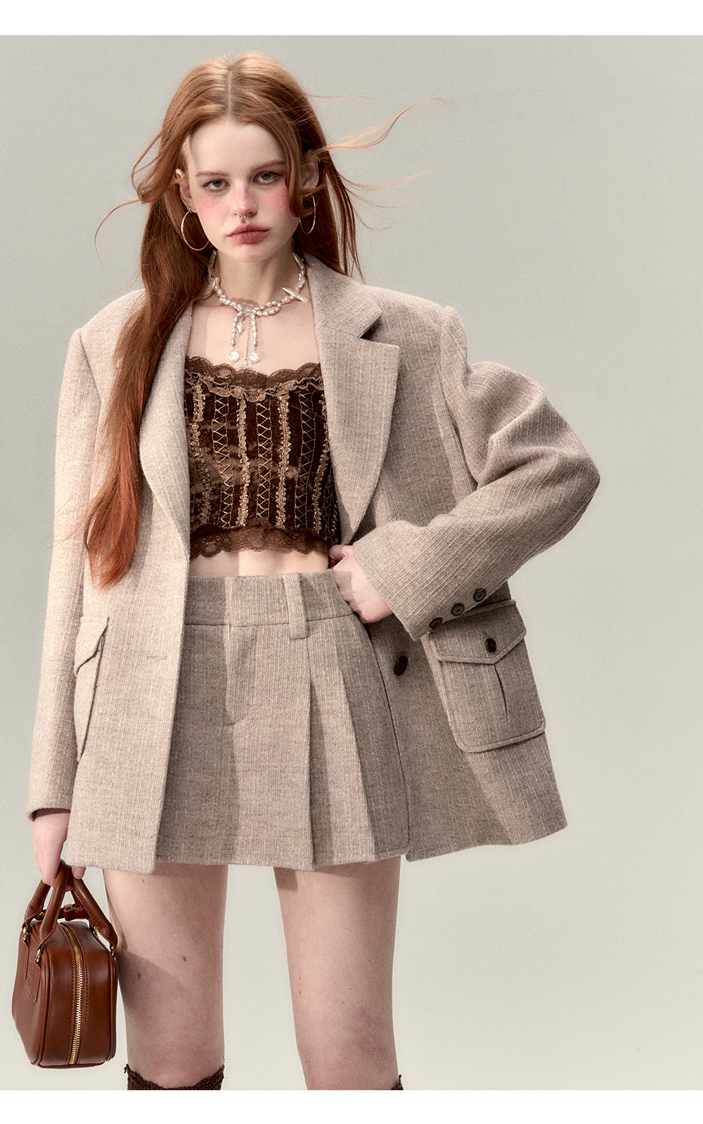 Tailored Jacket & Pleated Short Skirt Setup NA5086