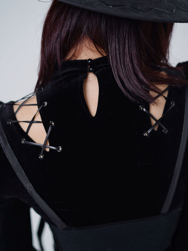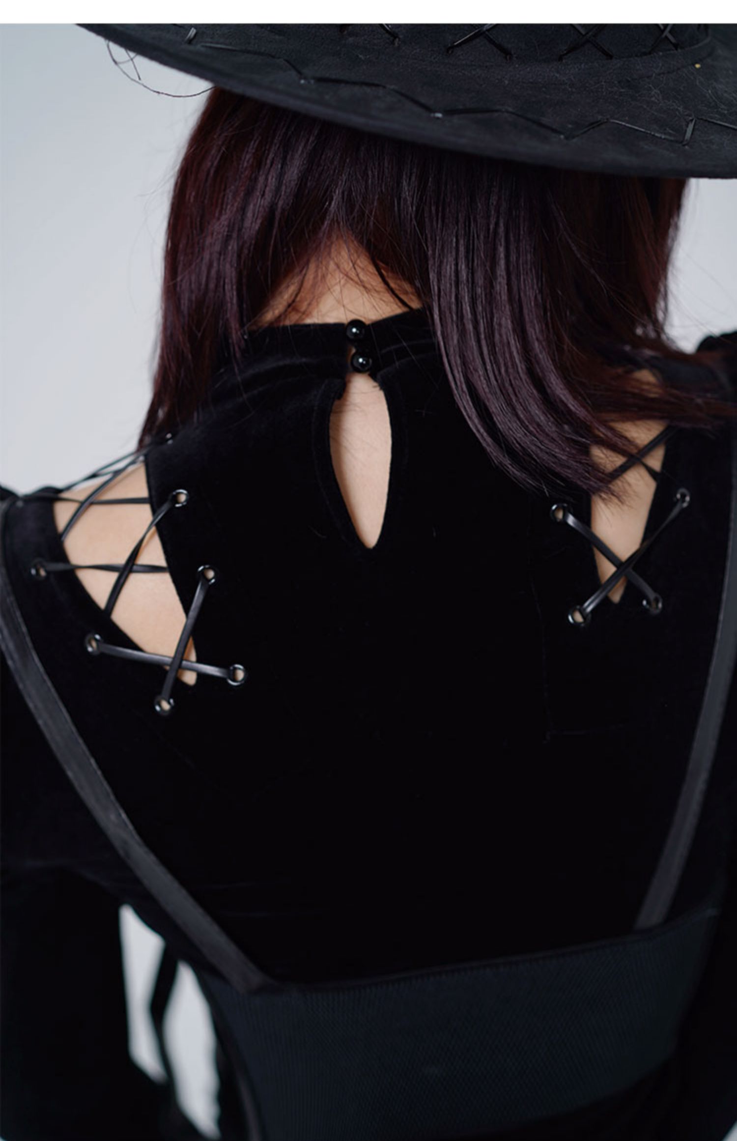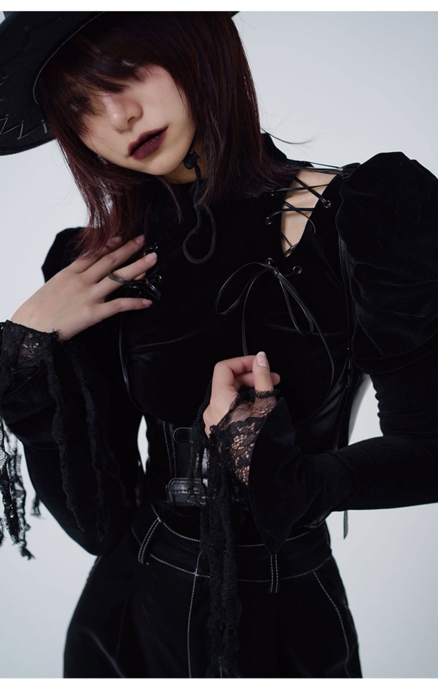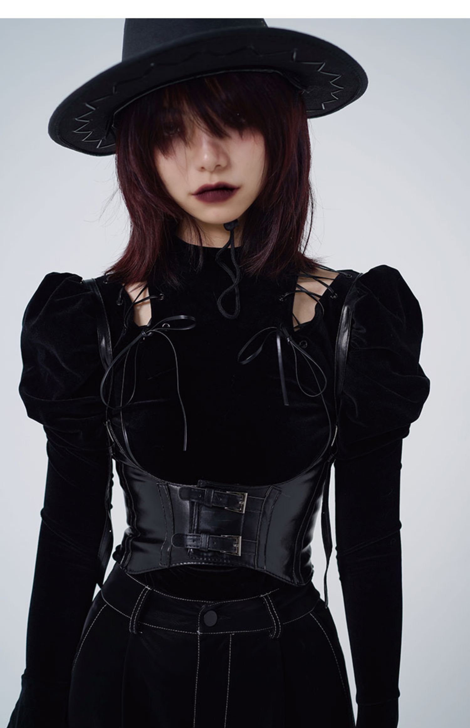 Velvet Tie-Strap Puff Sleeve Knit Sweater NA7746