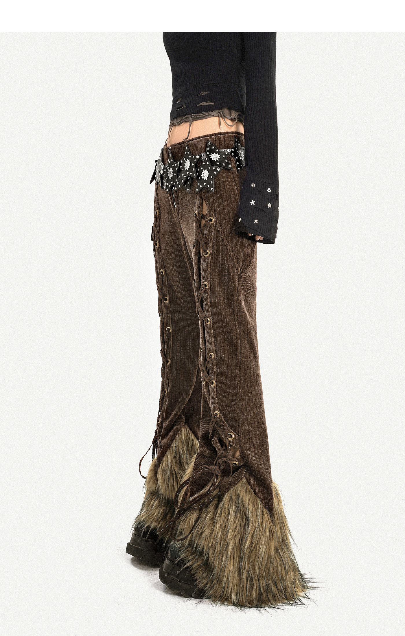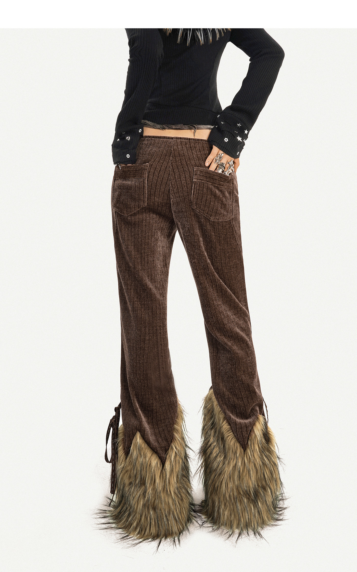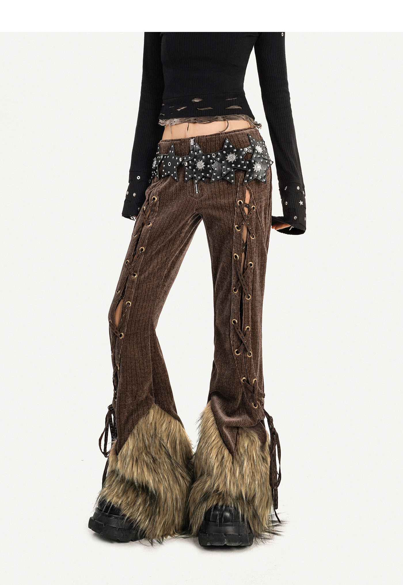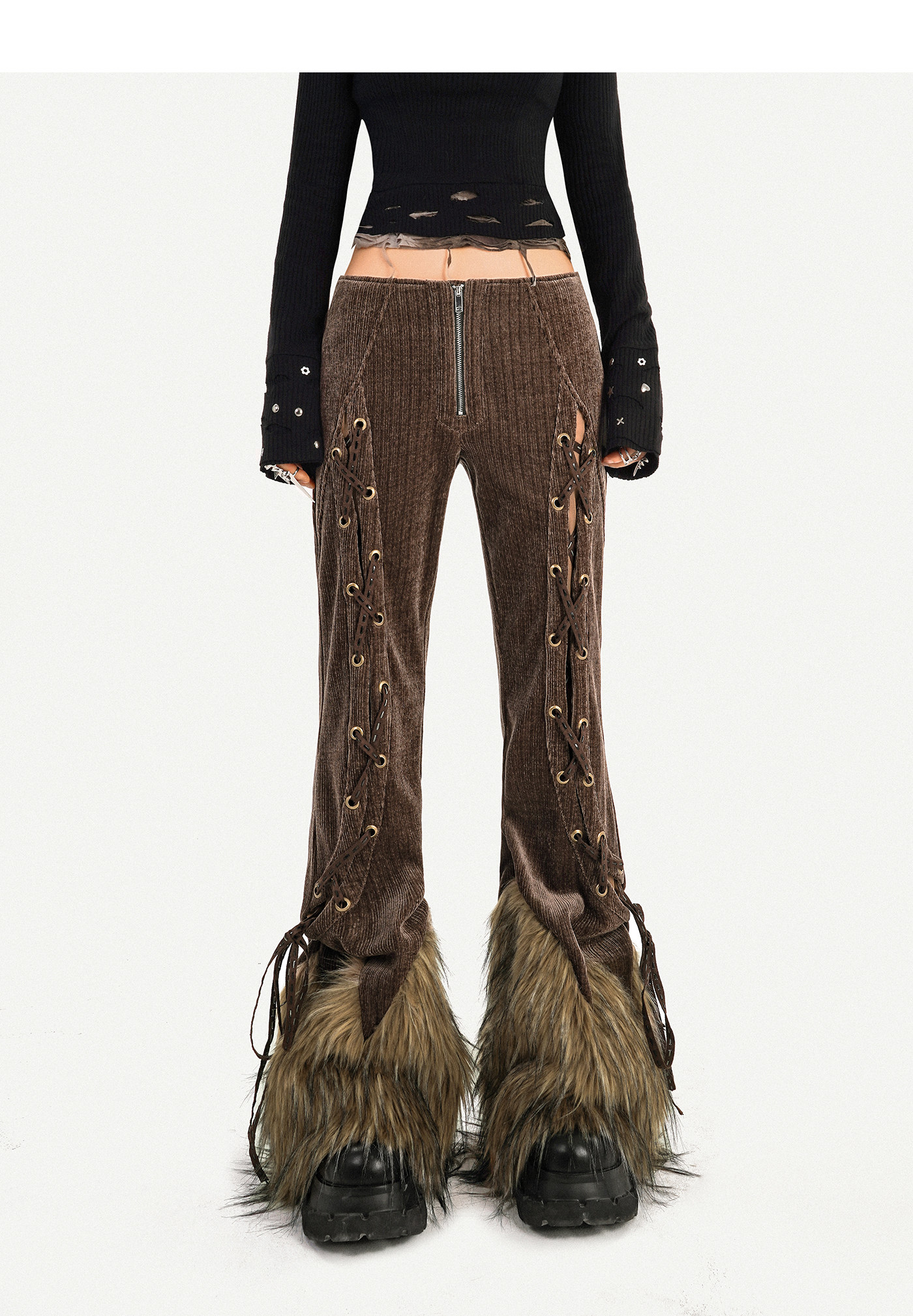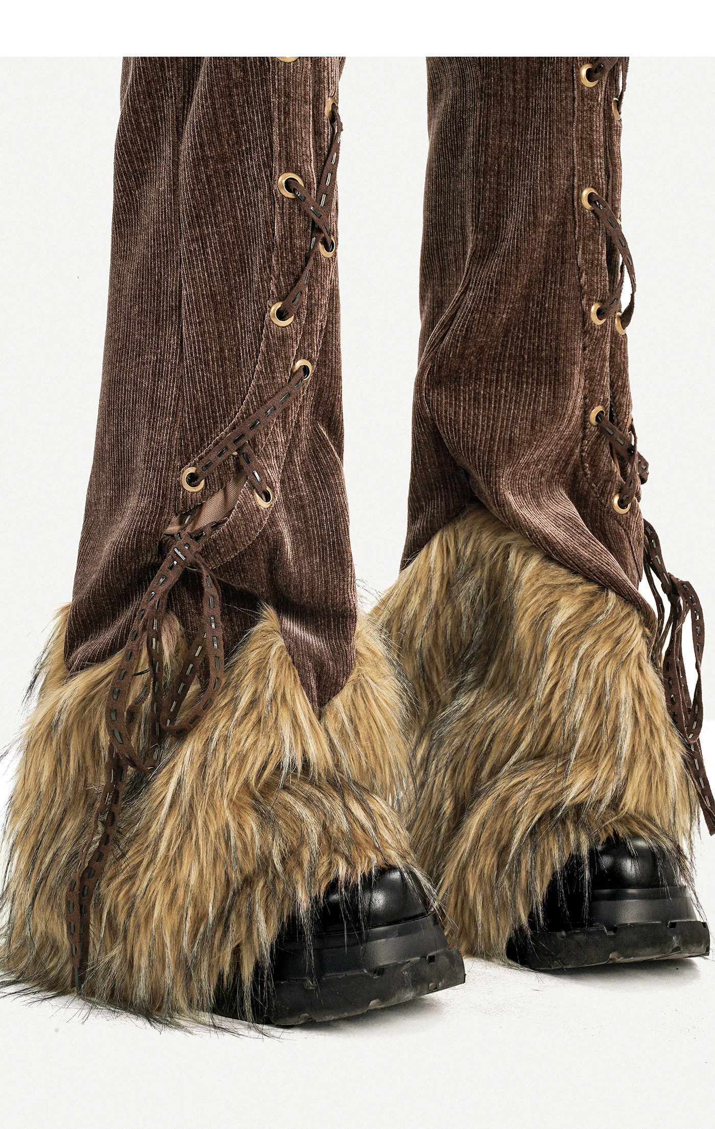 Corduroy Patchwork Fake Fur Lace-Up Slimming Pants NA8621