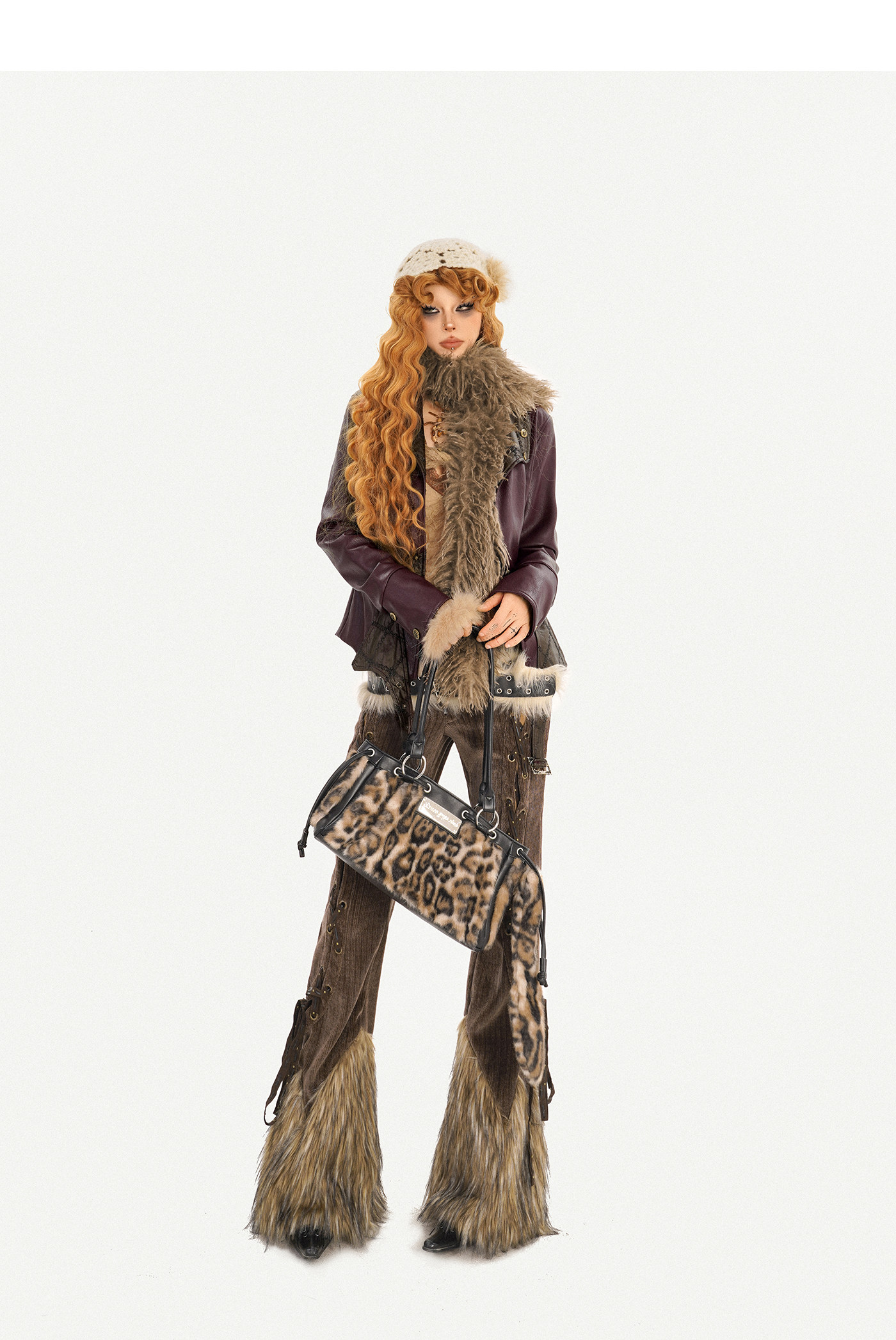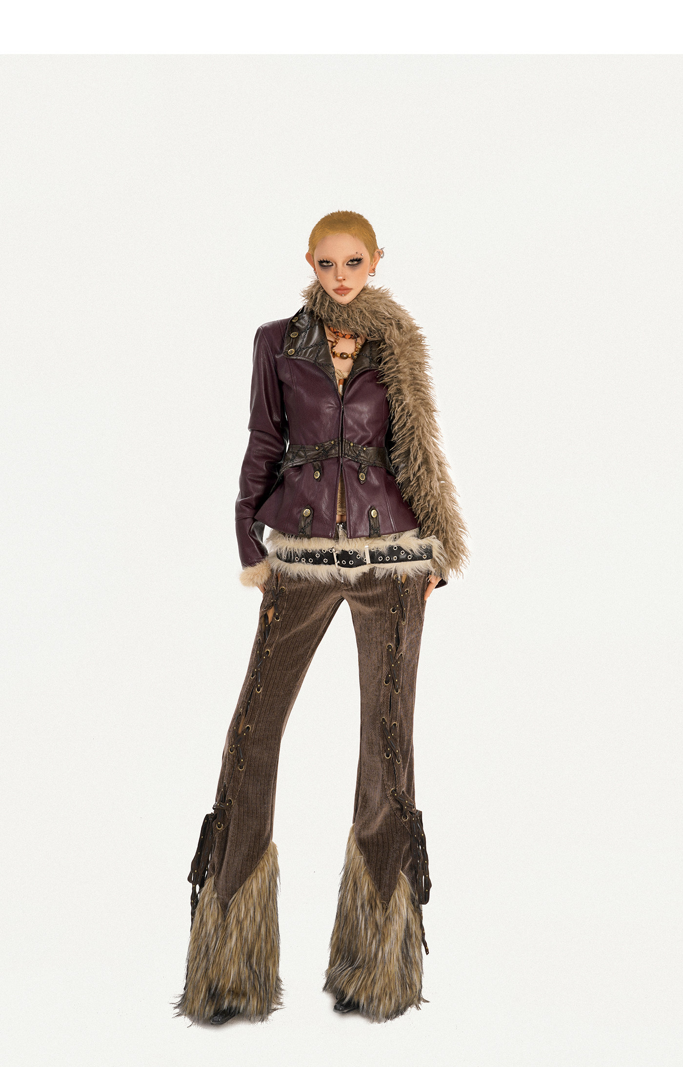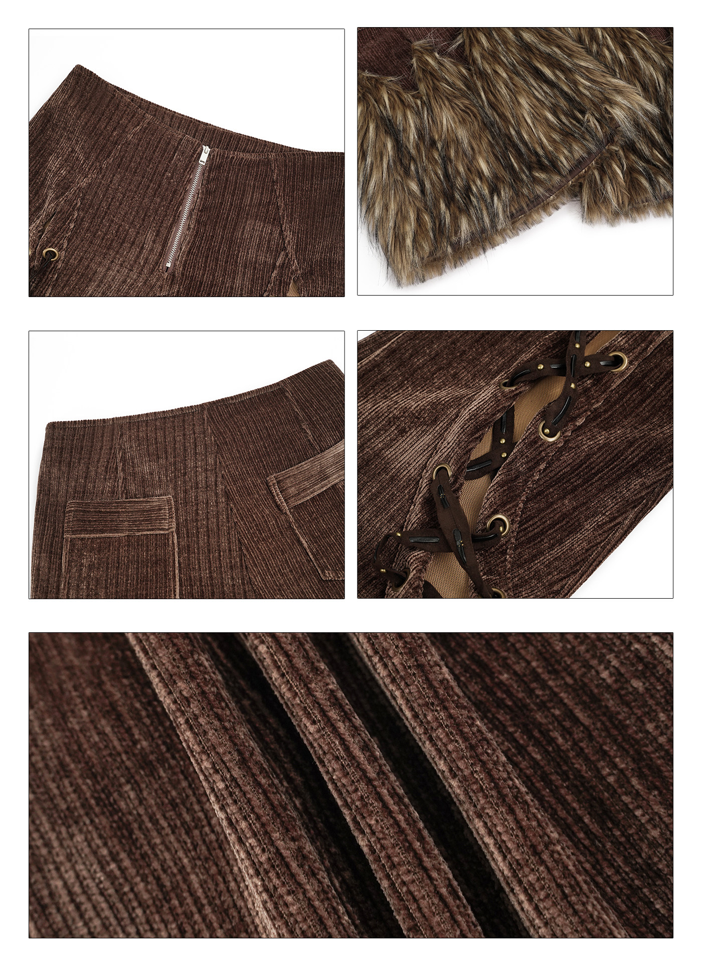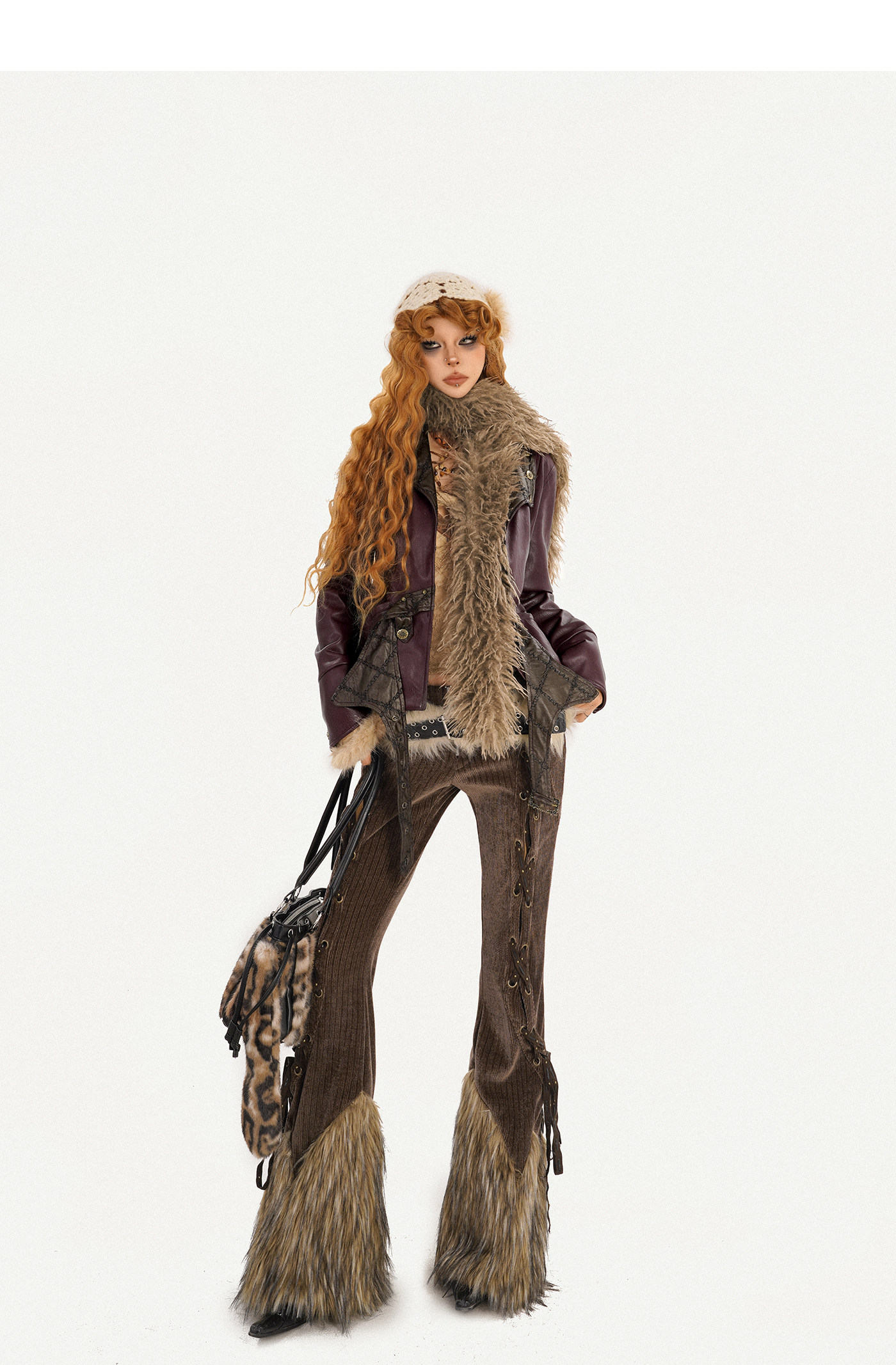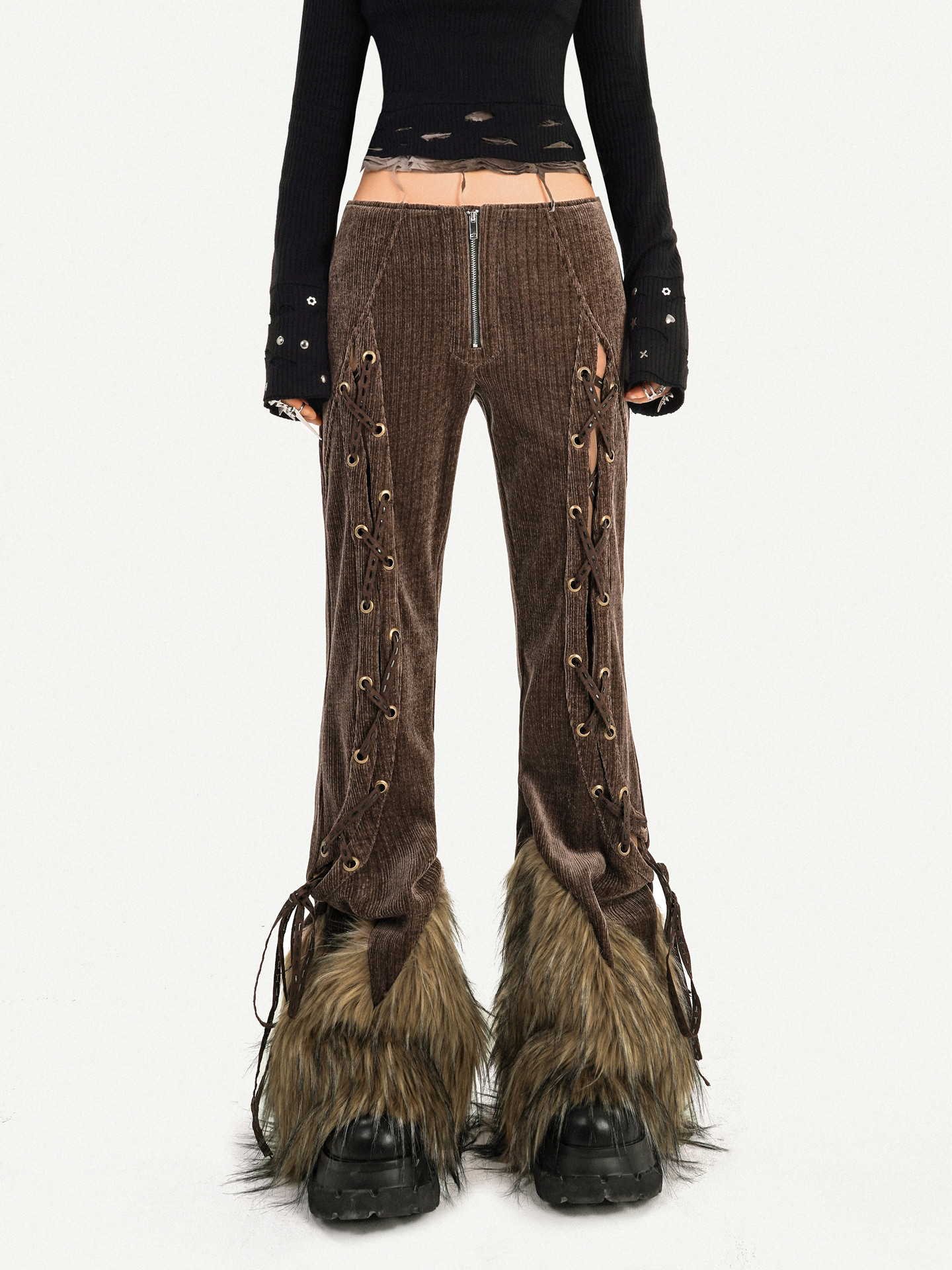 Corduroy Patchwork Fake Fur Lace-Up Slimming Pants NA8621