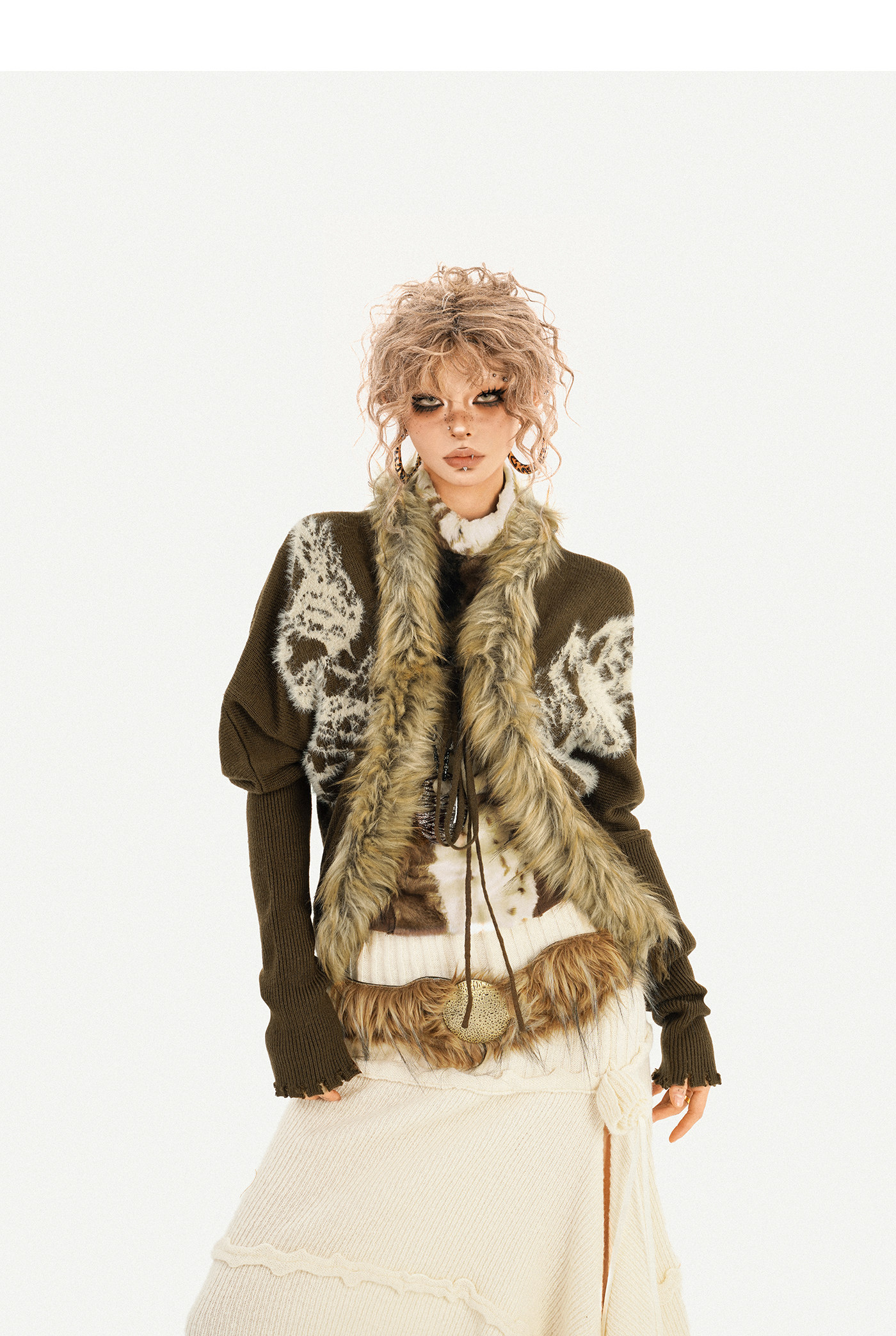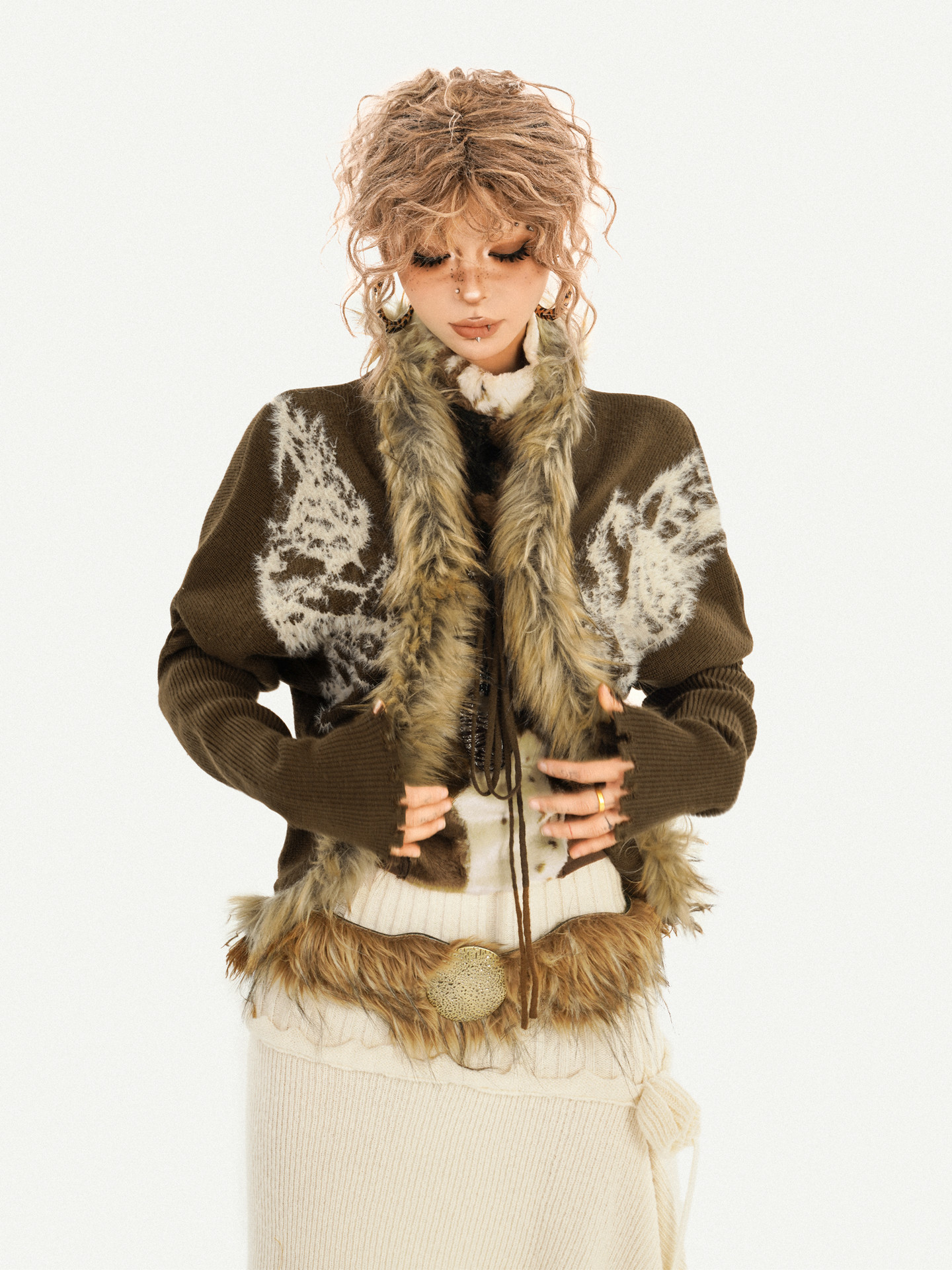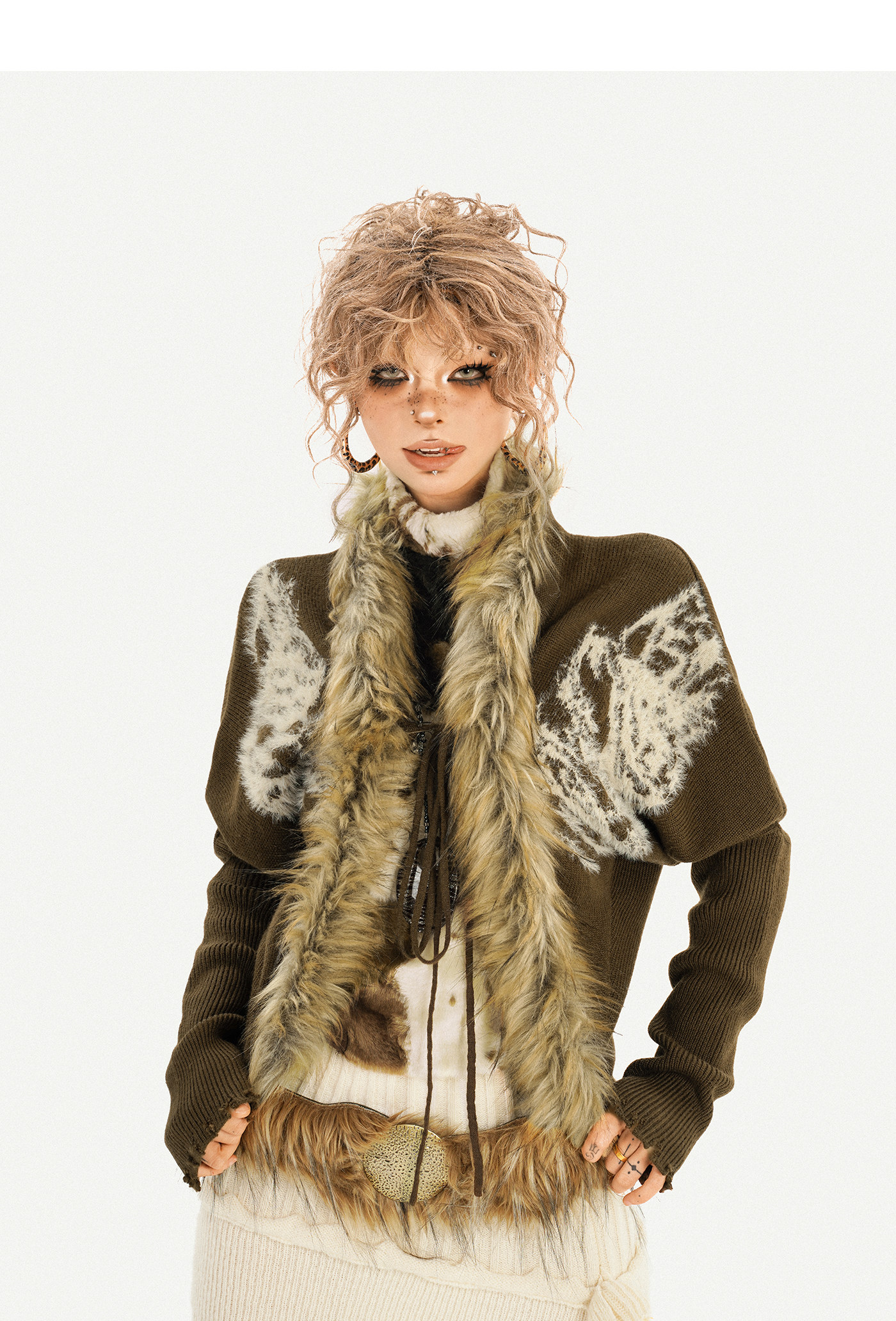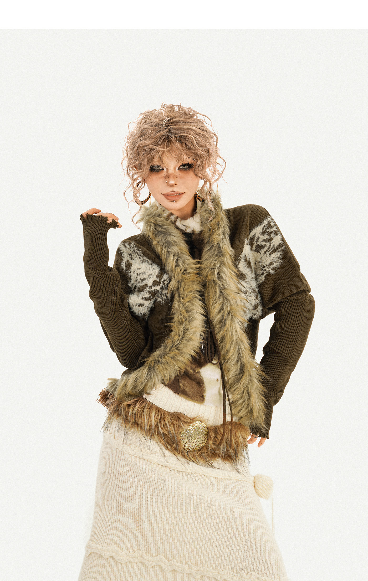Original Design Batwing Sleeve Fake Fur Collar Knit Cardigan NA8622