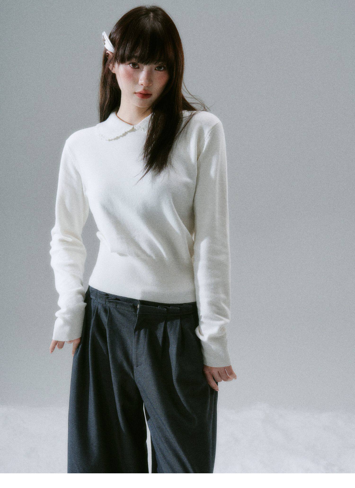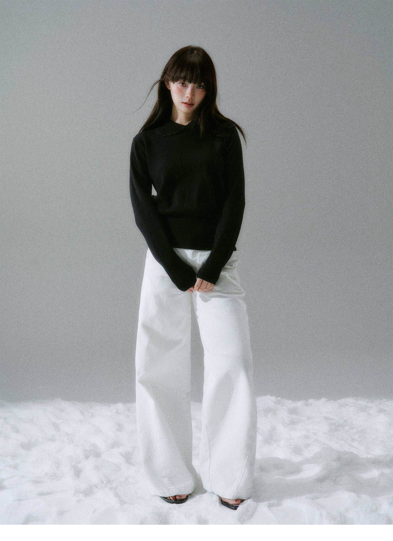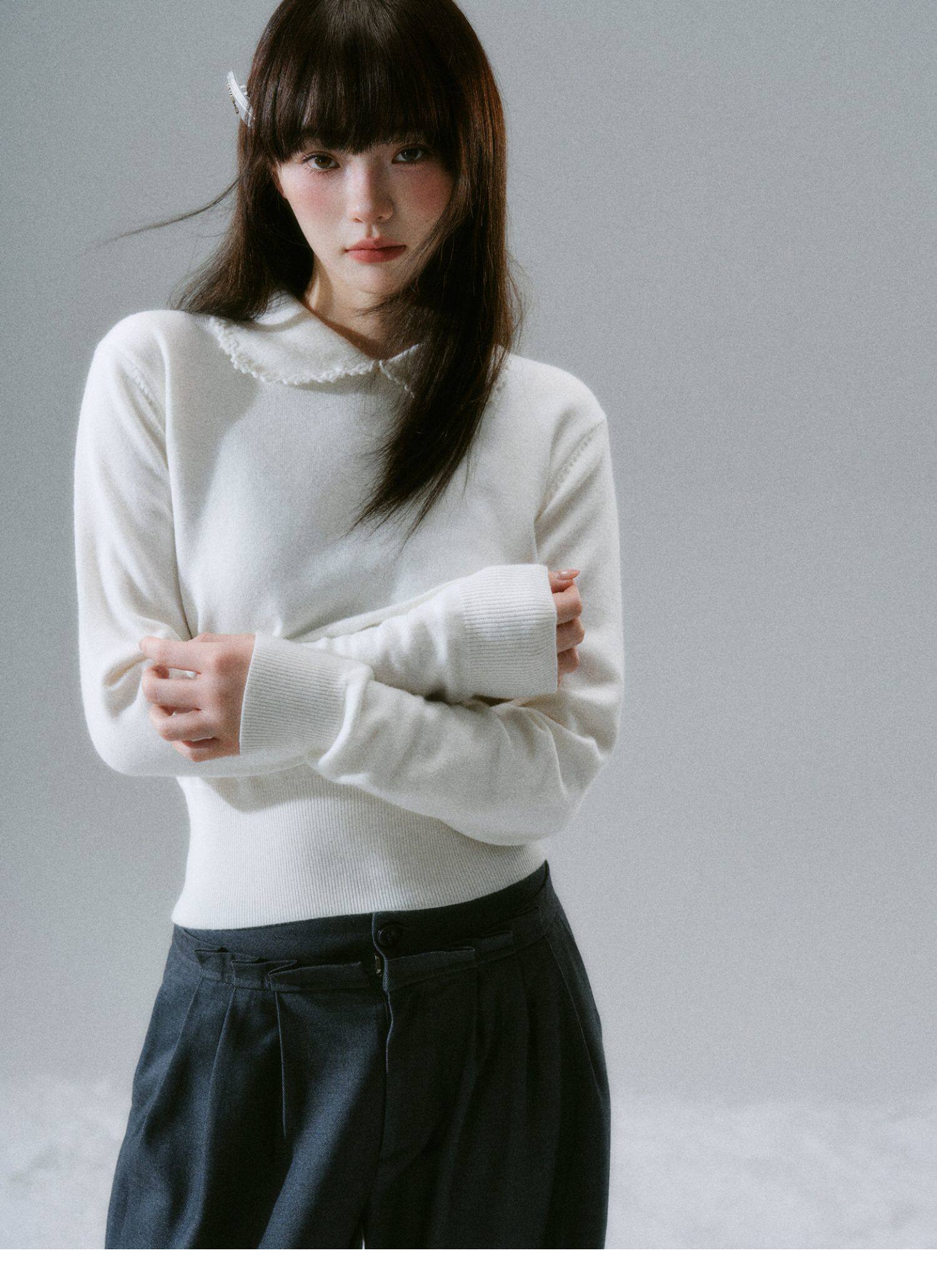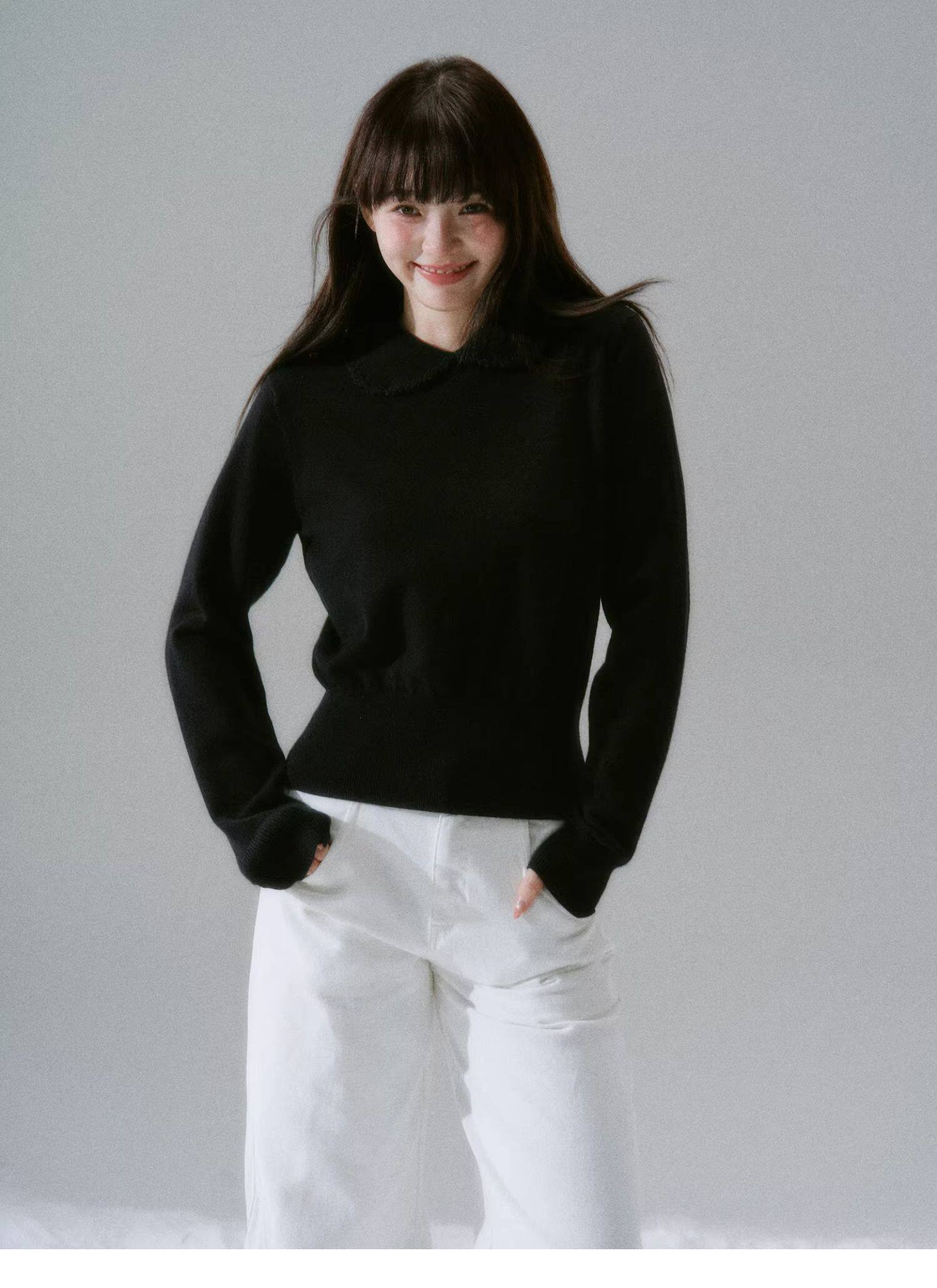 Handmade Crochet Crew Neck Slimming Polo Knit Sweater NA8785