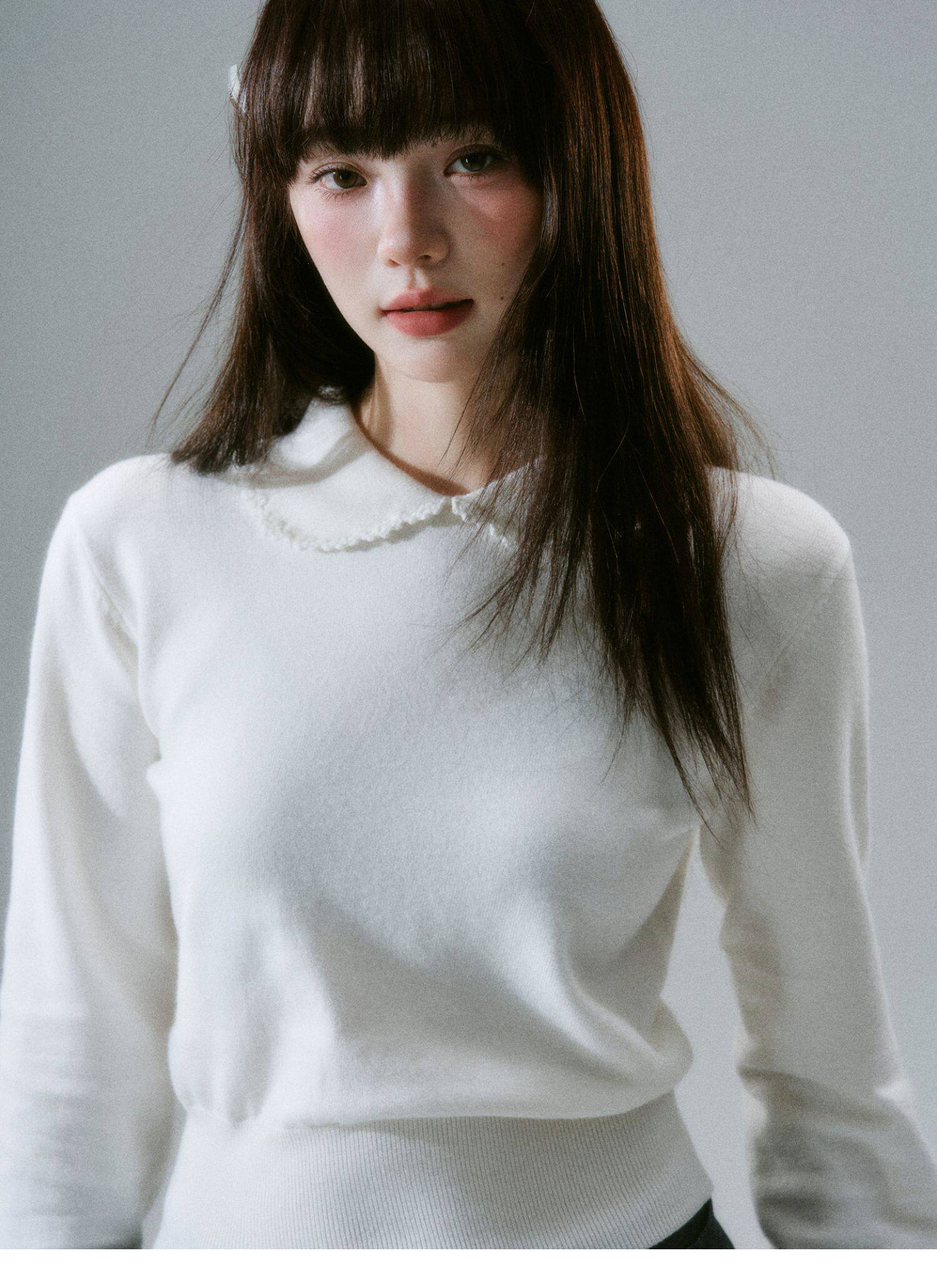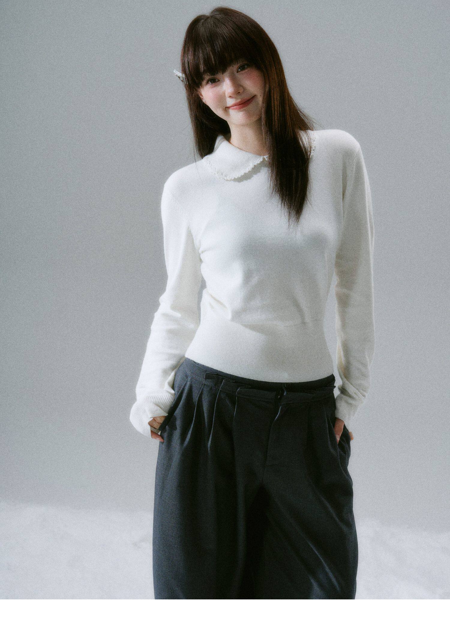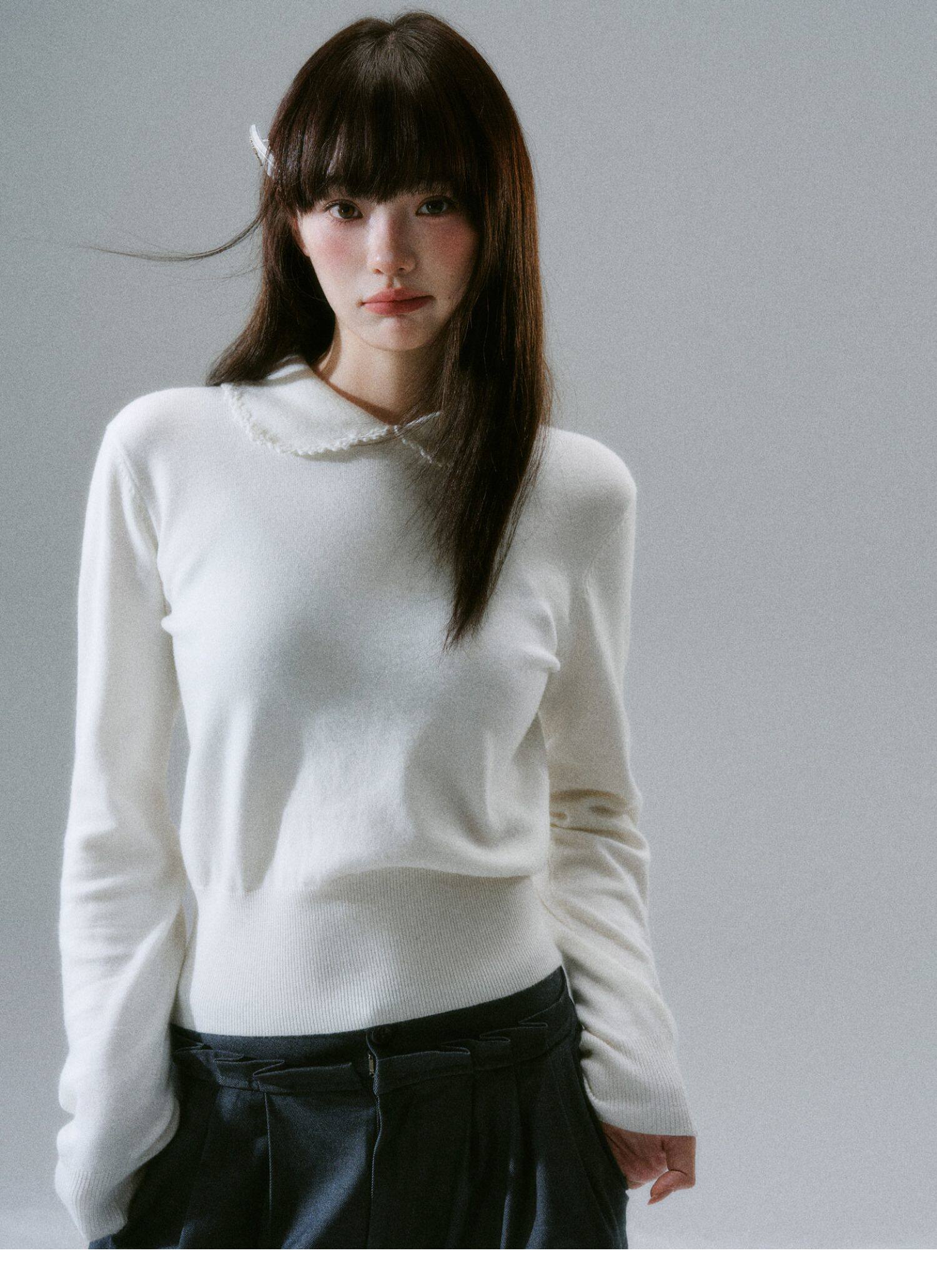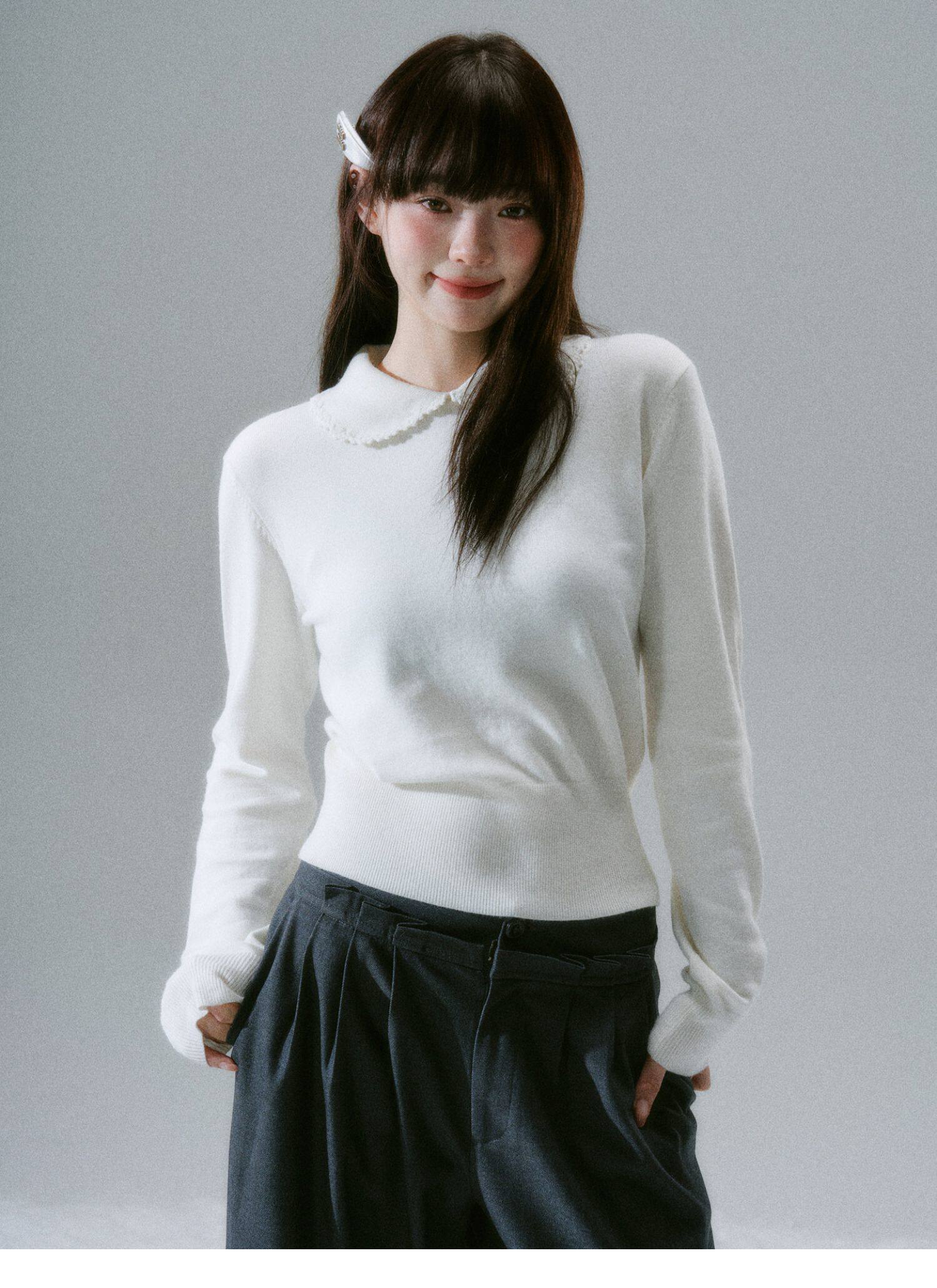 Handmade Crochet Crew Neck Slimming Polo Knit Sweater NA8785