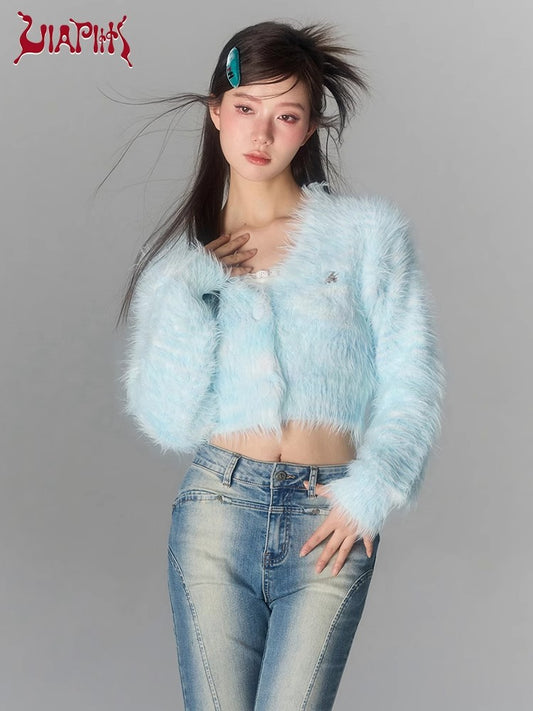 Cropped Furry Knit V-neck Cardigan NA4808