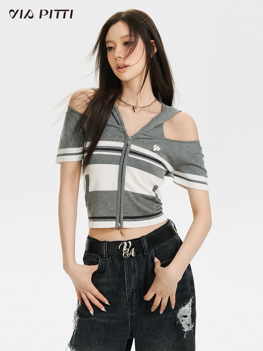 Zipper Hooded Kinit Top NA4852