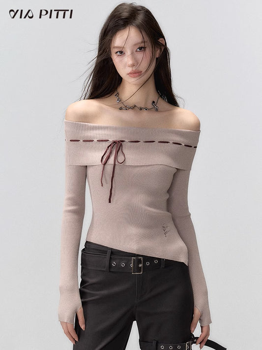 Off Shoulder Slim Knit Sweater NA4855