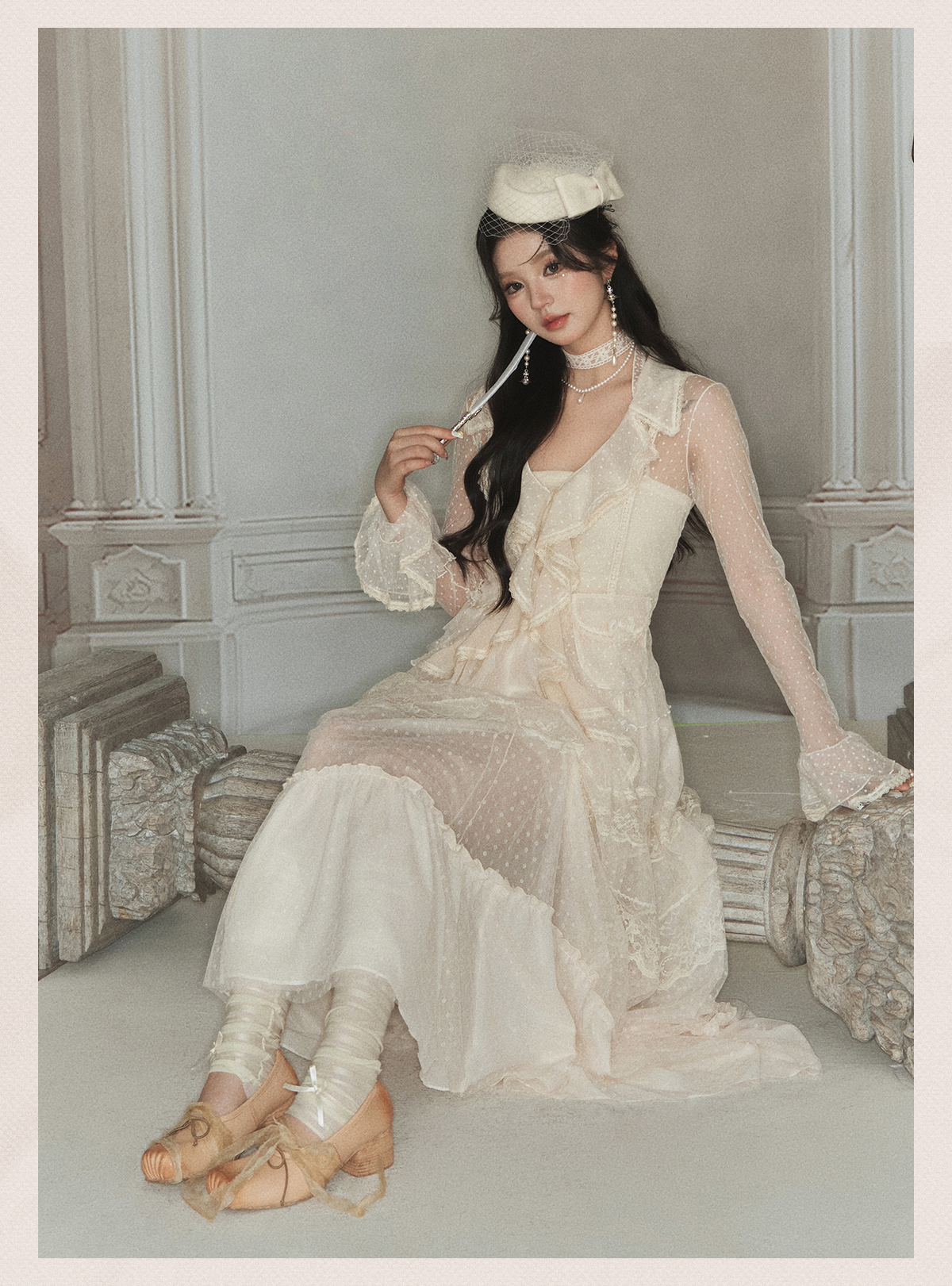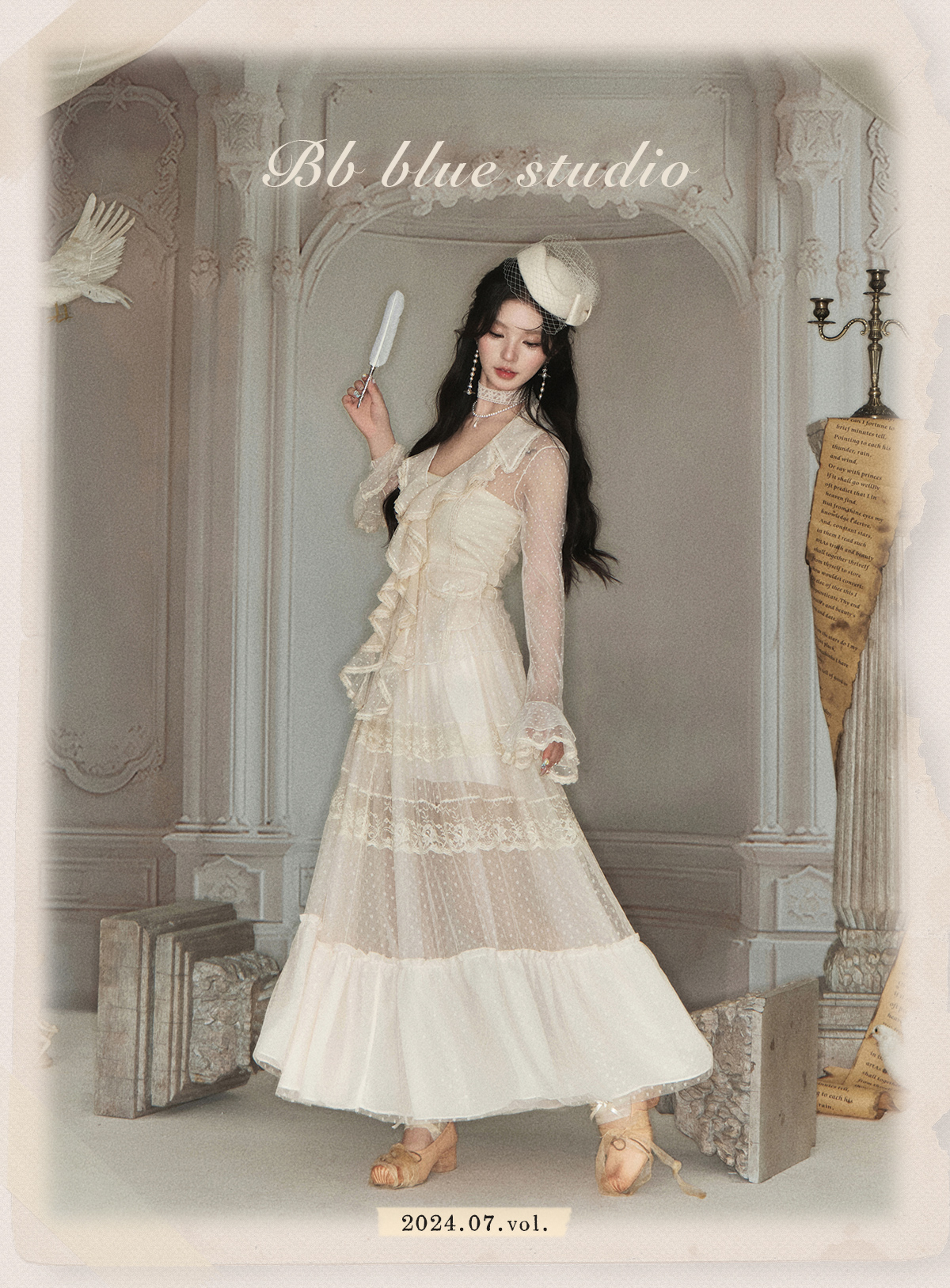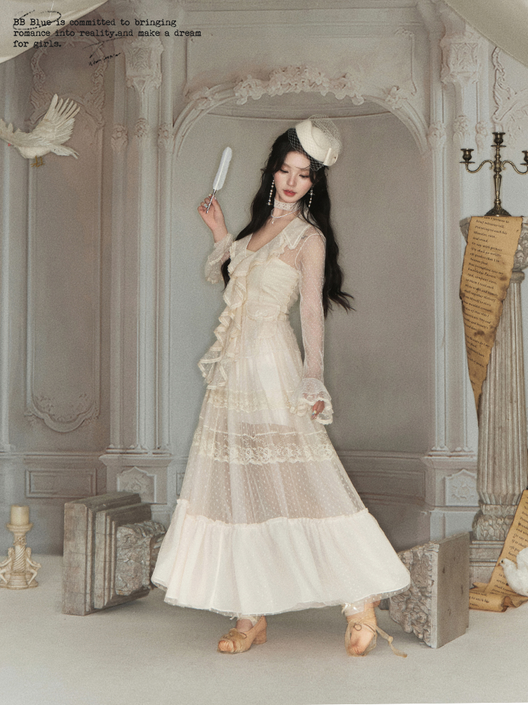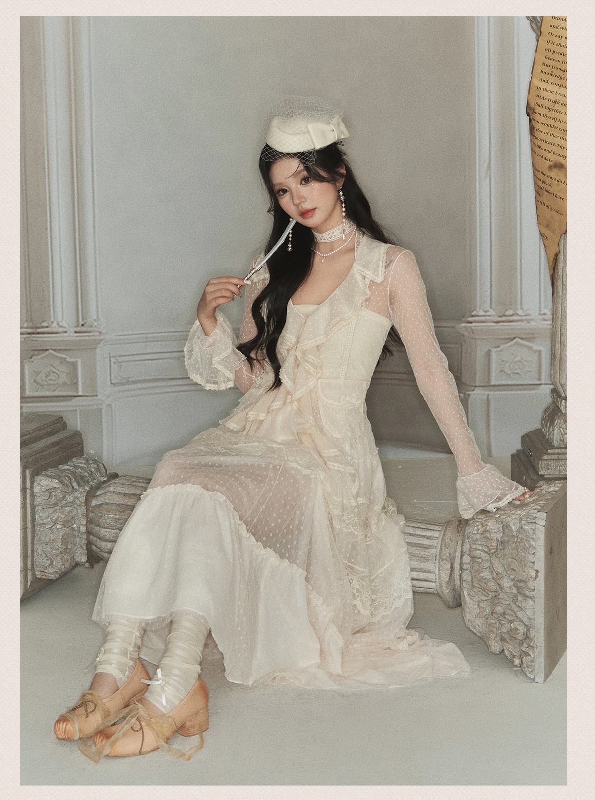 Elegant Polka Dot Lace Mesh Tiered High-Waist Long Skirt NA7421