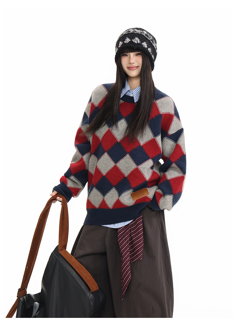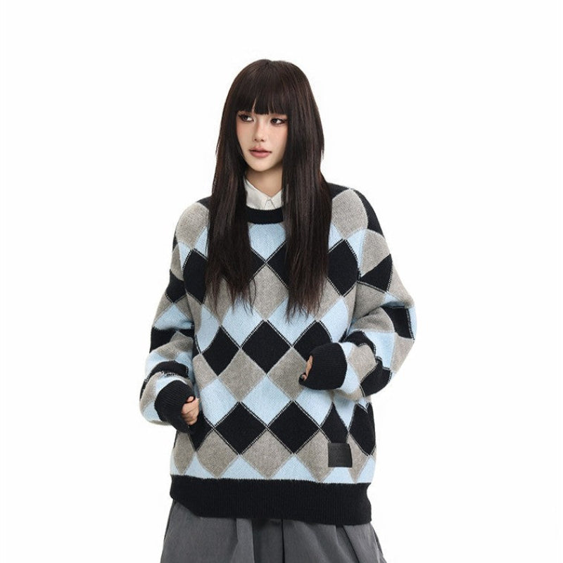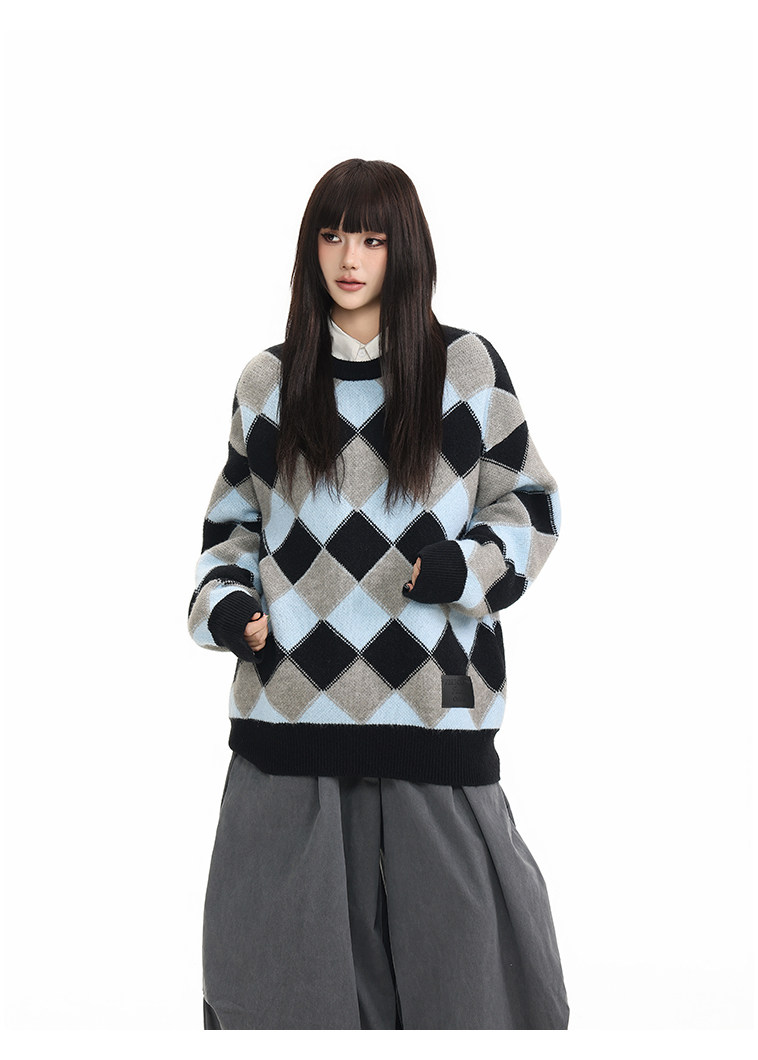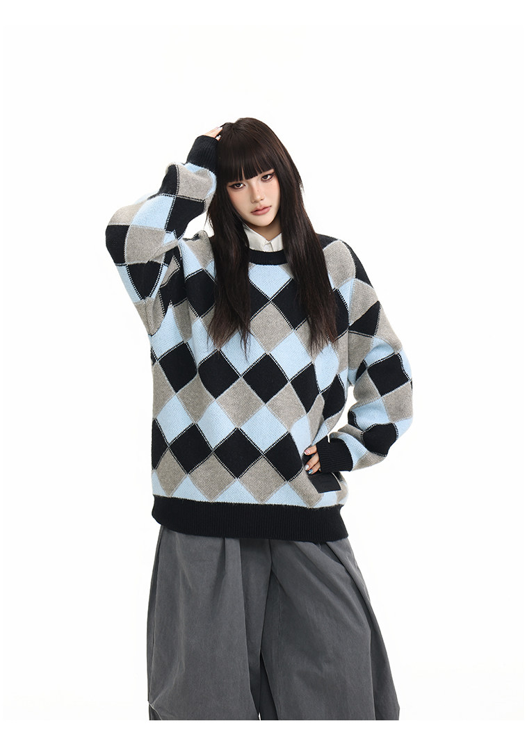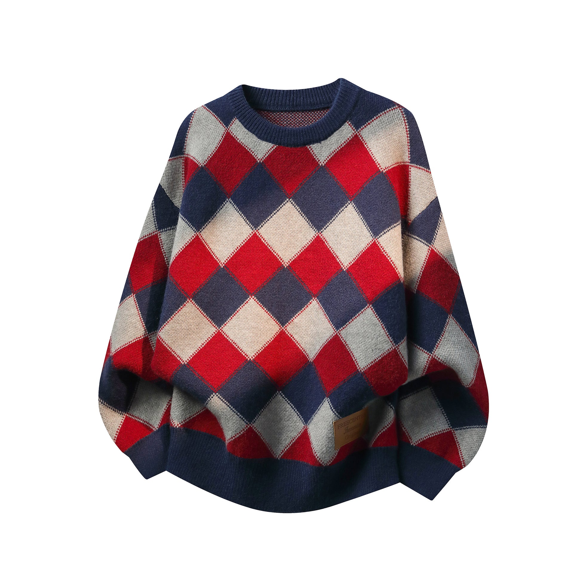 Heavyweight Diamond Pattern Oversize Hooded Knit Cardigan & Knit Sweater NA8871