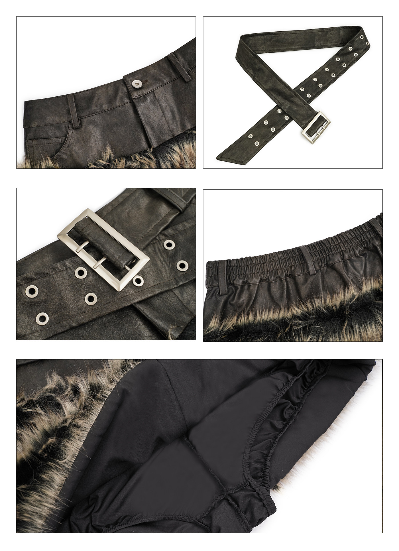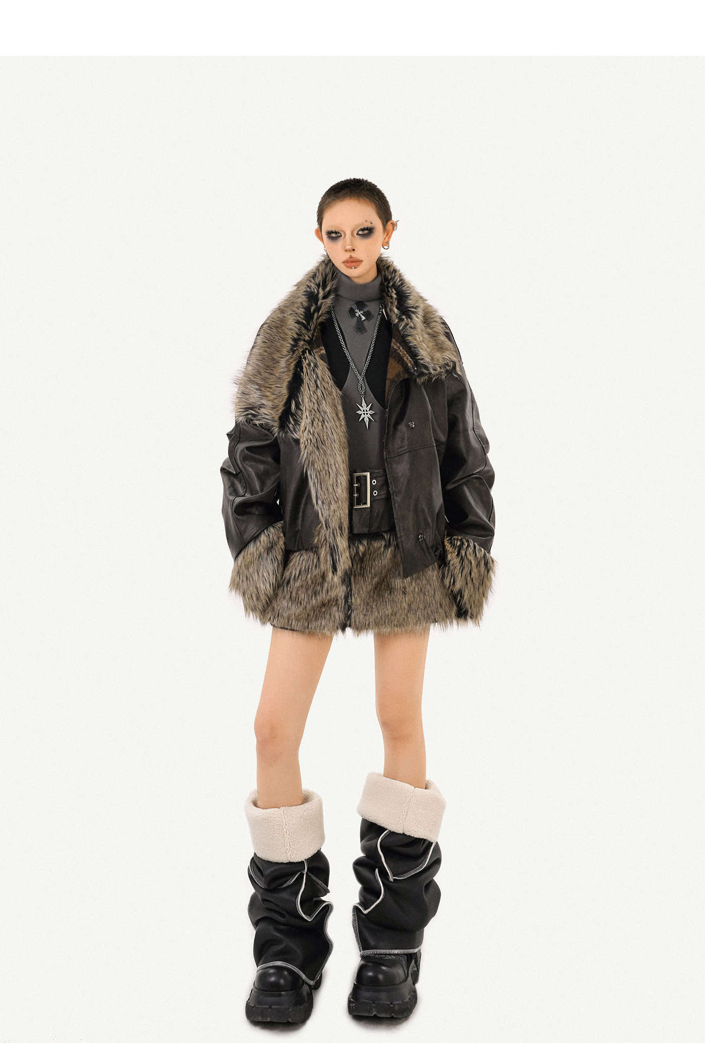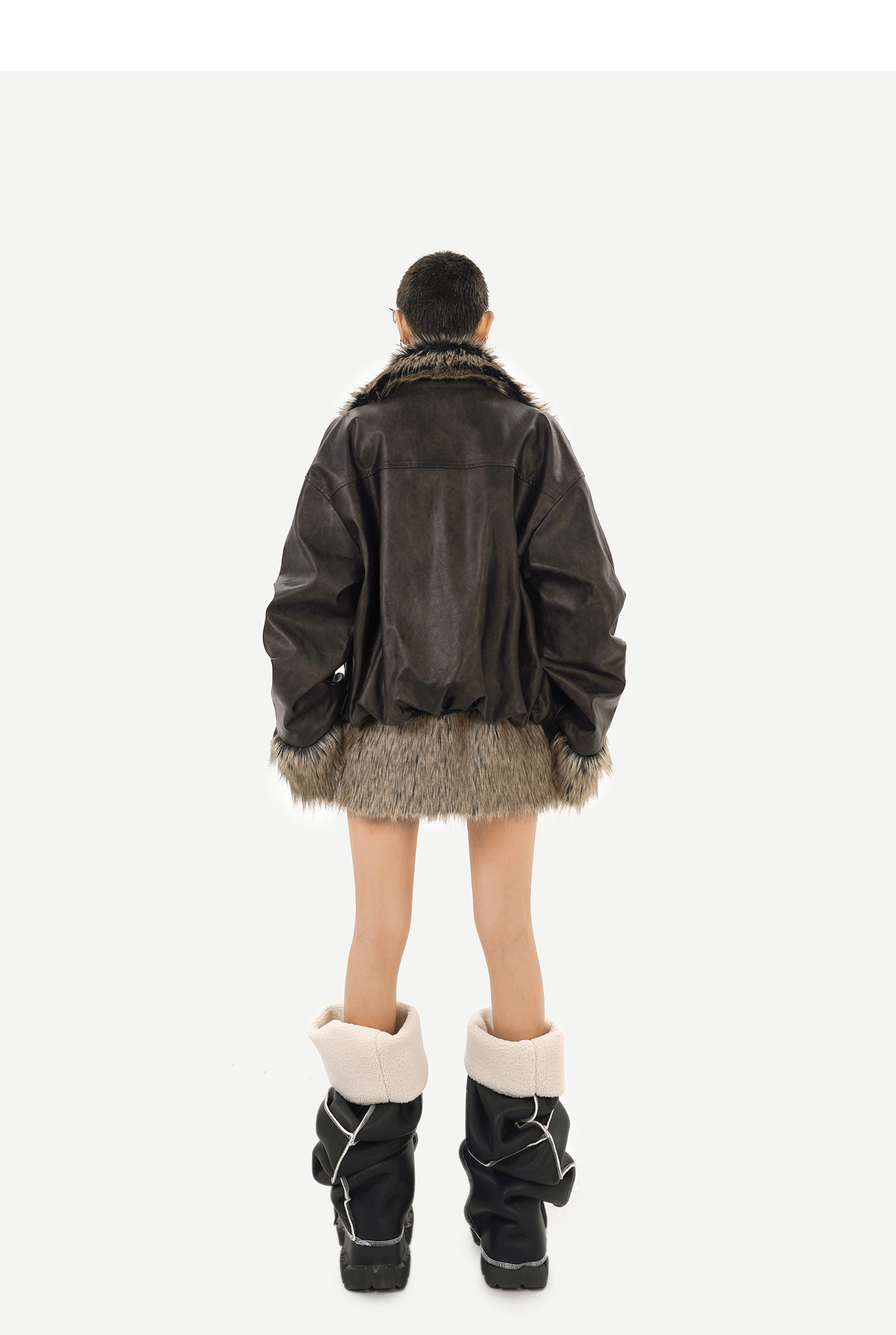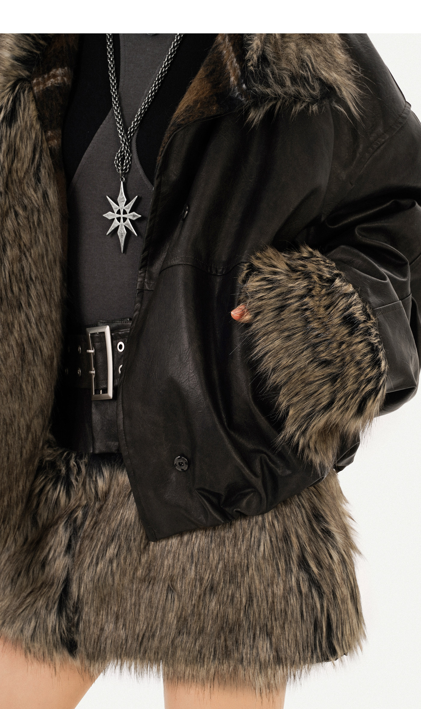 Reversible Fake Fur PU Leather Jacket & Skirt Setup NA8600