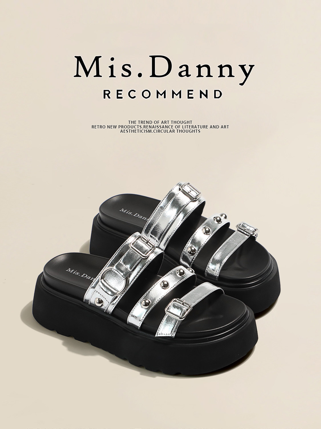 Studded Platform Height-Increasing Sandals NA8717