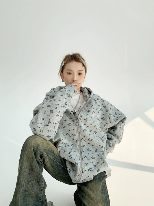 Flower Full Print Heavyweight Oversized Zipper Hoodie NA2840
