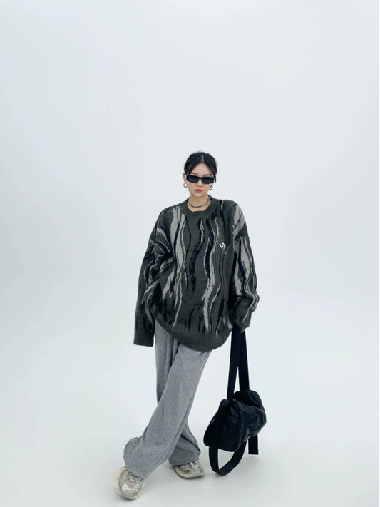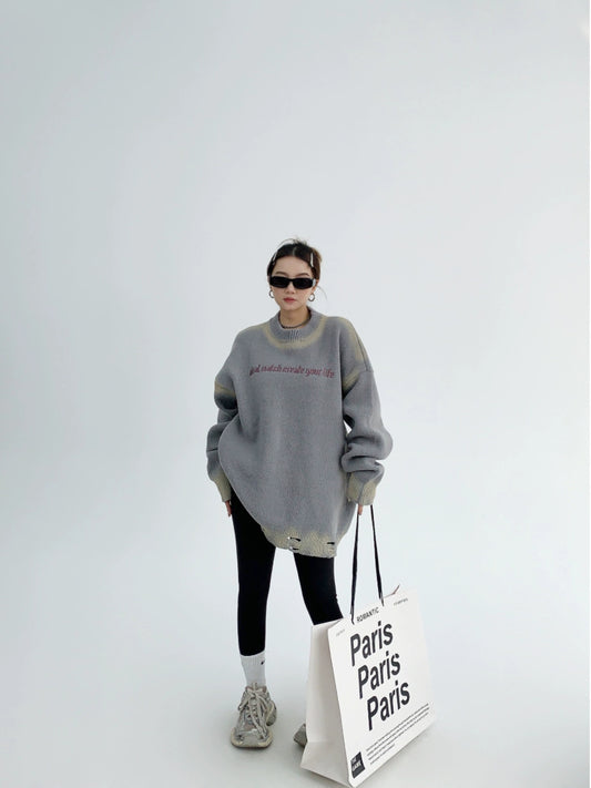 Thick Embroidery Oversized Pullover Knit Sweater NA2822