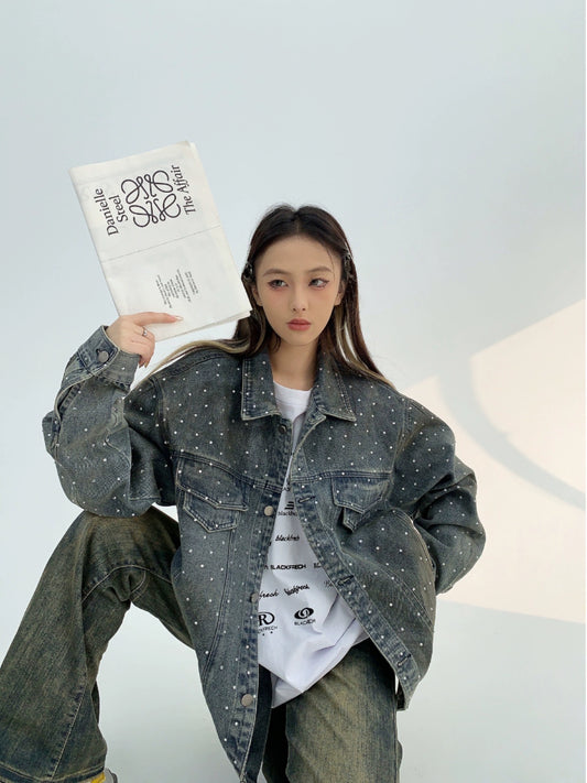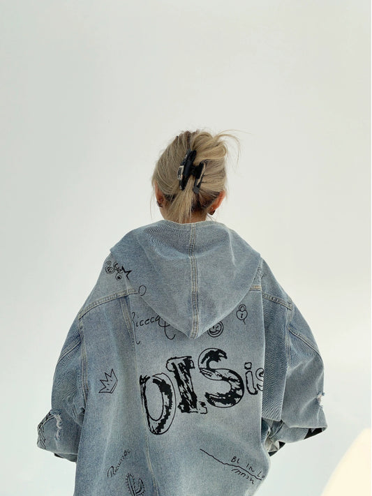 Graffiti Print Oversize Hooded Denim Jacket NA2826