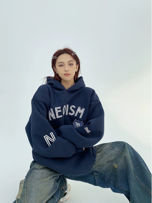 Oversize Letter Embroidery Pullover Hoodie NA2845