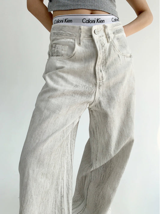 Washed Damaged Wide Leg Denim Jeans NA2832