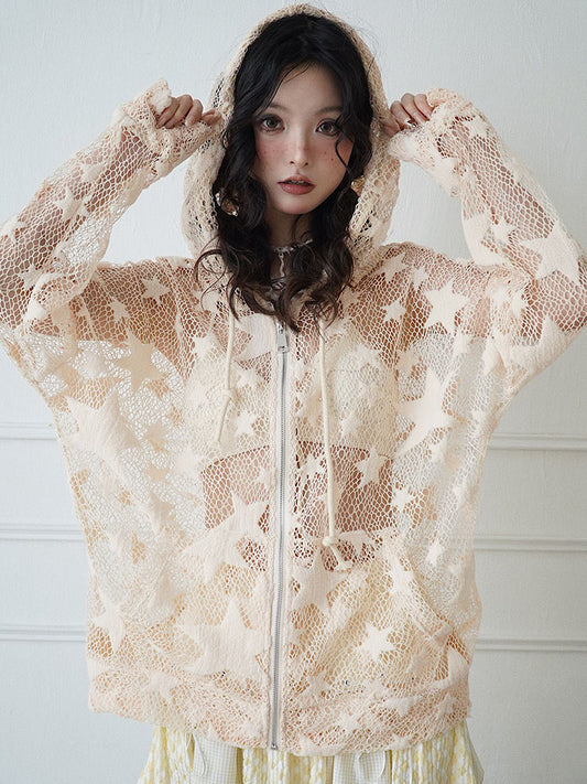 Sheer Mesh Hollow-Out Zipper Hoodie NA7709