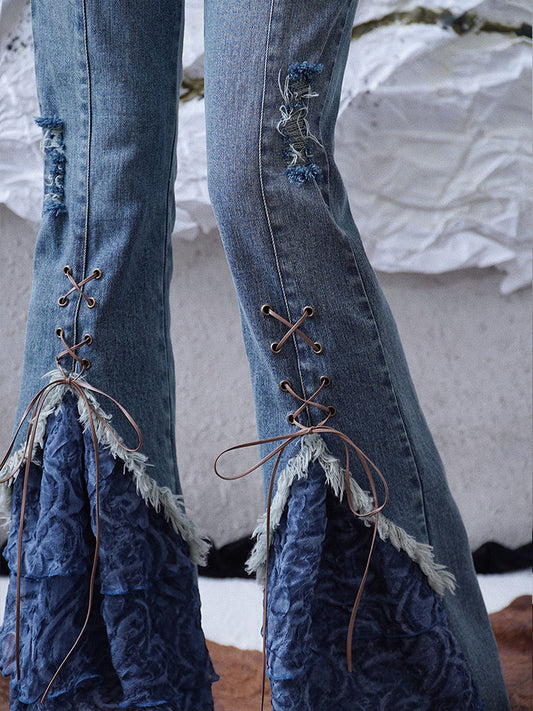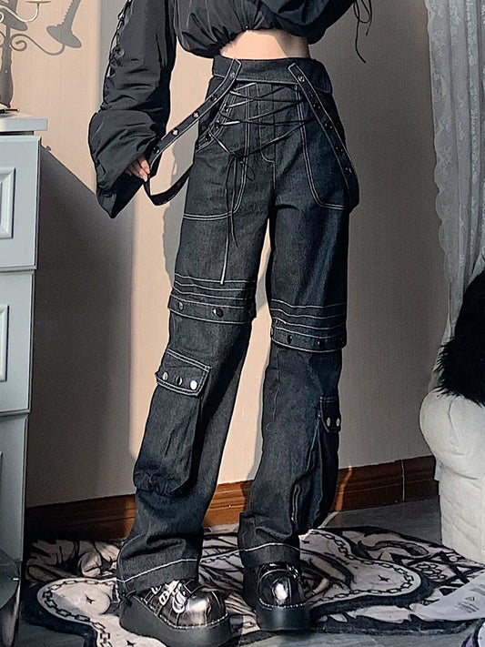 Patchwork Strap Detail Denim Pants NA7728