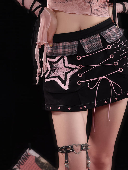 Black & Pink Star Plaid Ultra-Short Low-Rise Short Pants NA7714