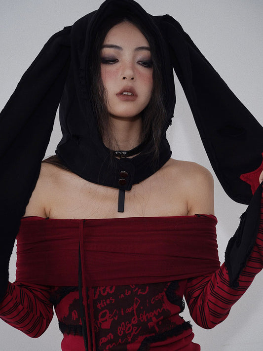 Red & Black Rock-Inspired Detachable Fur Collar Two-Way Camisole NA7718