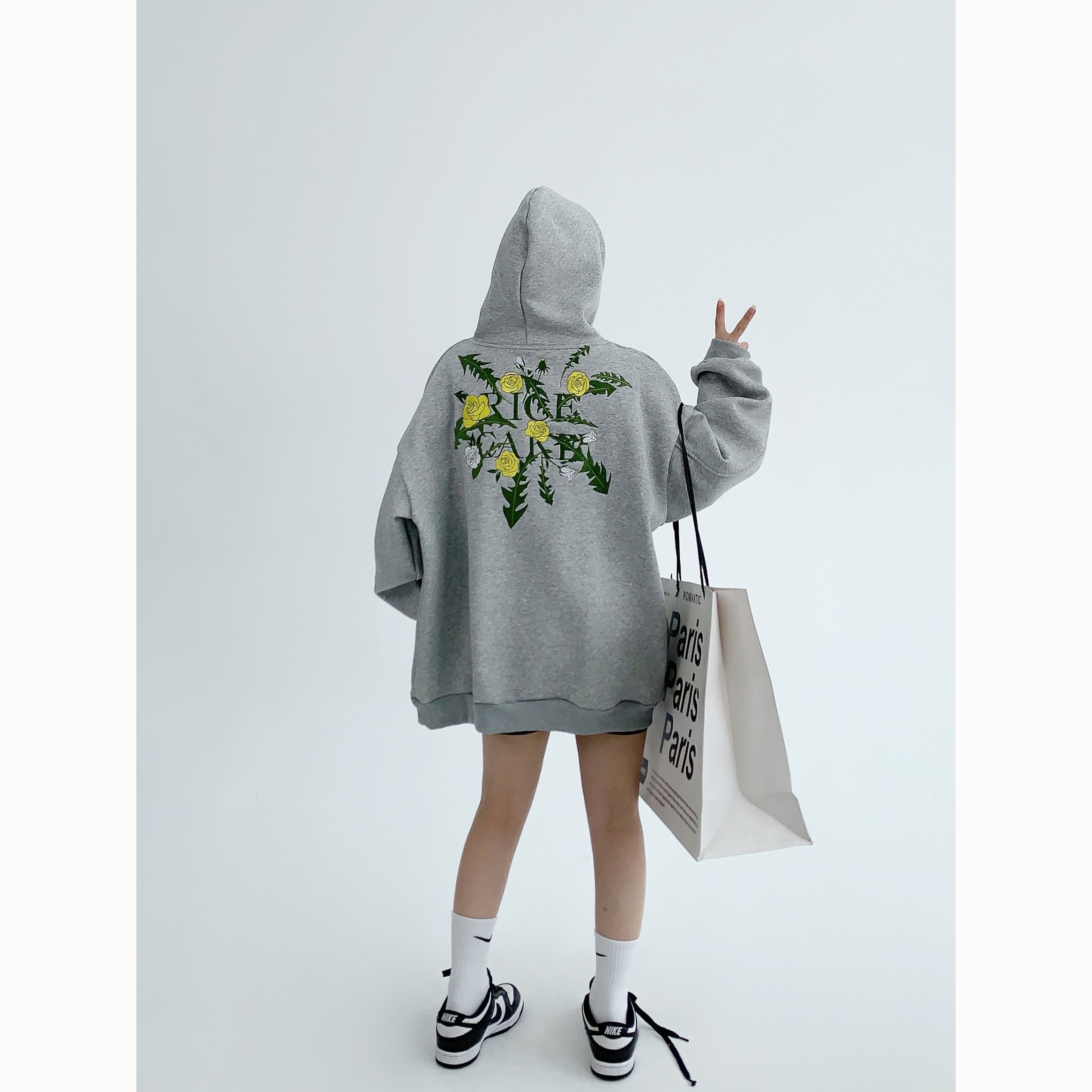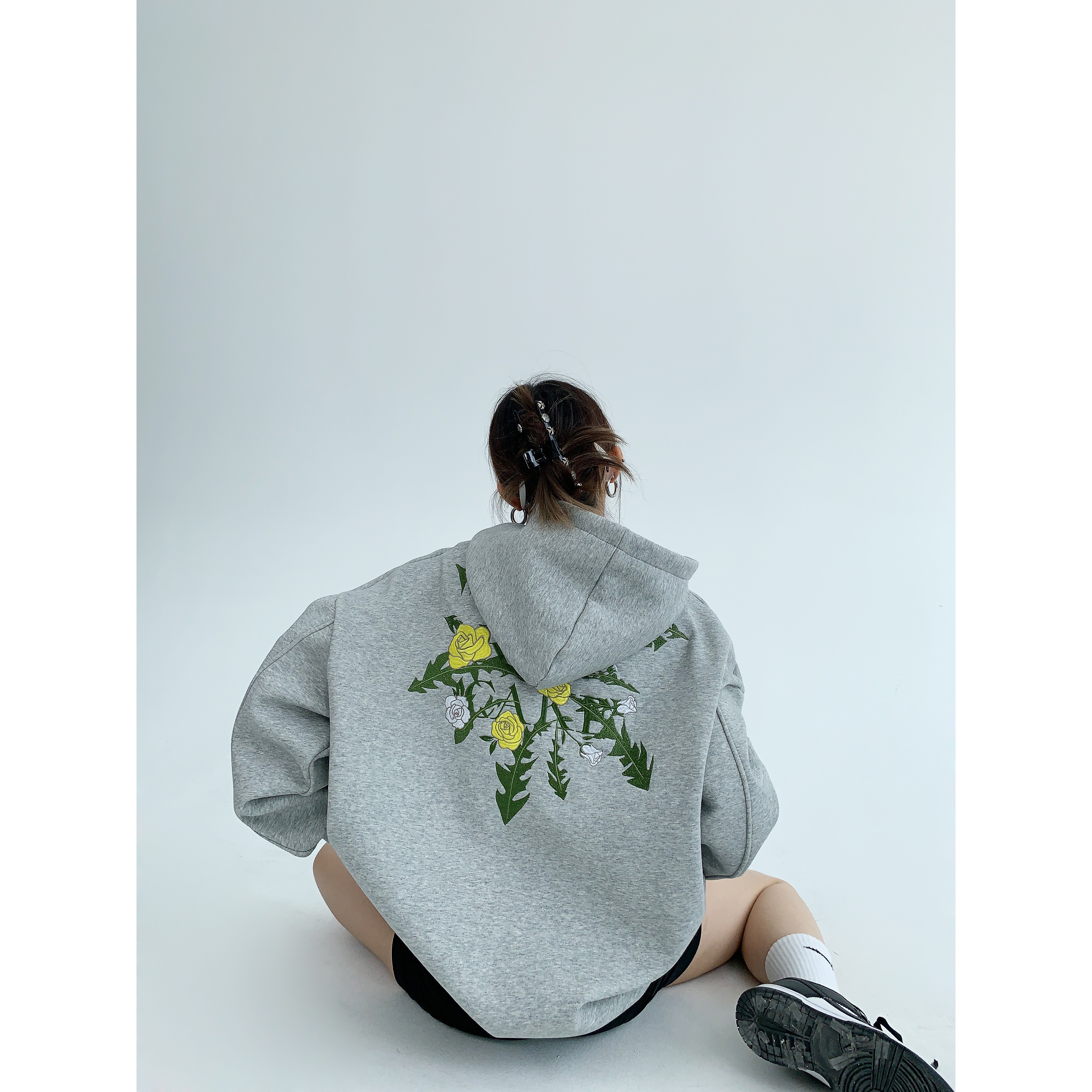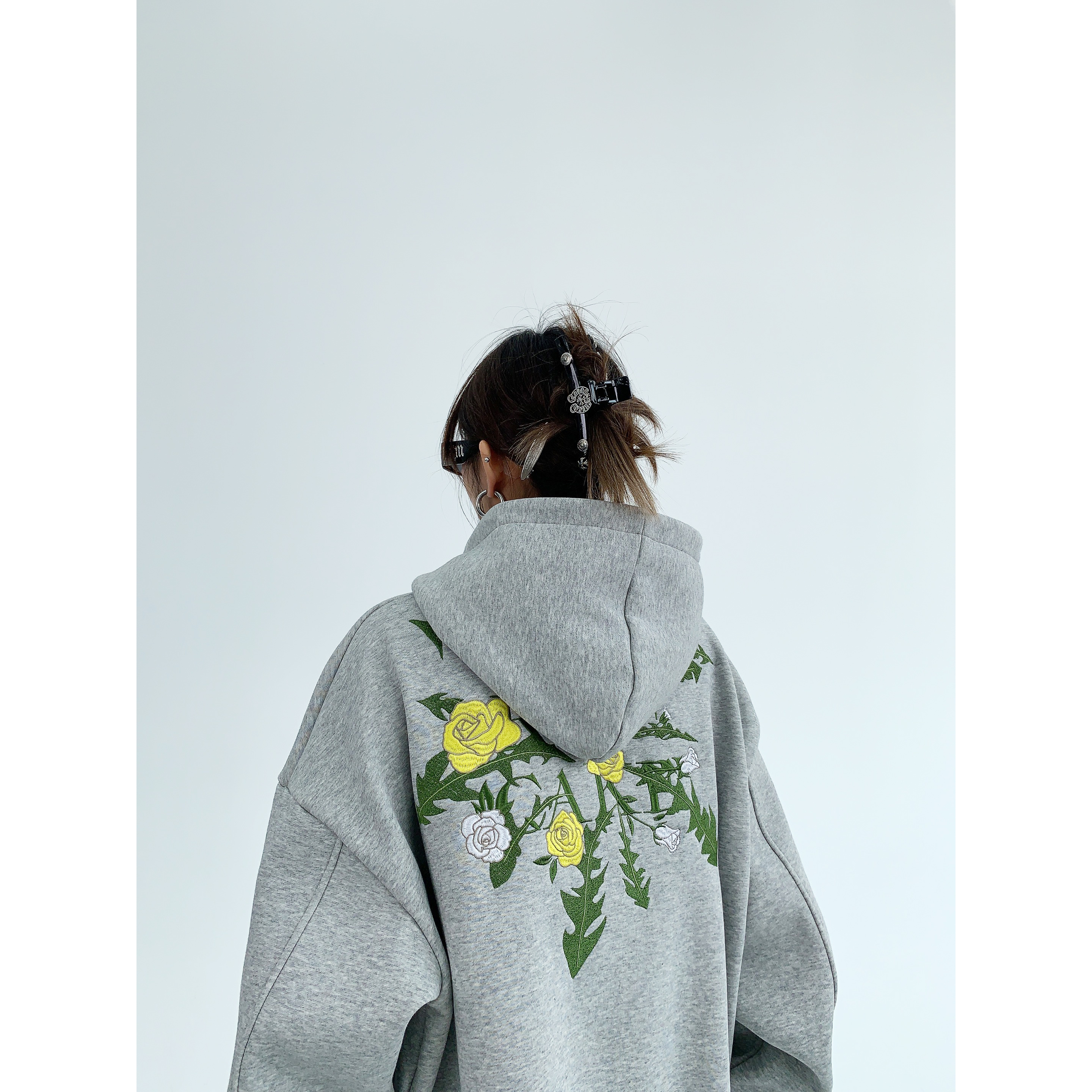 Flower Embroidery Oversized Hoodie NA2807